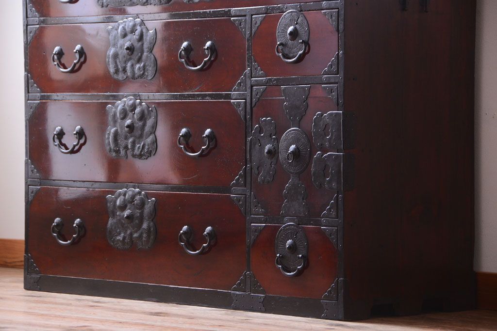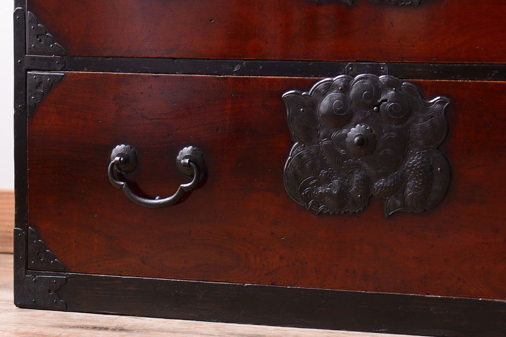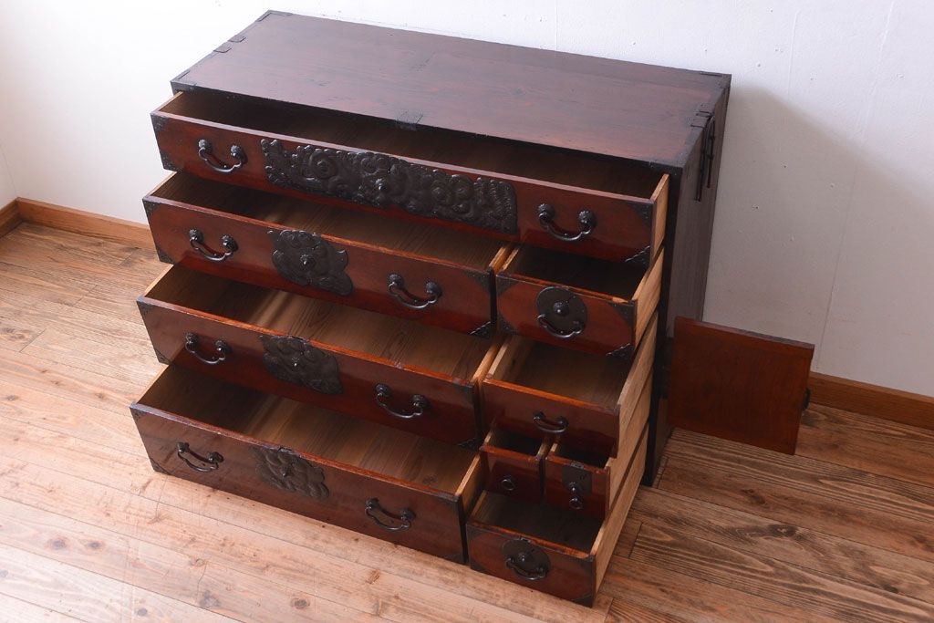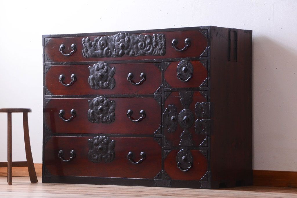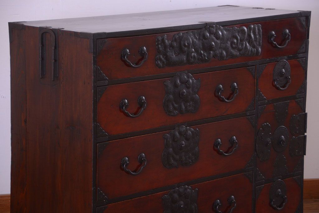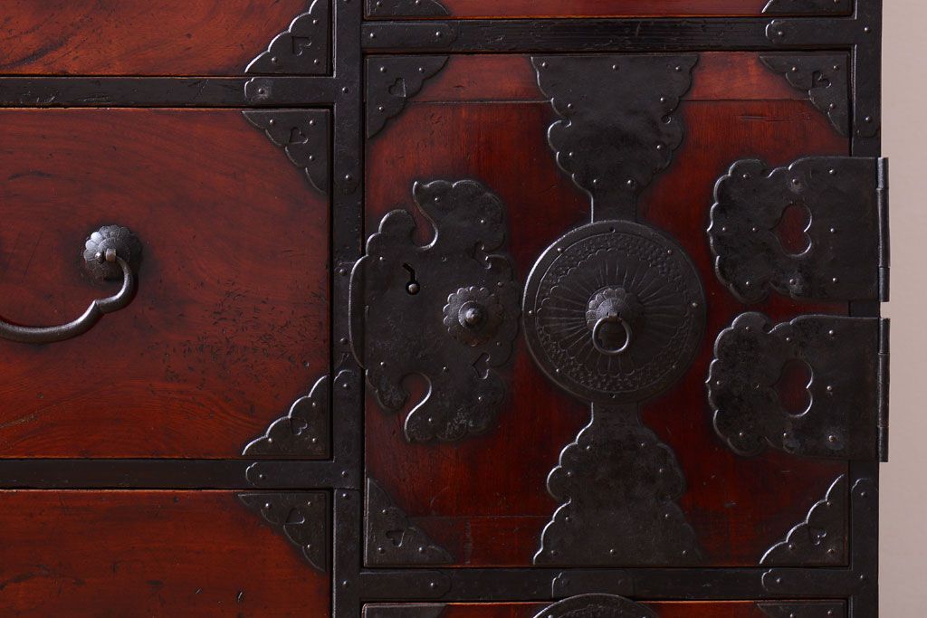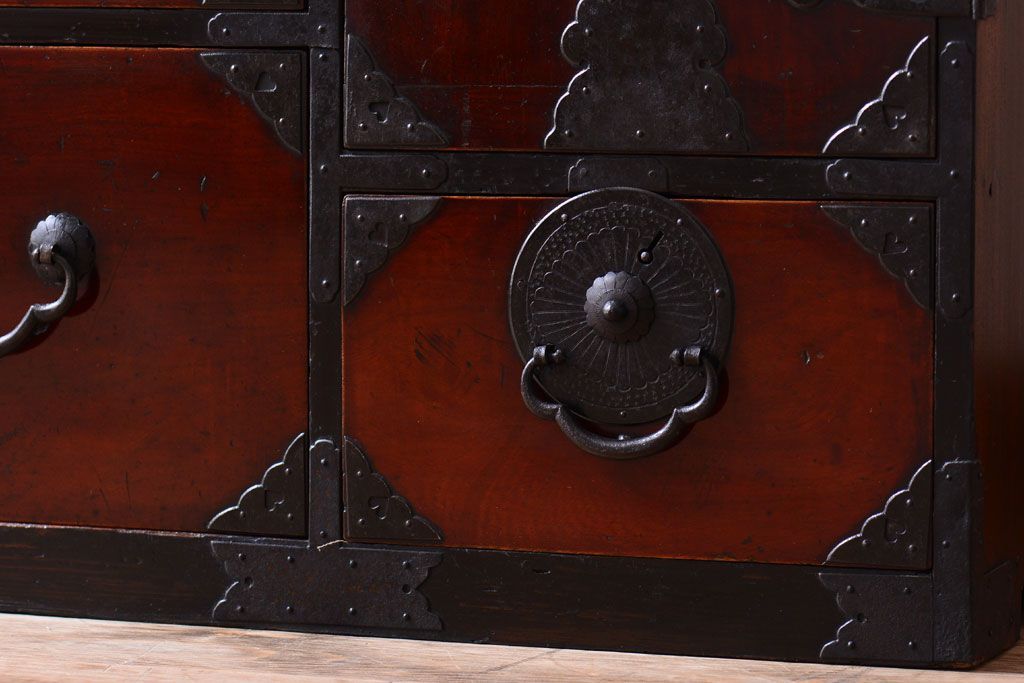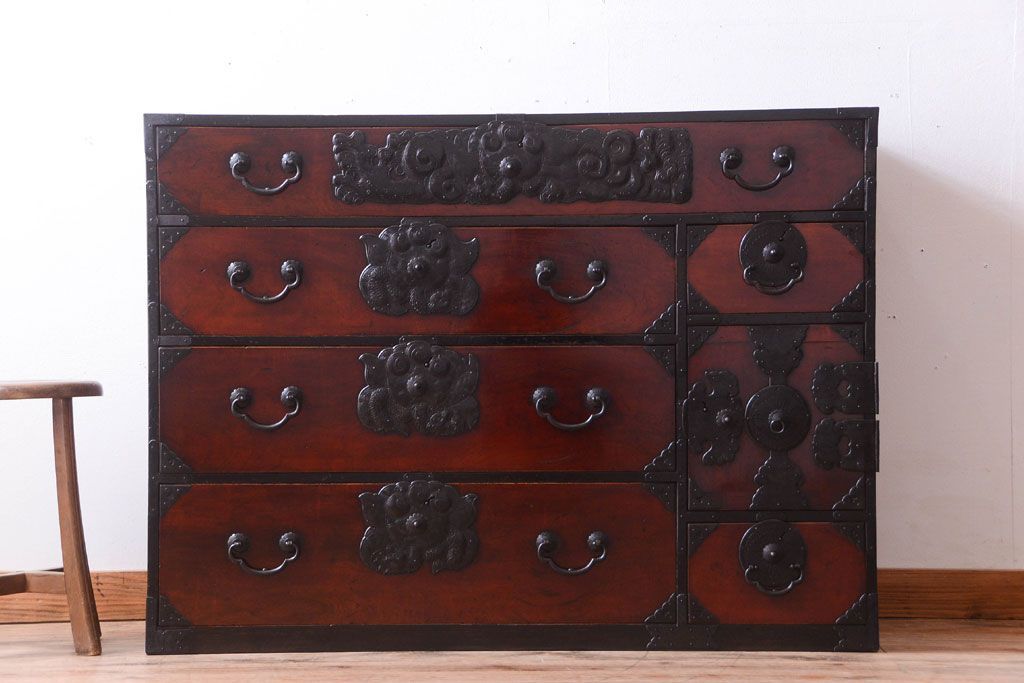 アンティーク家具 古民具・骨董 明治期 前面欅材!アンティーク仙台箪笥