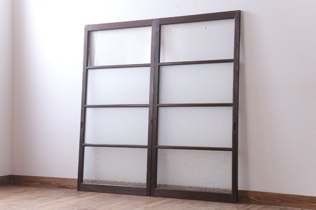 ラフジュ工房> ドア・建具> 引き戸 > 昭和レトロ すり・結霜・クリアガラスの引き戸2枚セット(窓)(1)