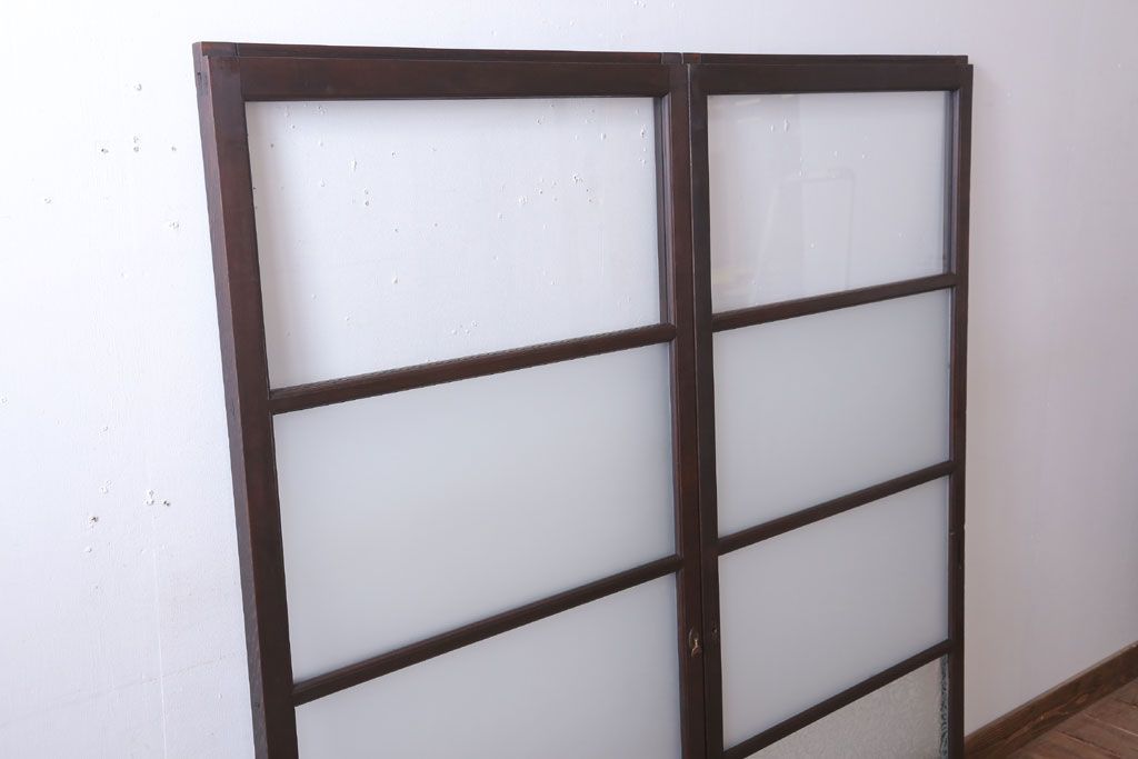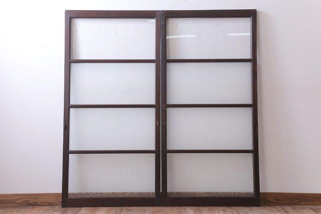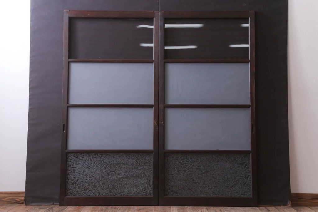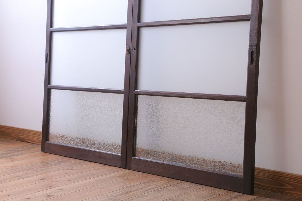 昭和レトロ すり・結霜・クリアガラスの引き戸2枚セット(窓)(1)