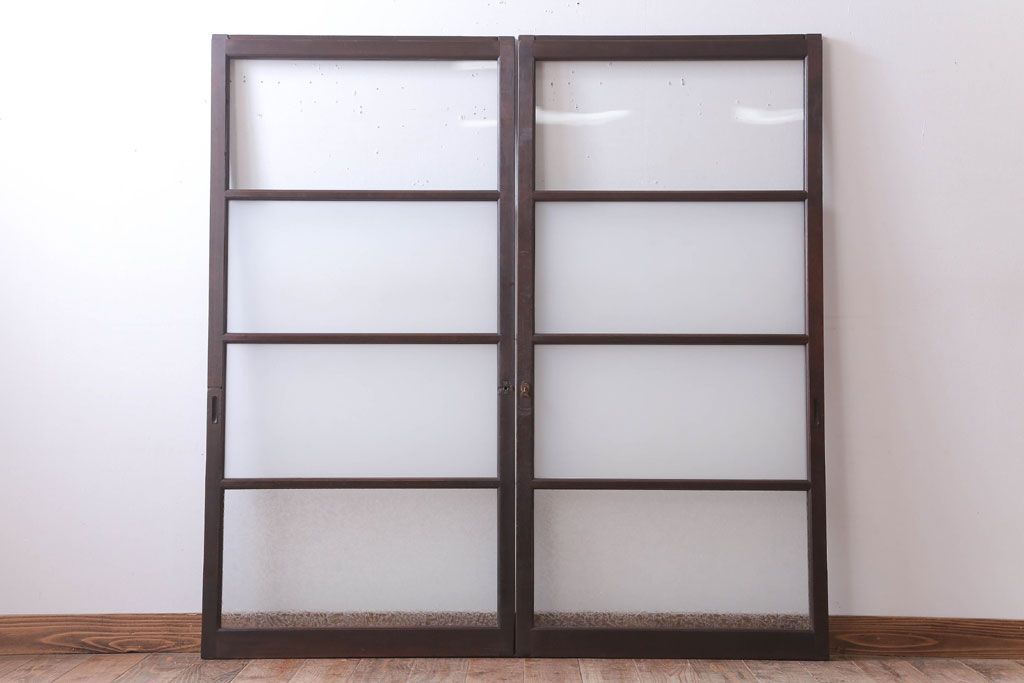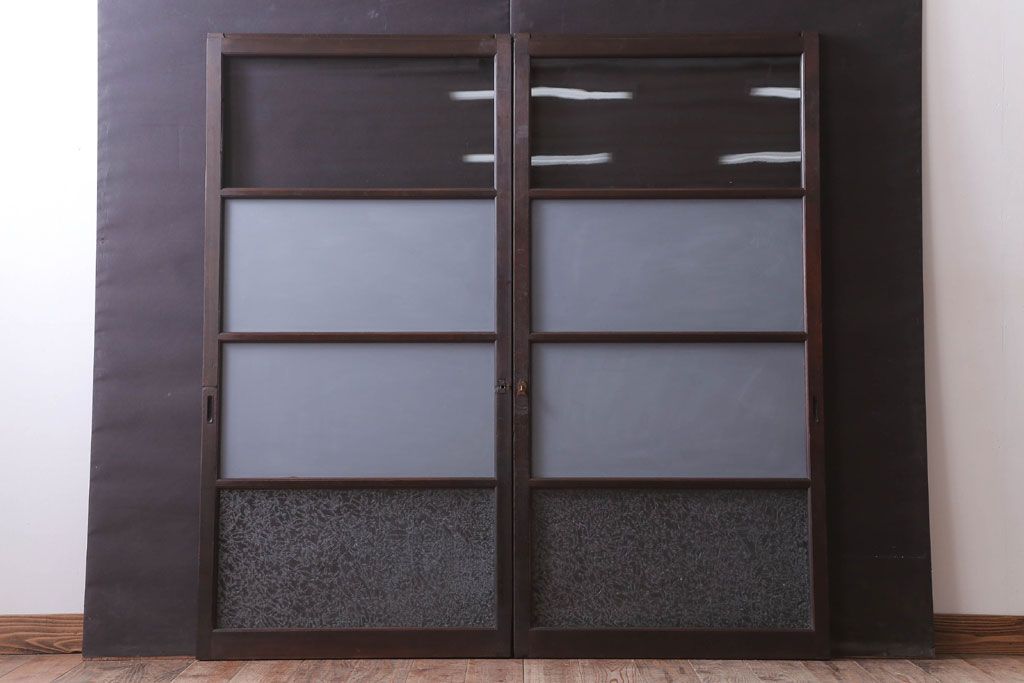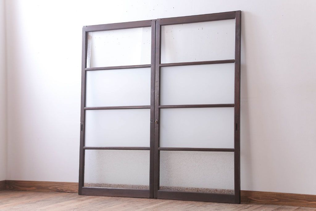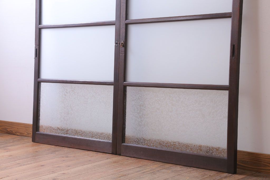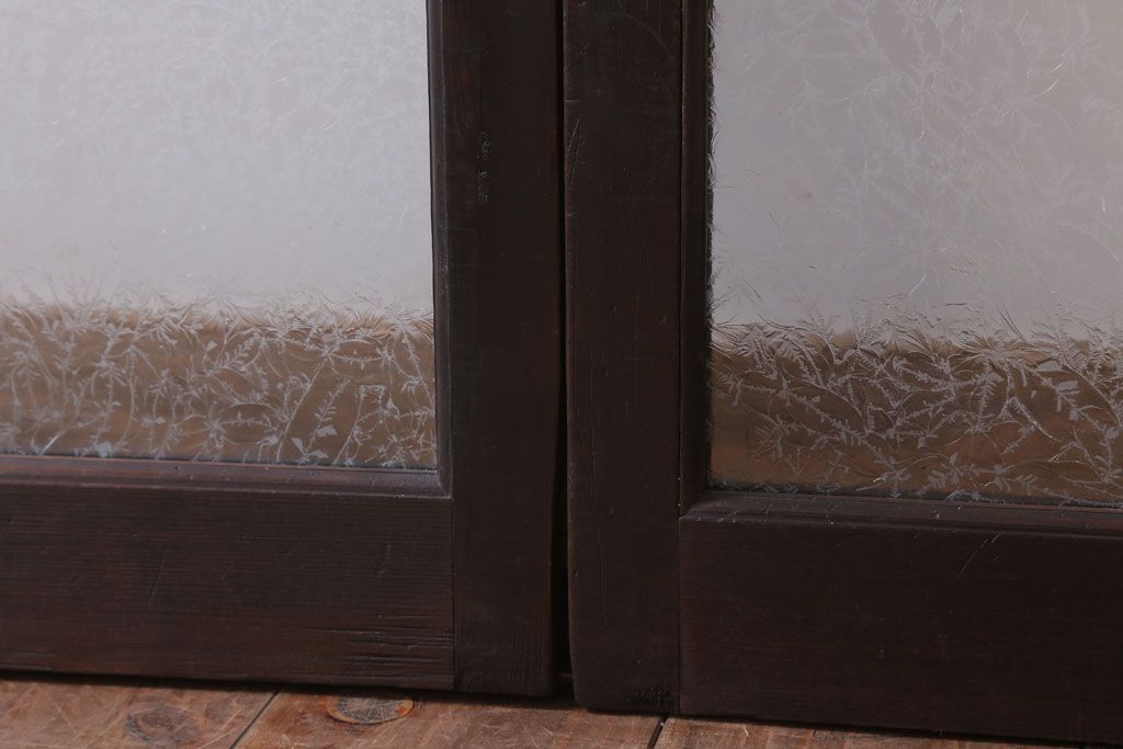 昭和レトロ すり・結霜・クリアガラスの引き戸2枚セット(窓)(2)