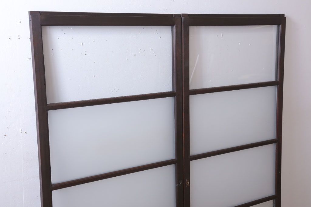 ラフジュ工房> 衝立・パーテーション > 昭和レトロ すり・結霜・クリアガラスの引き戸2枚セット(窓)(2)