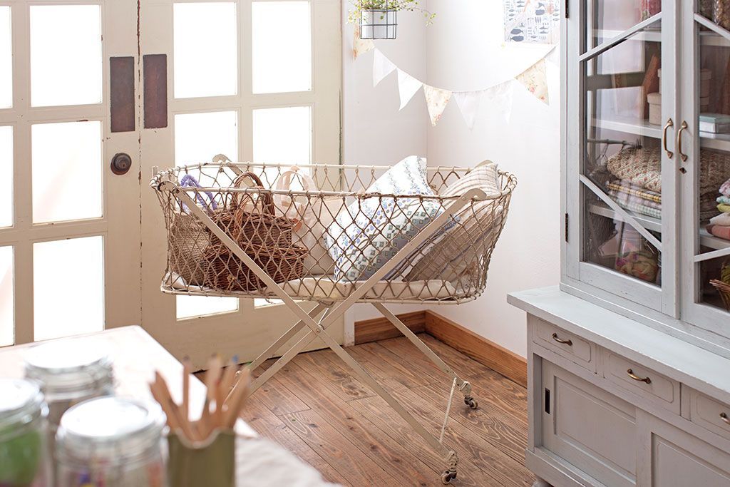 ラフジュ工房> ベッド> ベビーベッド > アンティーク家具 フランスアンティーク 小振りなフォールディングベビーベッド