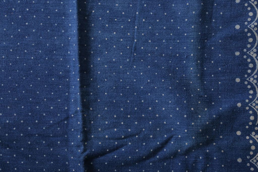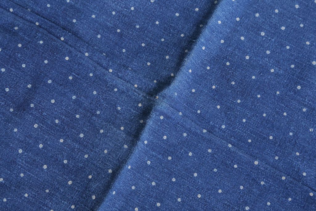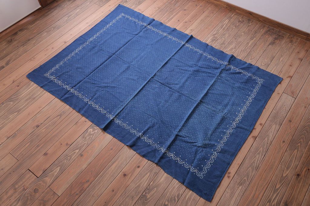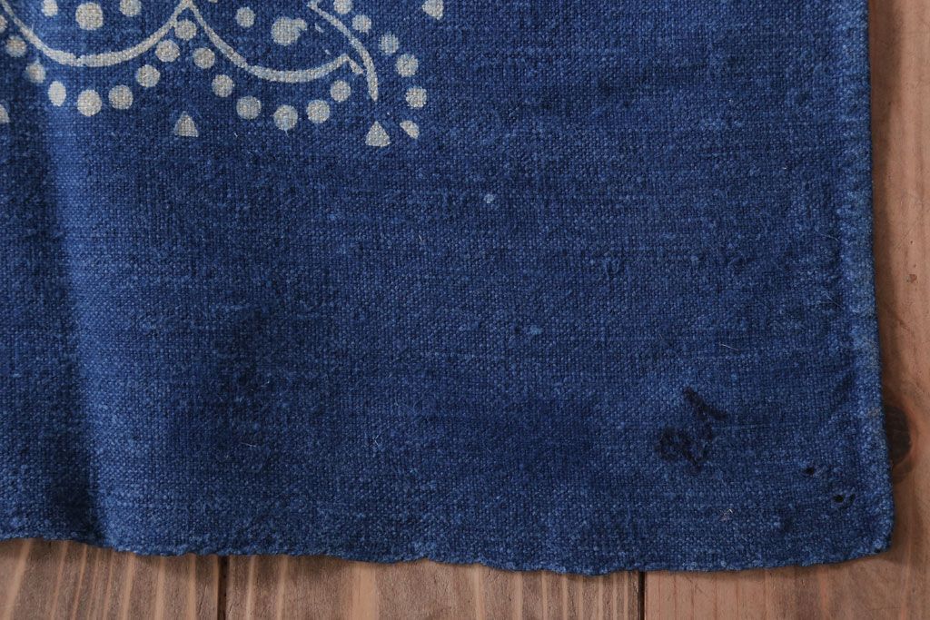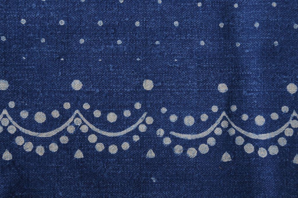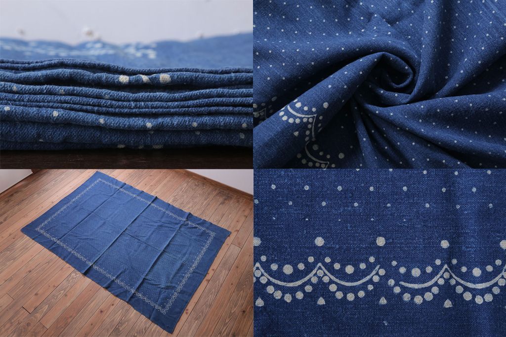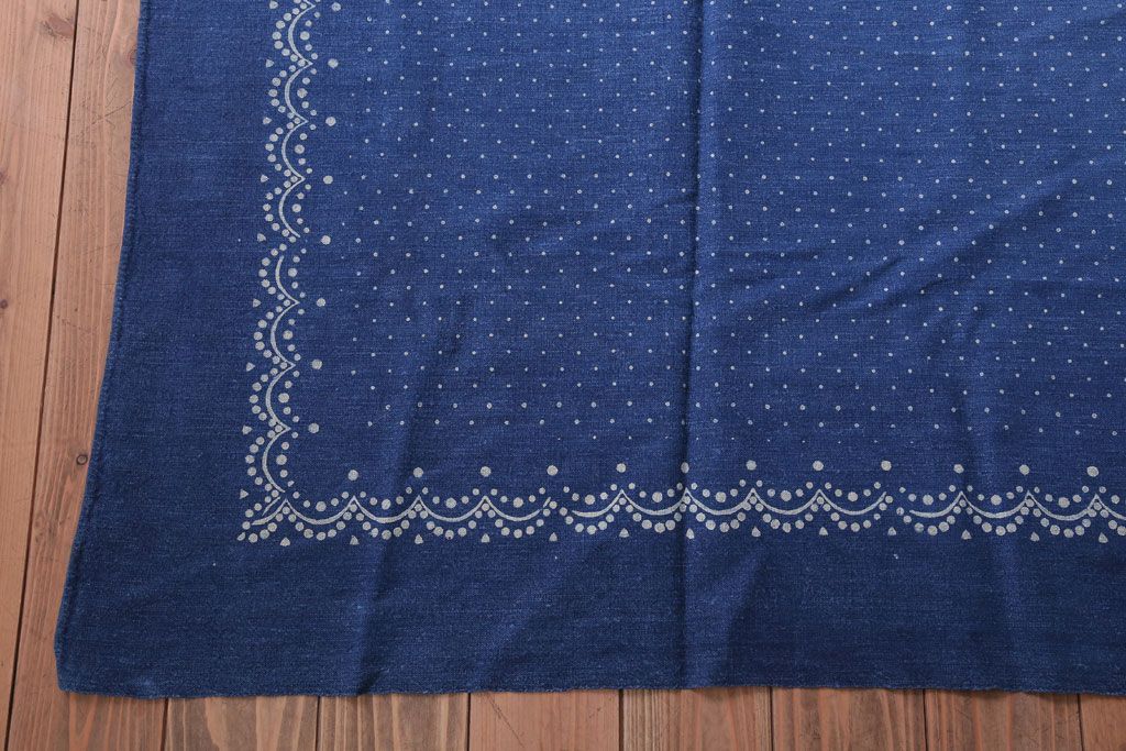 ラフジュ工房> 雑貨> ファブリック > アンティーク雑貨 アンティーク インディゴ(藍)染めハンガリーリネンのテーブルクロス(ドット&レース柄)