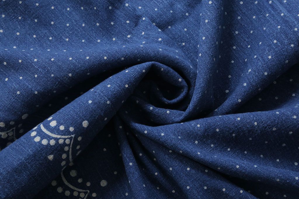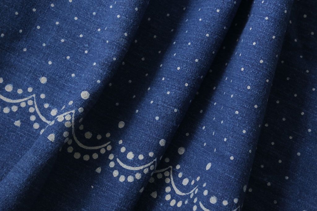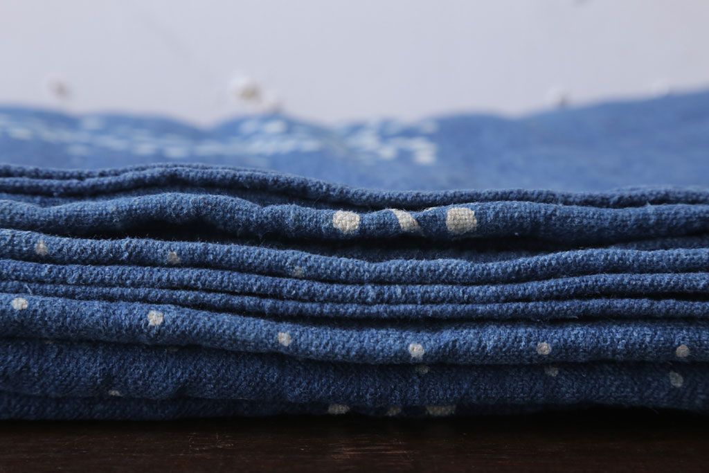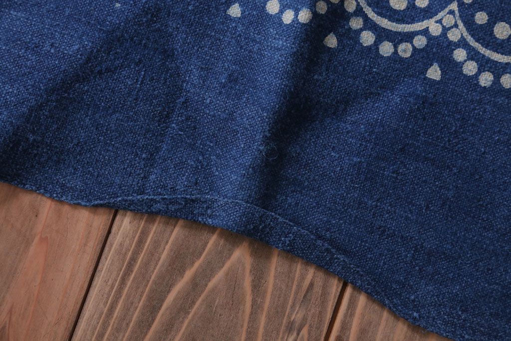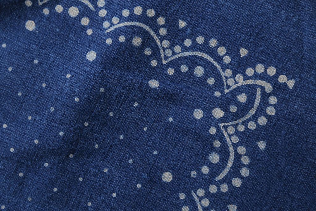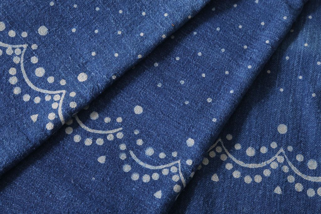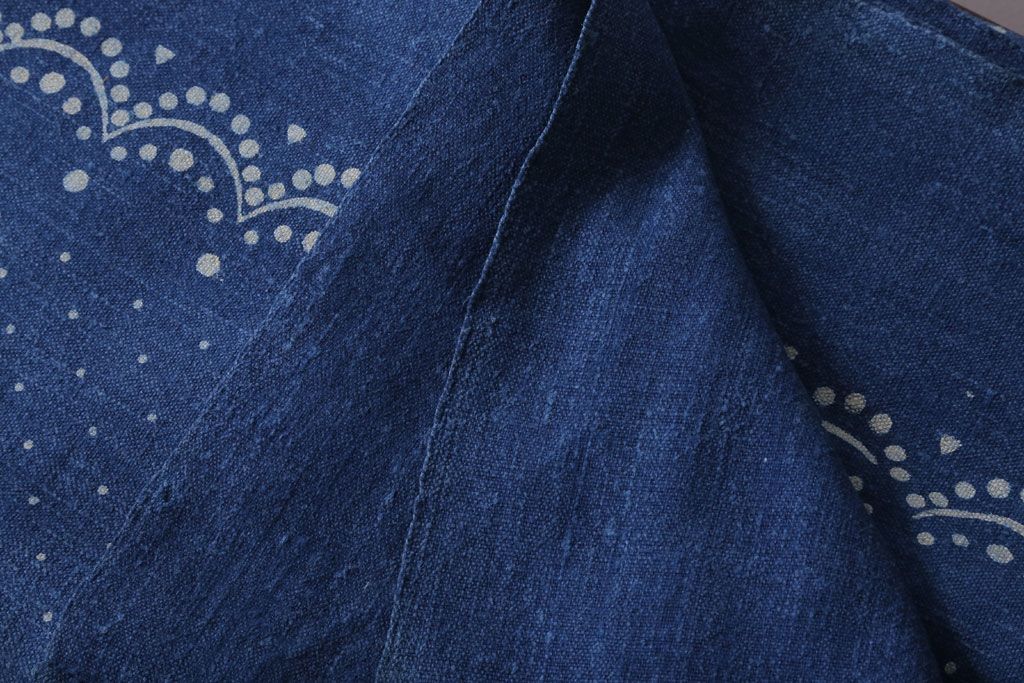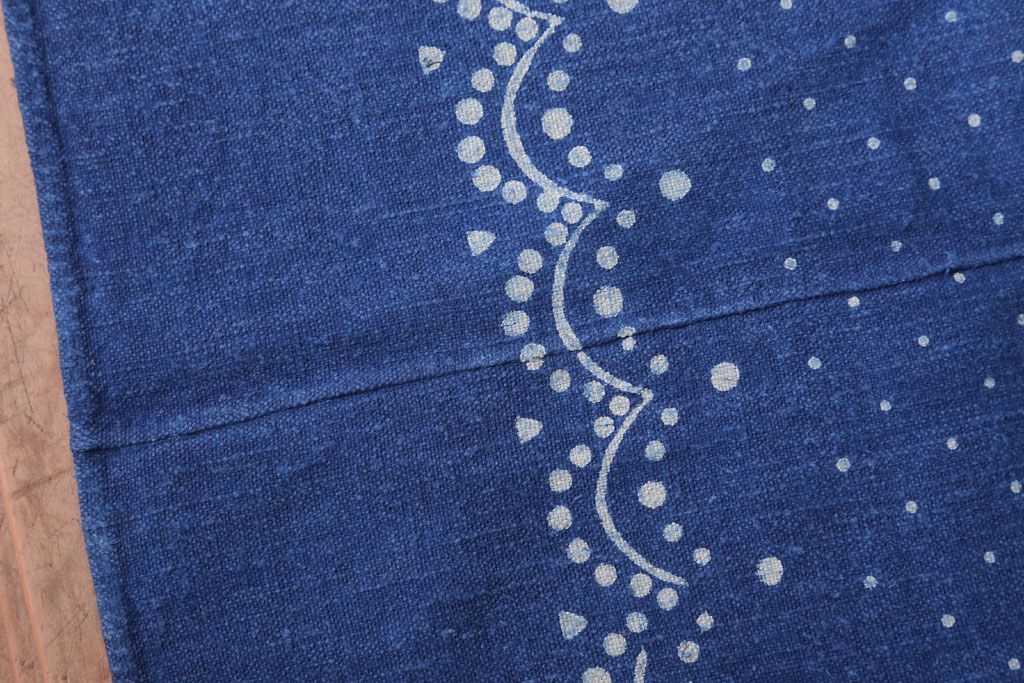 ラフジュ工房> 雑貨> ファブリック > アンティーク雑貨 アンティーク インディゴ(藍)染めハンガリーリネンのテーブルクロス(ドット&レース柄)