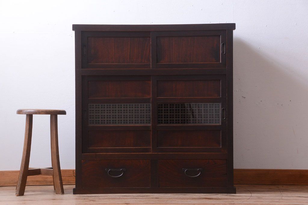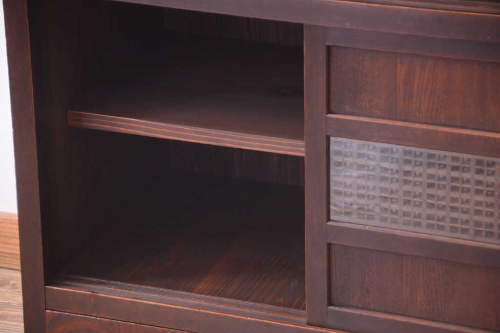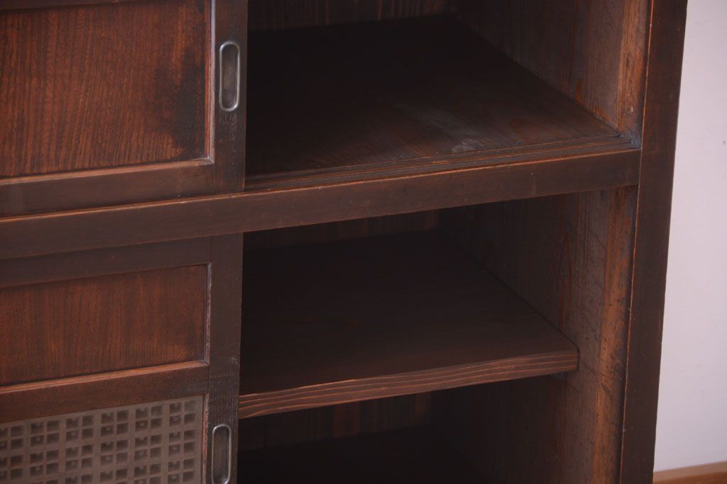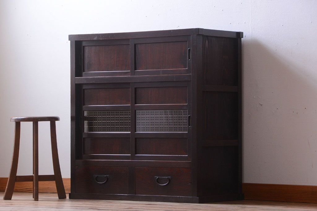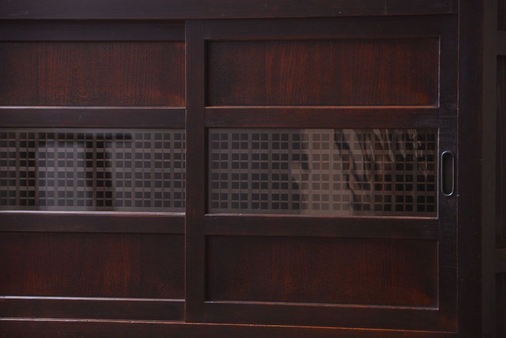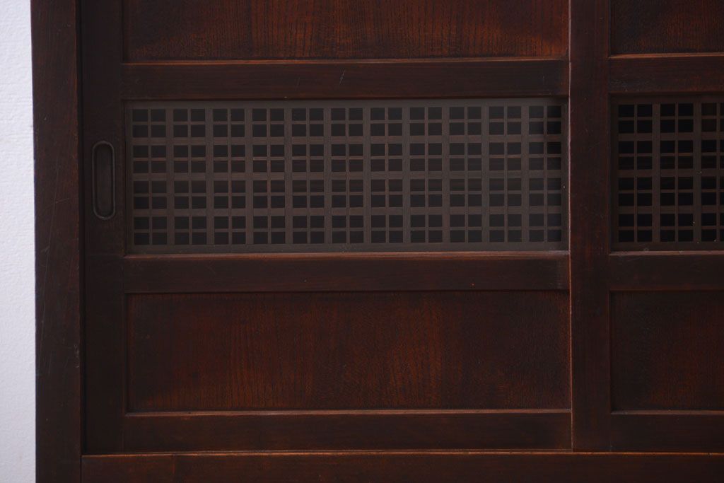 アンティーク家具 和製アンティーク 古い木製の組子引き戸茶箪笥(収納棚)