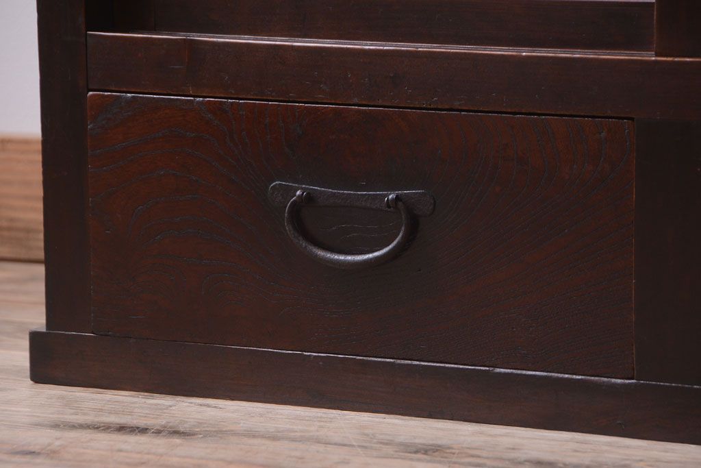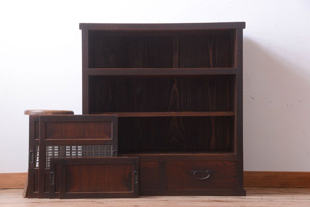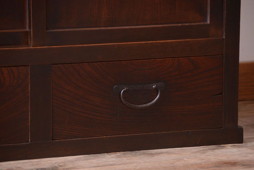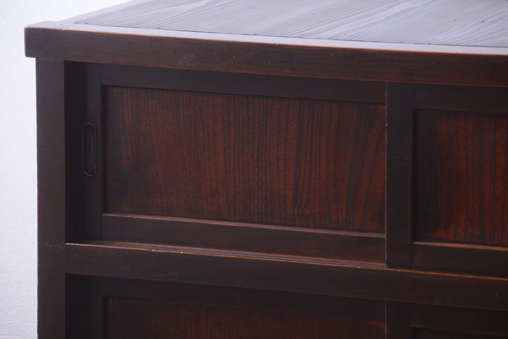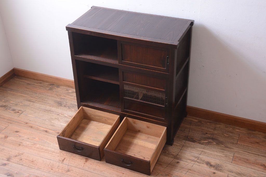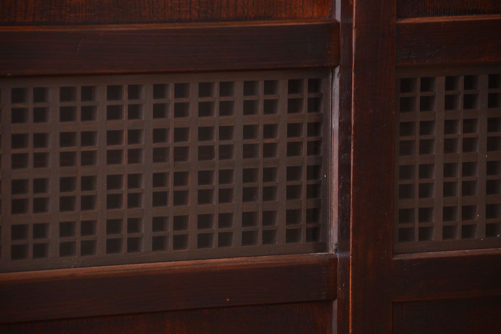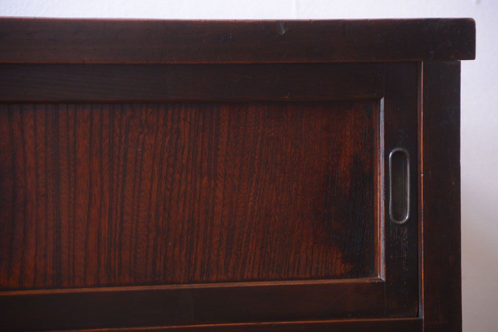アンティーク家具 和製アンティーク 古い木製の組子引き戸茶箪笥(収納棚)