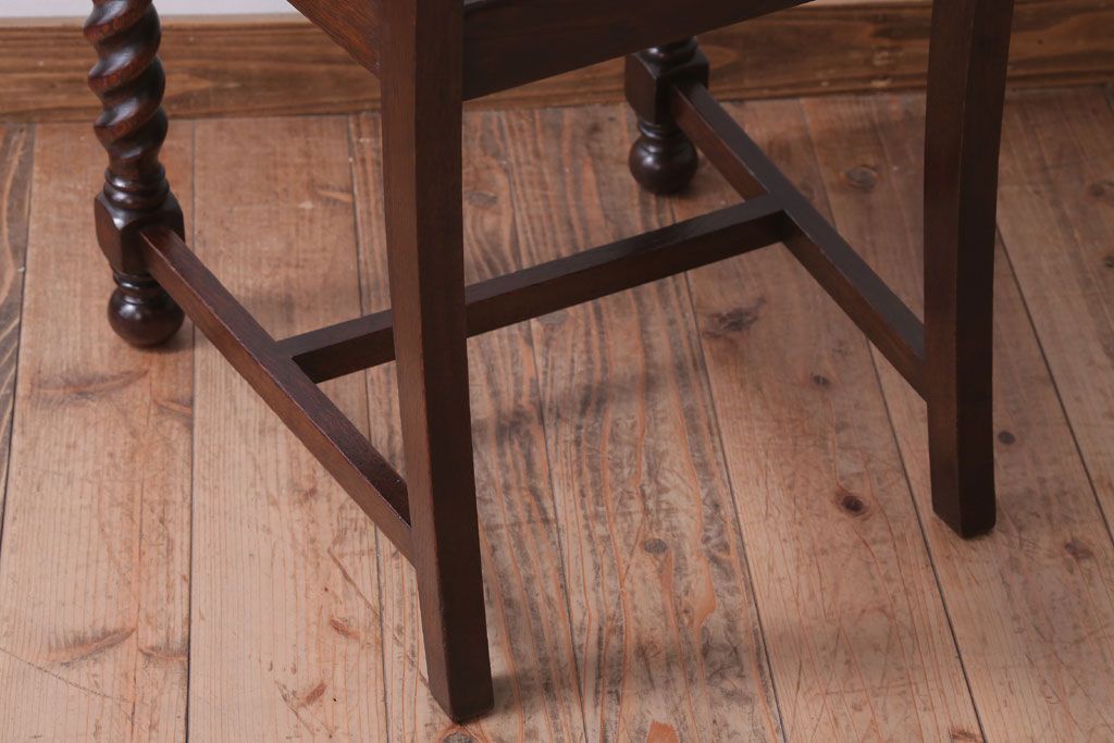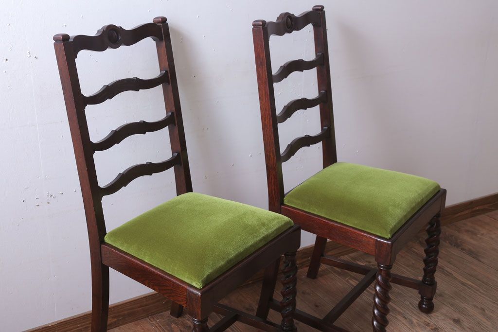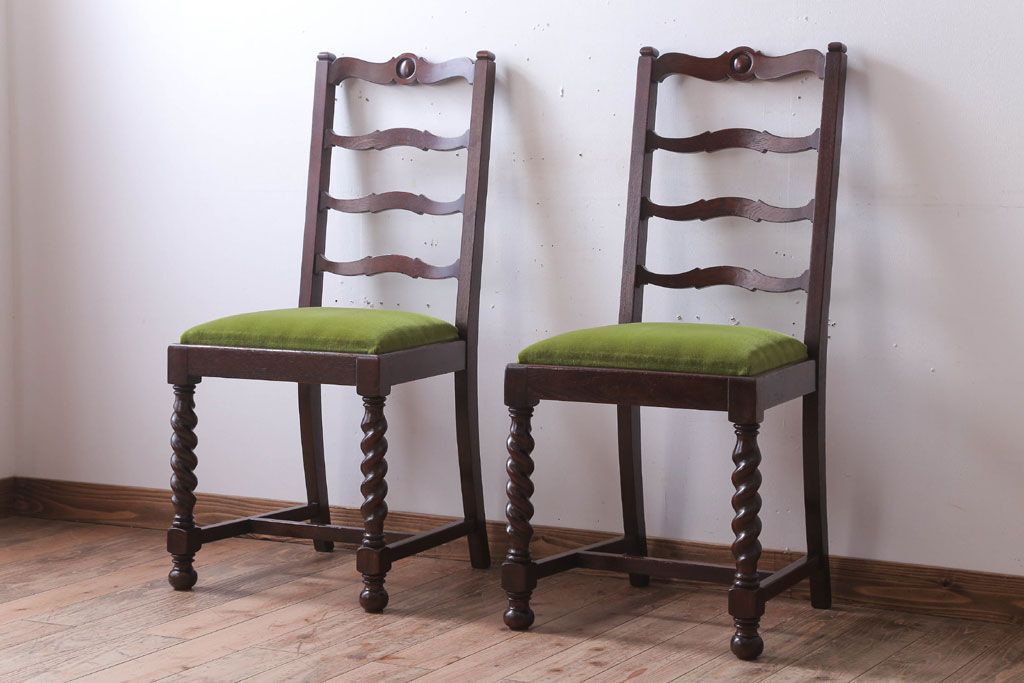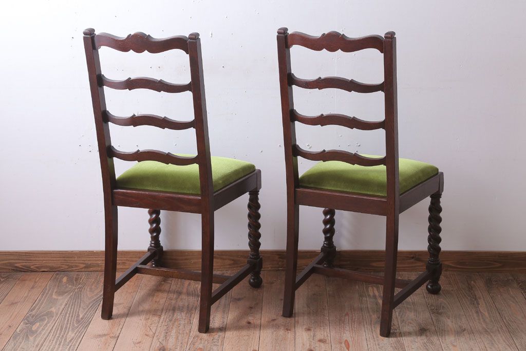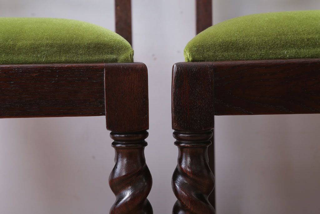 アンティーク家具 イギリスアンティーク オーク材の優雅なツイストレッグダイニングチェア2脚セット