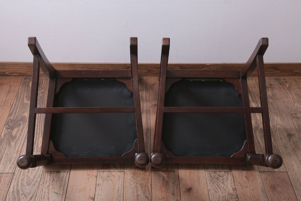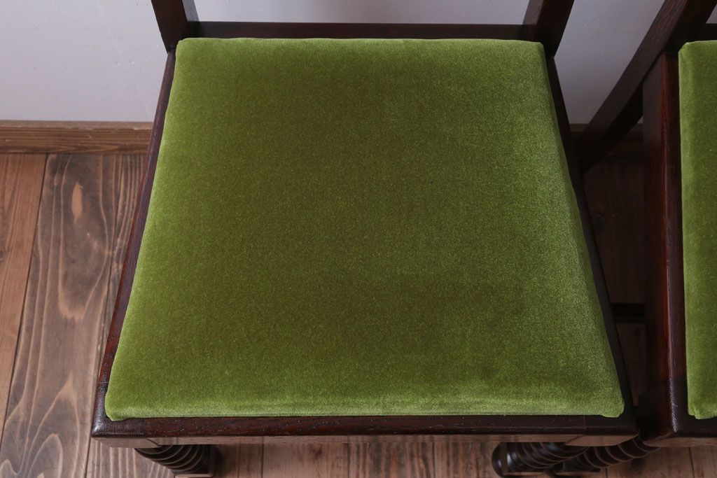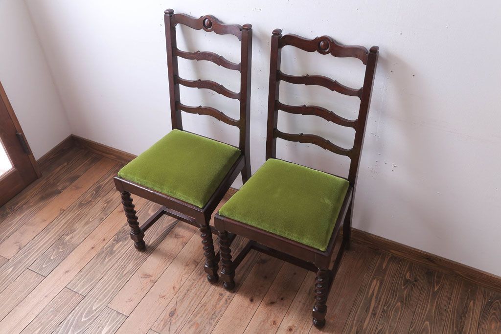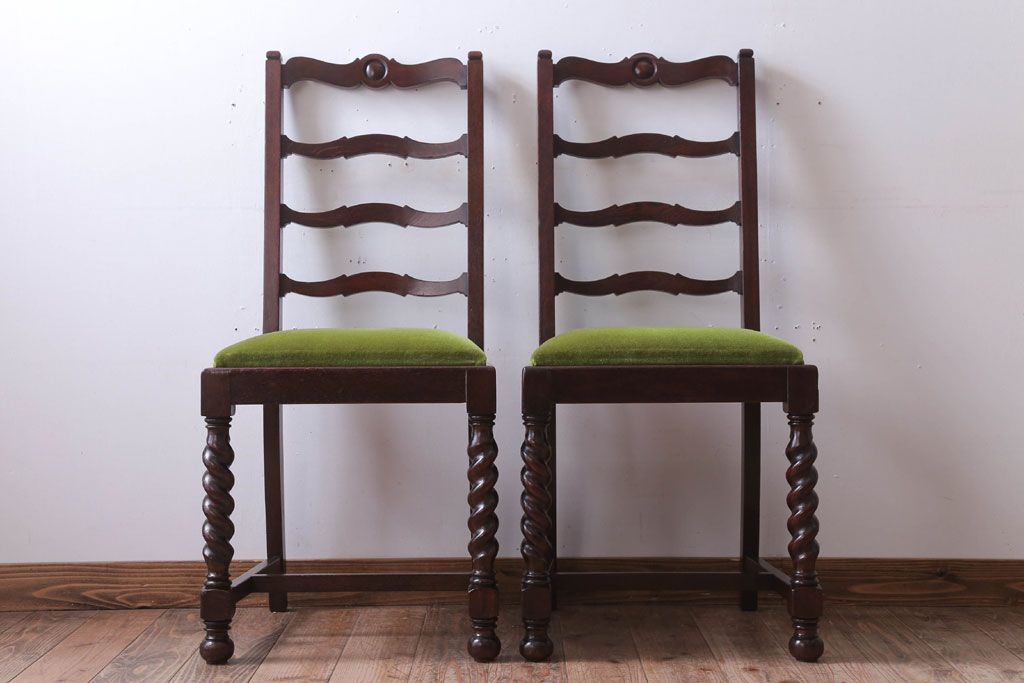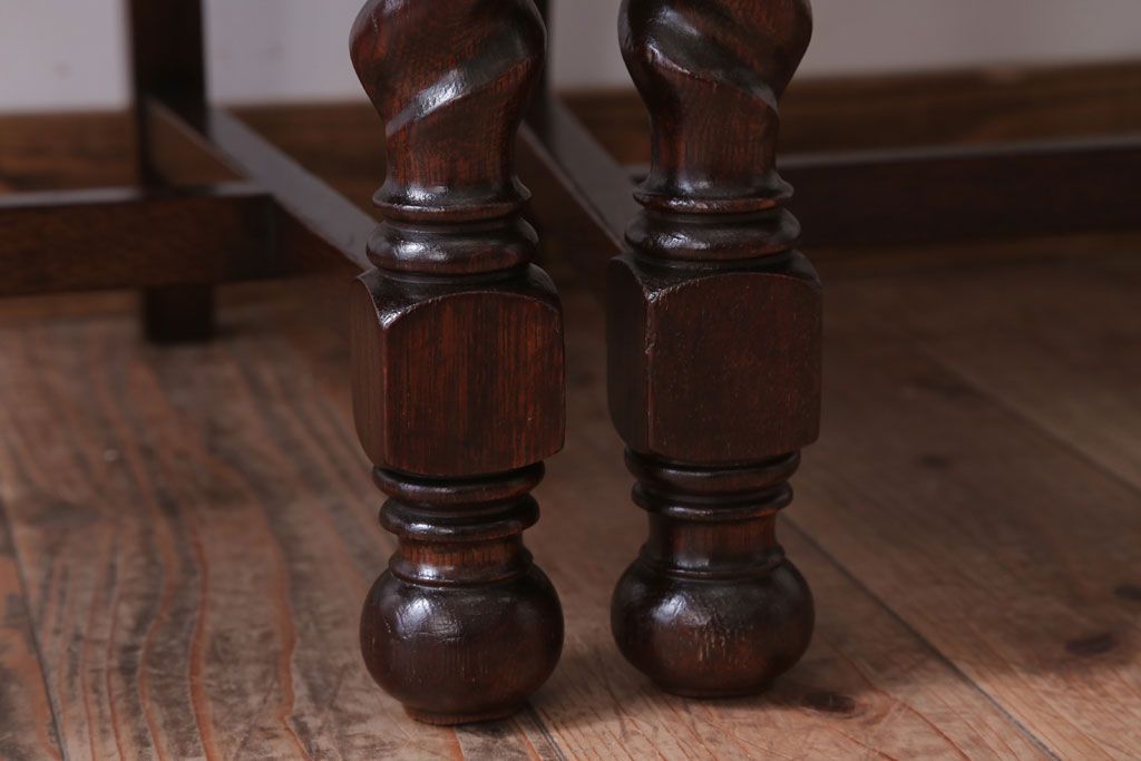 アンティーク家具 イギリスアンティーク オーク材の優雅なツイストレッグダイニングチェア2脚セット