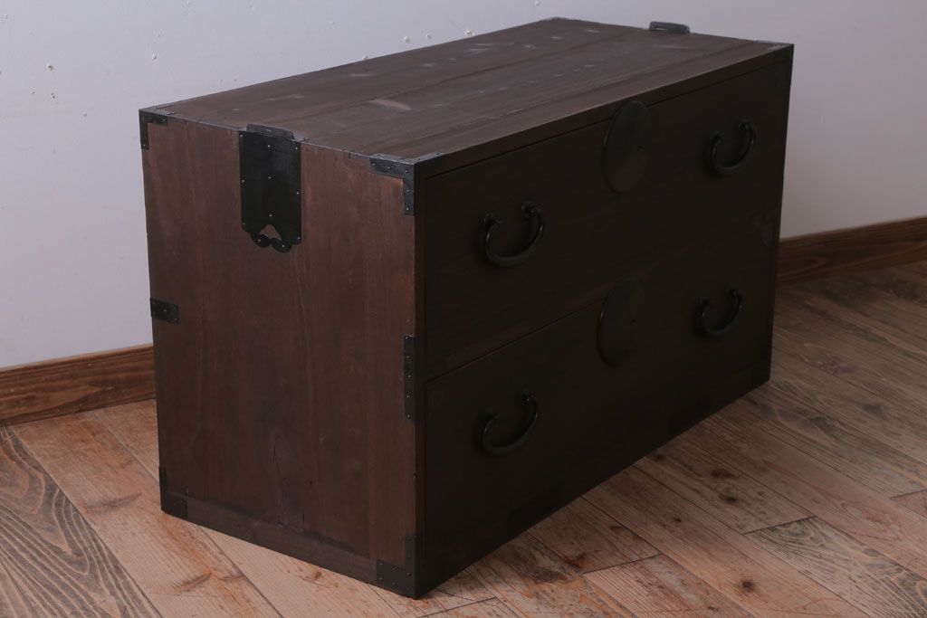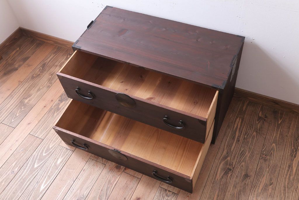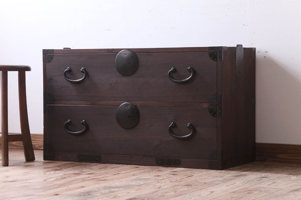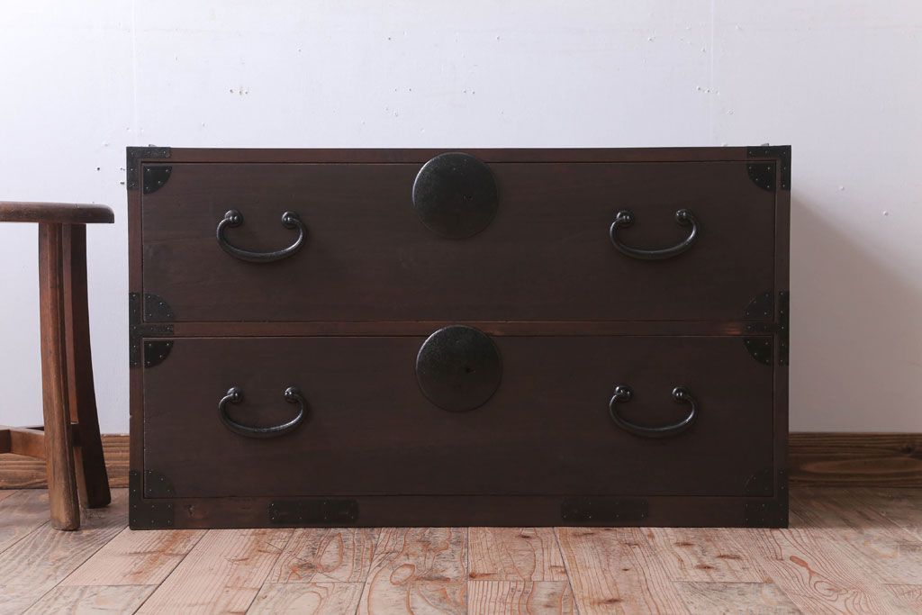 ラフジュ工房> 和箪笥 > アンティーク家具 古民具・骨董 シンプルな丸金具の時代箪笥ローボード(2)