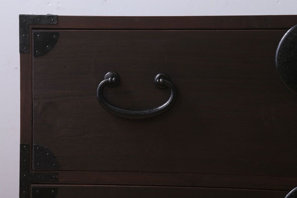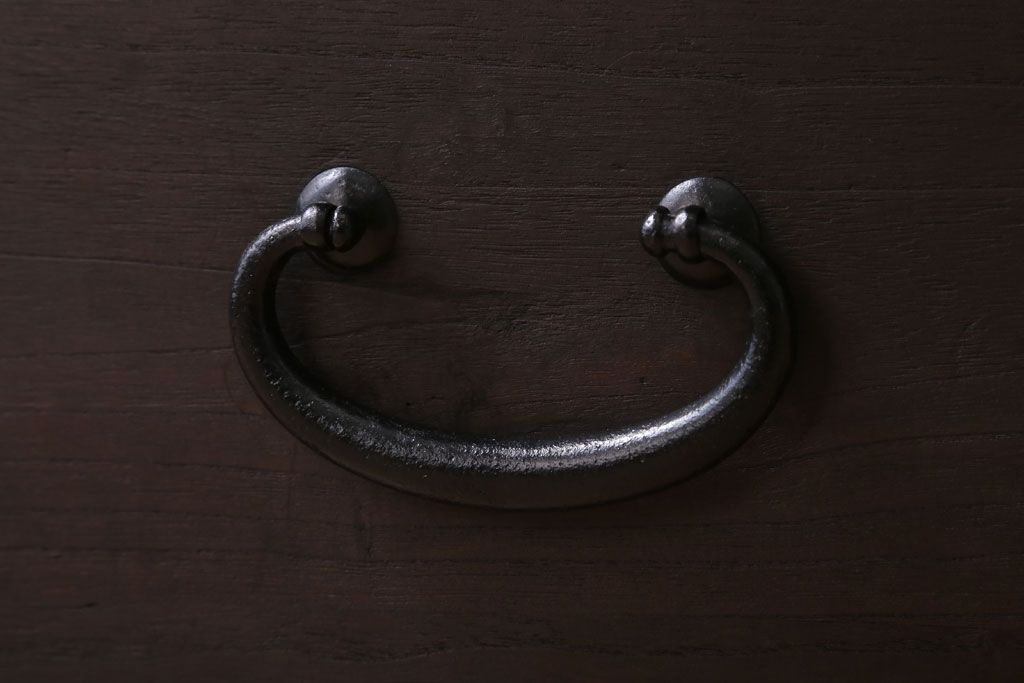アンティーク家具 古民具・骨董 シンプルな丸金具の時代箪笥ローボード(2)