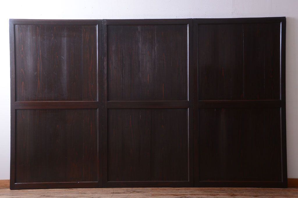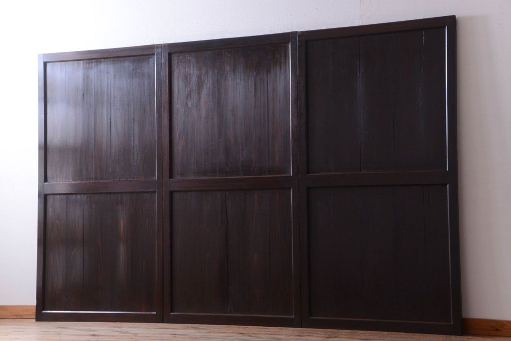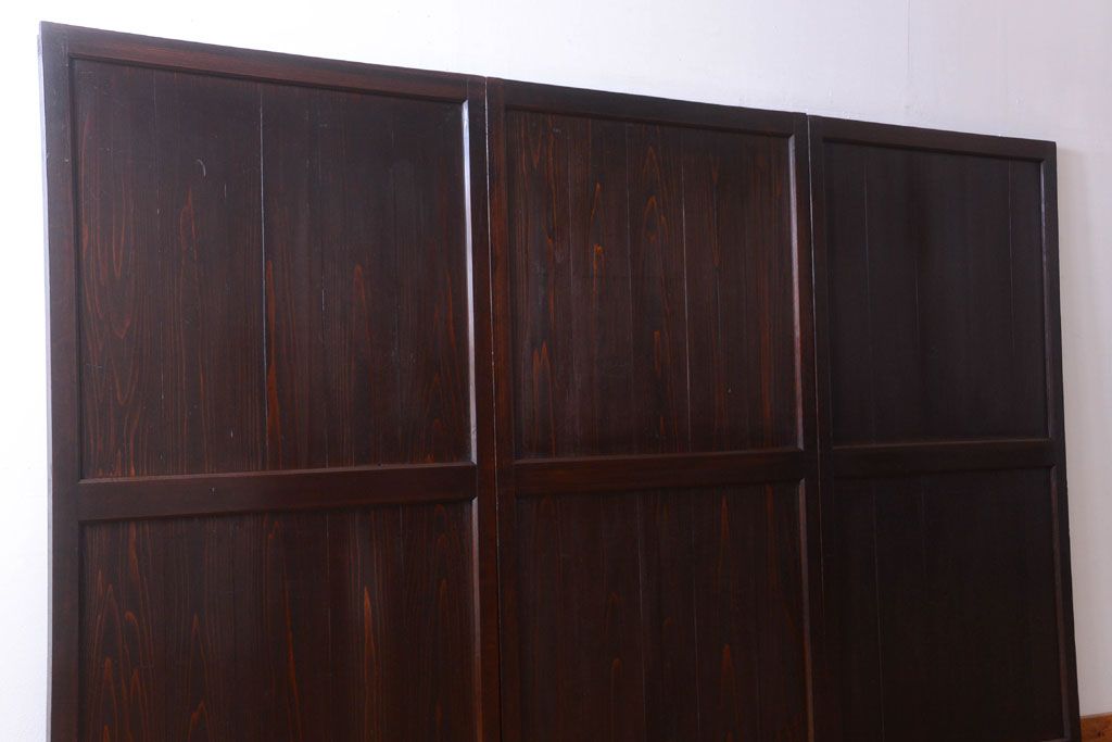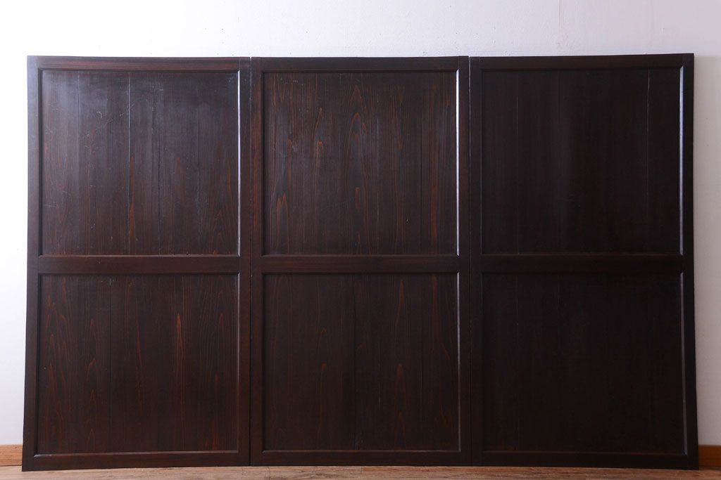 古民具・骨董 明治期 古い木味のアンティーク帯戸3枚セット(2)