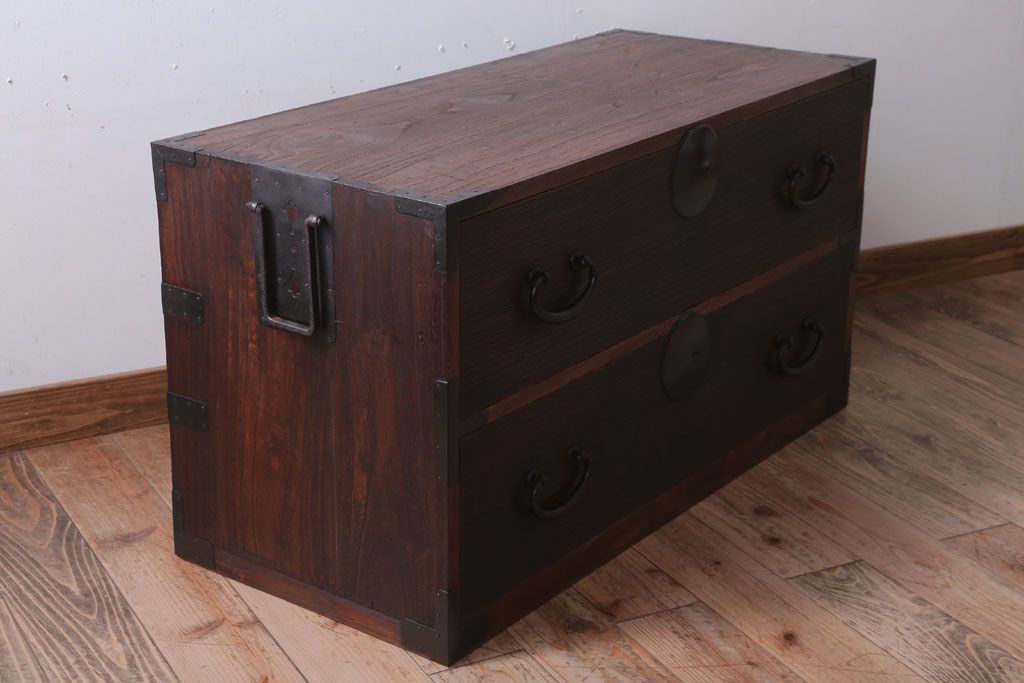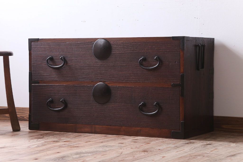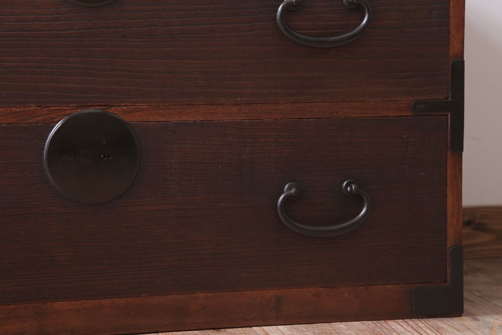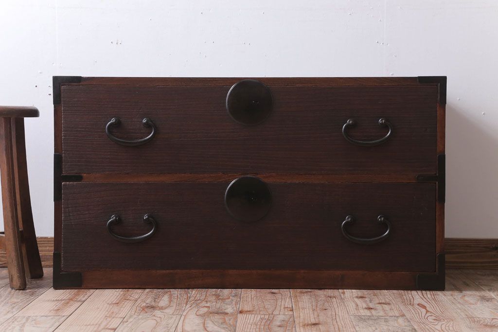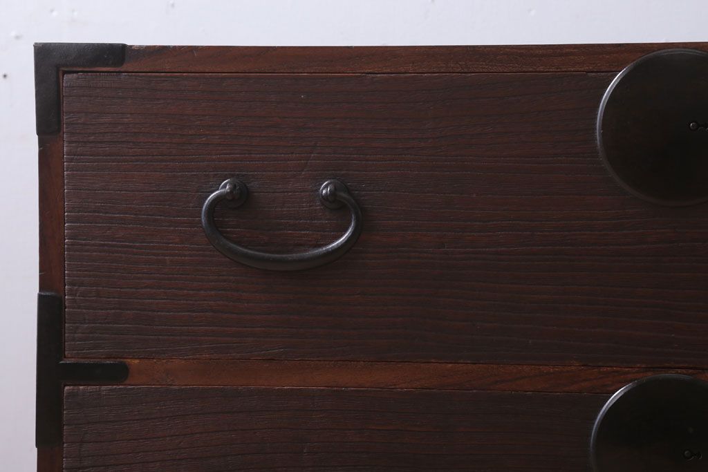 アンティーク家具 和製アンティーク 上手物 シンプルな丸金具の総桐箪笥ローボード(衣装箪笥・時代箪笥、桐たんす)(2)