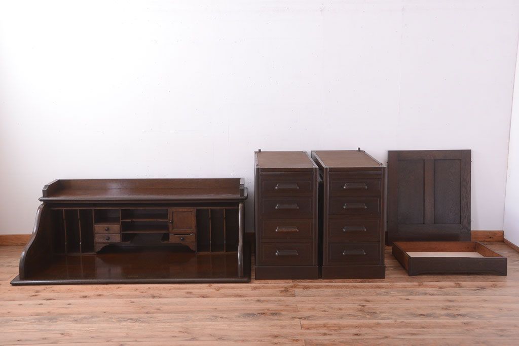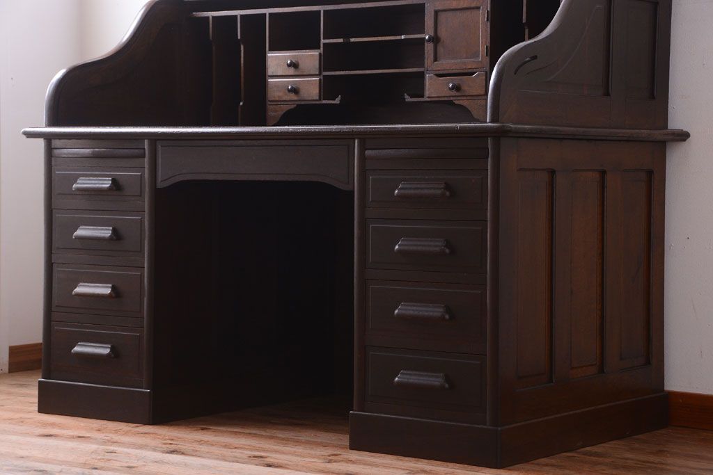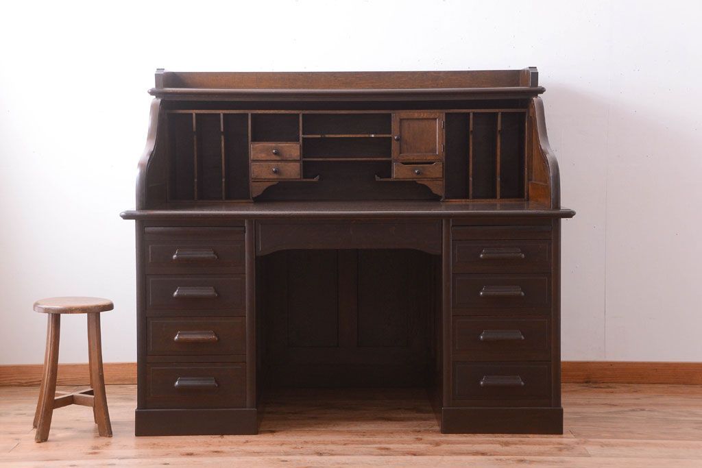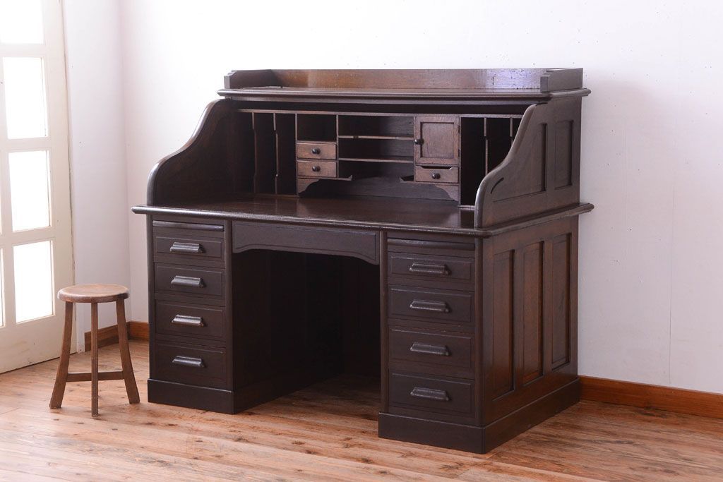 アンティーク家具 アンティーク 大正〜昭和初期 国産 ナラ材の上質な両袖机