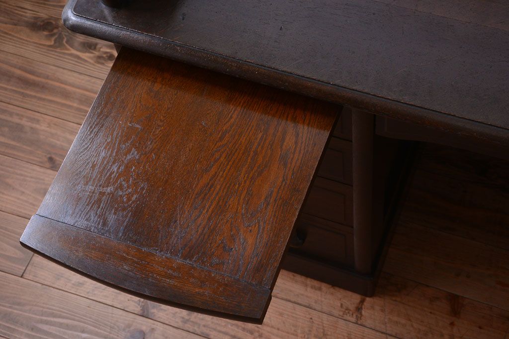 アンティーク 大正〜昭和初期 国産 ナラ材の上質な両袖机です。