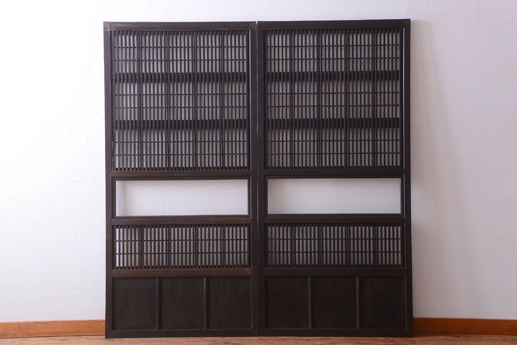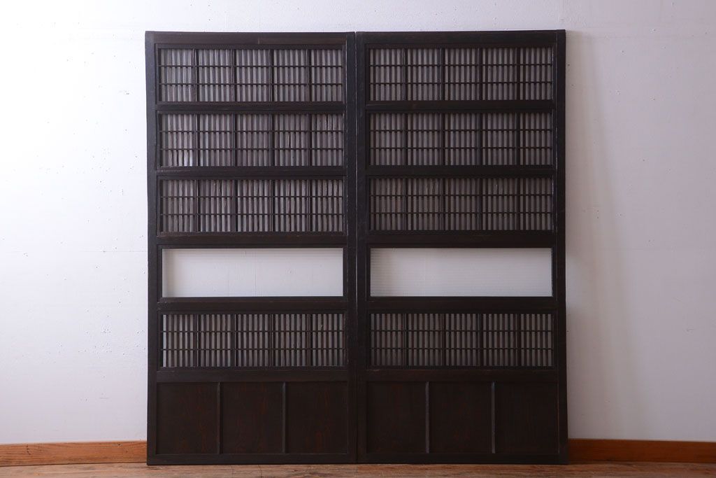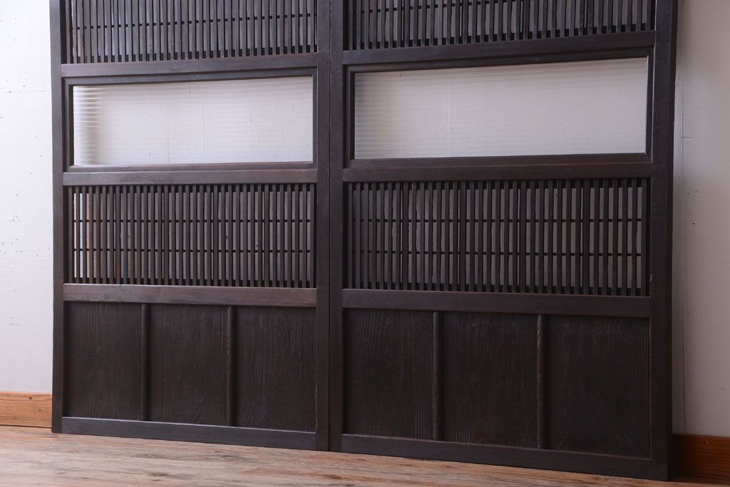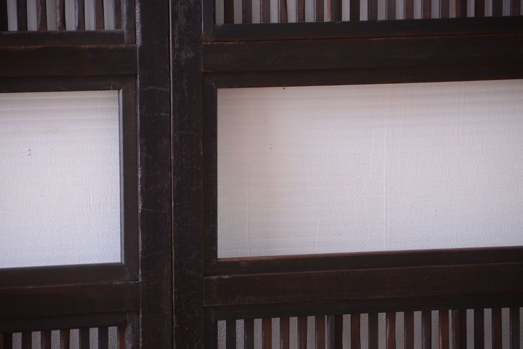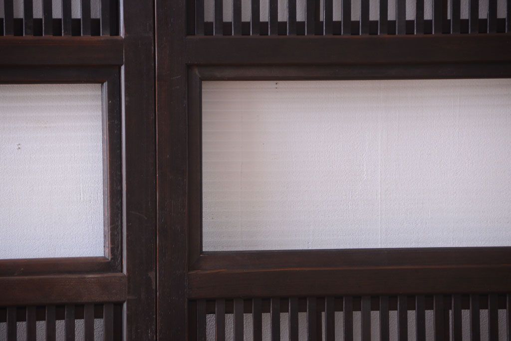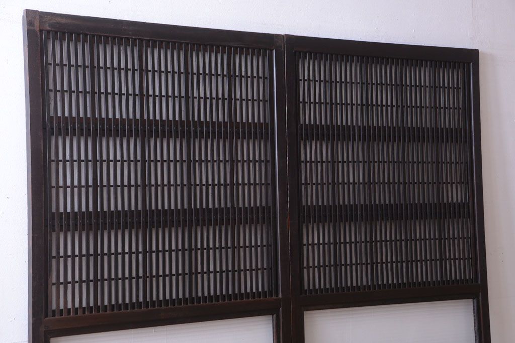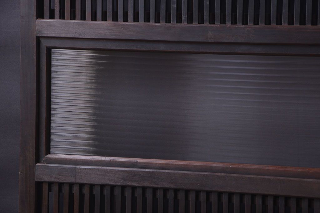 古民具・骨董 裏障子付き!モールガラス帯のアンティーク格子戸2枚セット