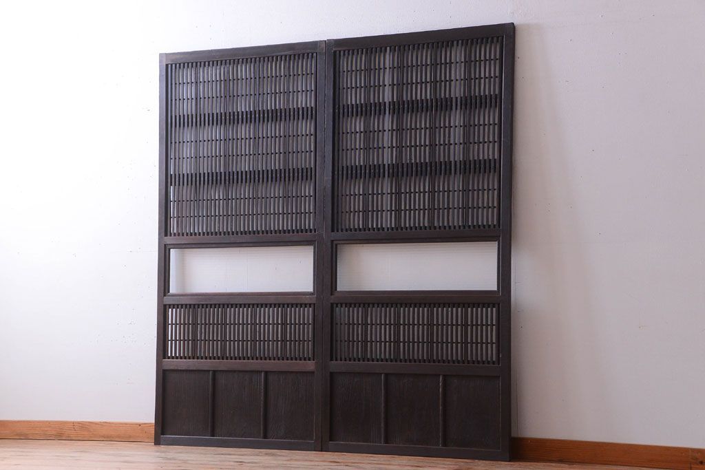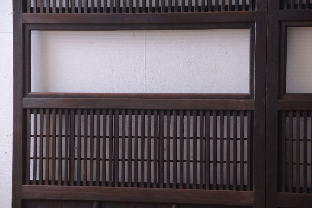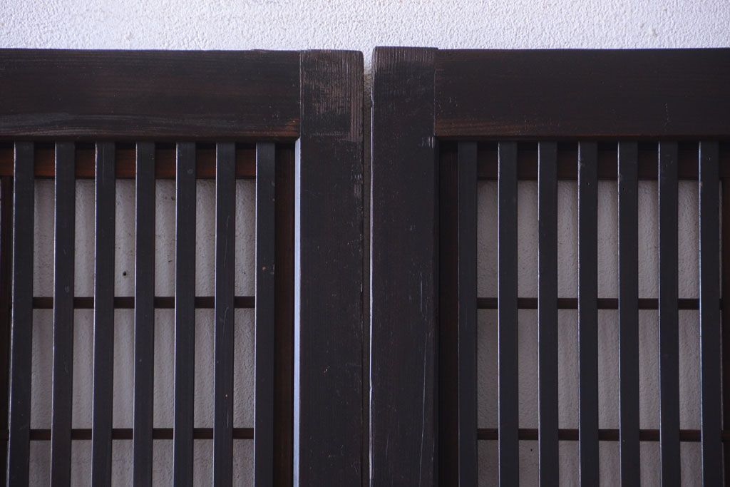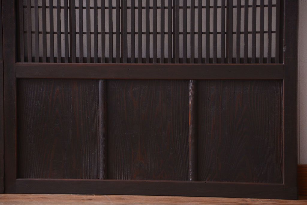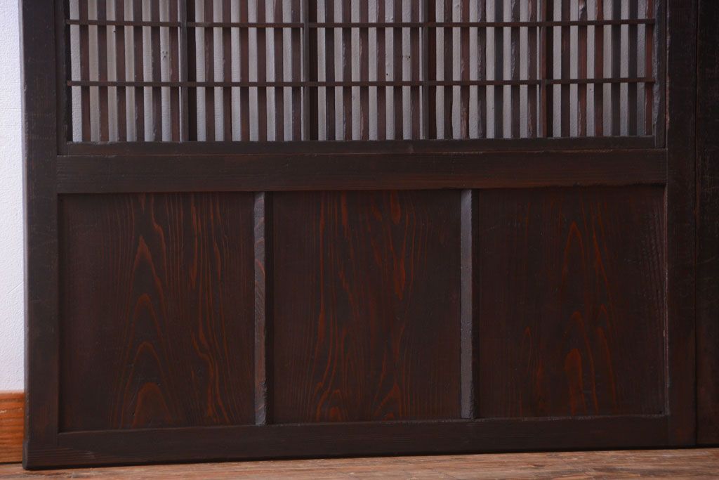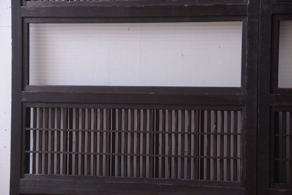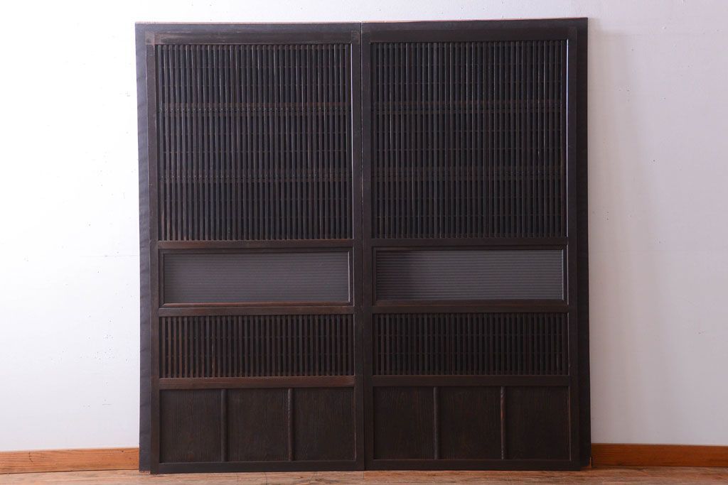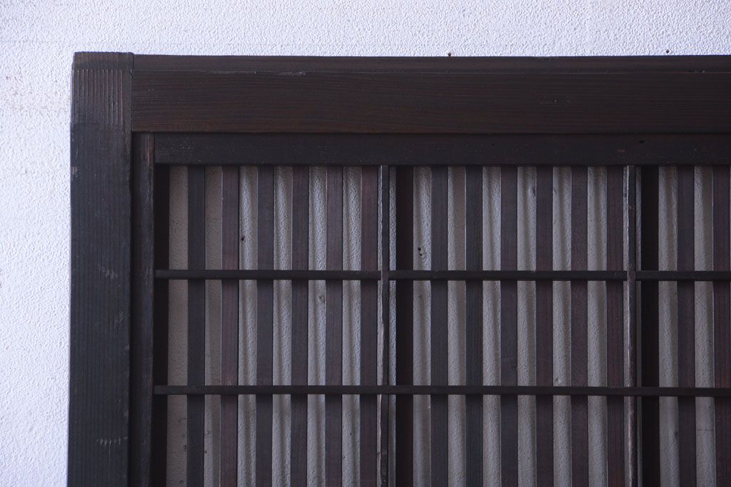 古民具・骨董 裏障子付き!モールガラス帯のアンティーク格子戸2枚セット