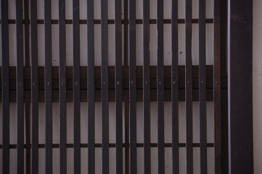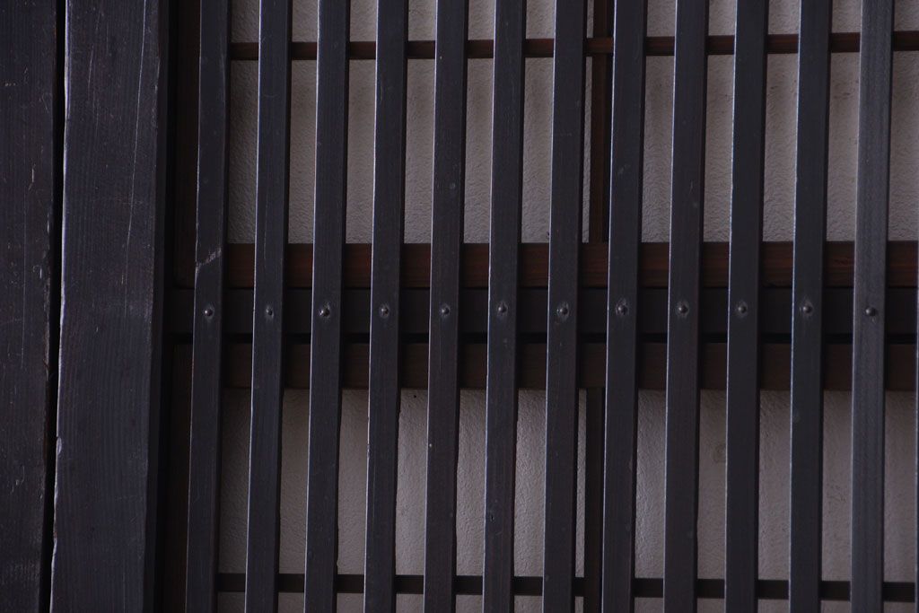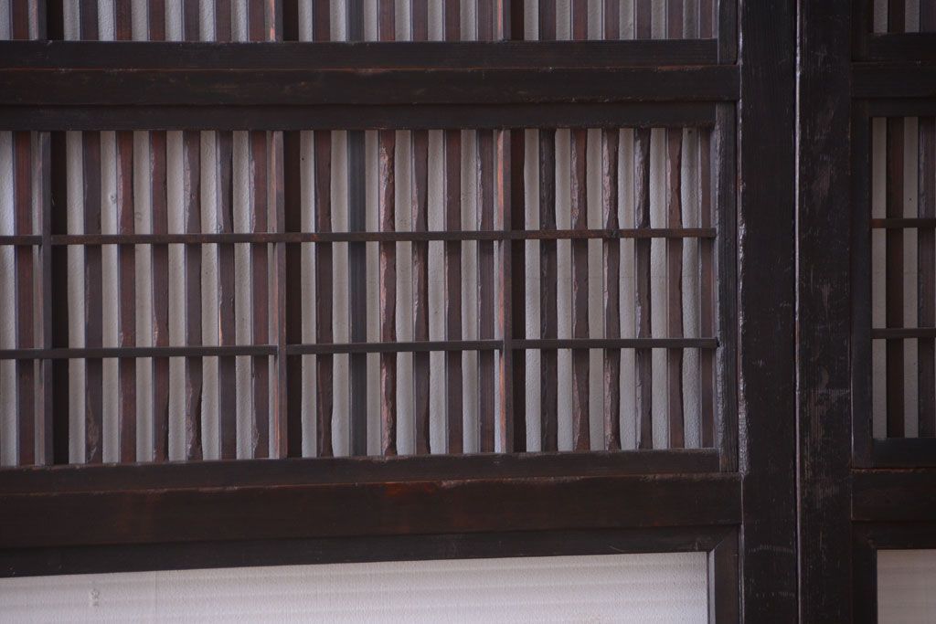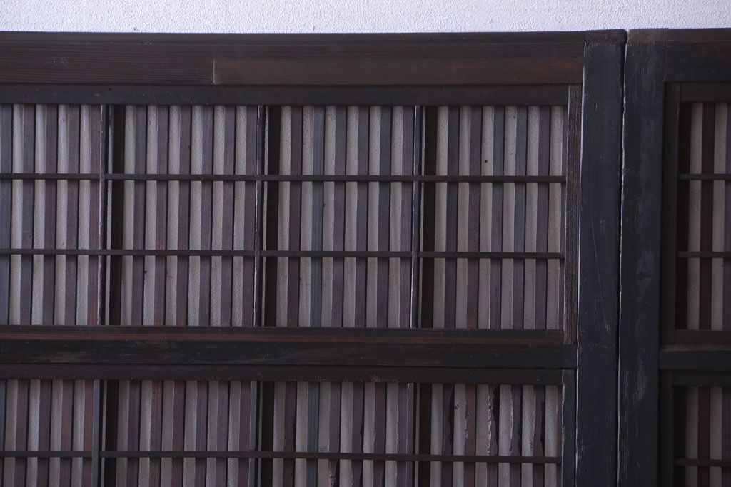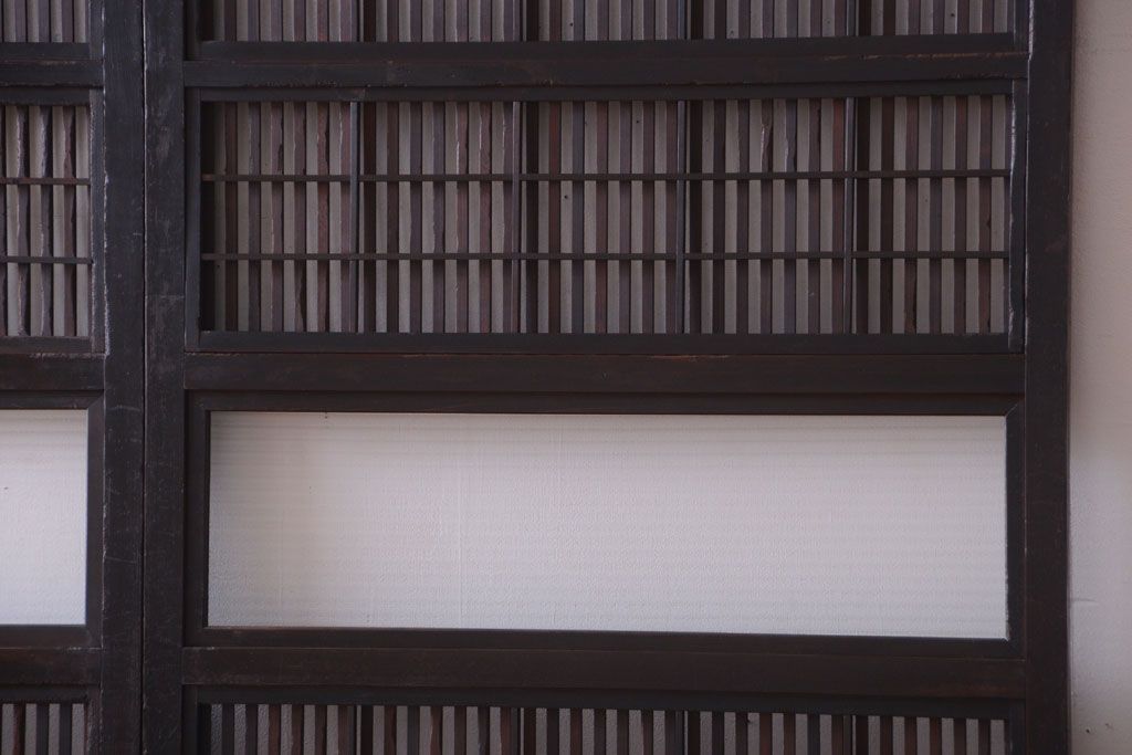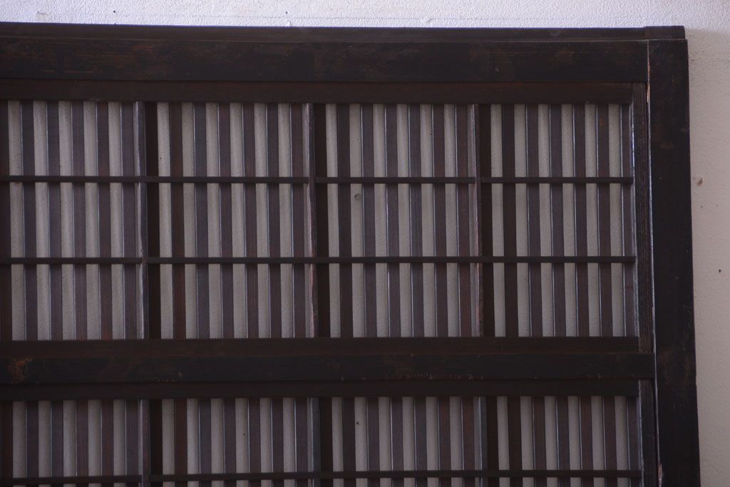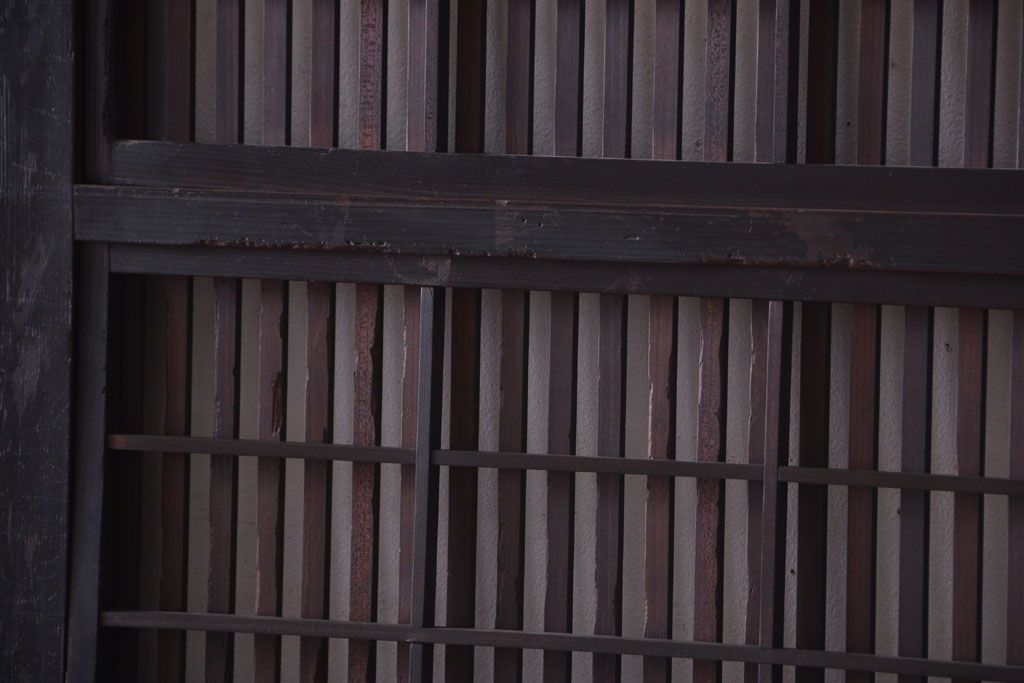 古民具・骨董 裏障子付き!モールガラス帯のアンティーク格子戸2枚セット