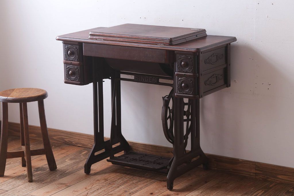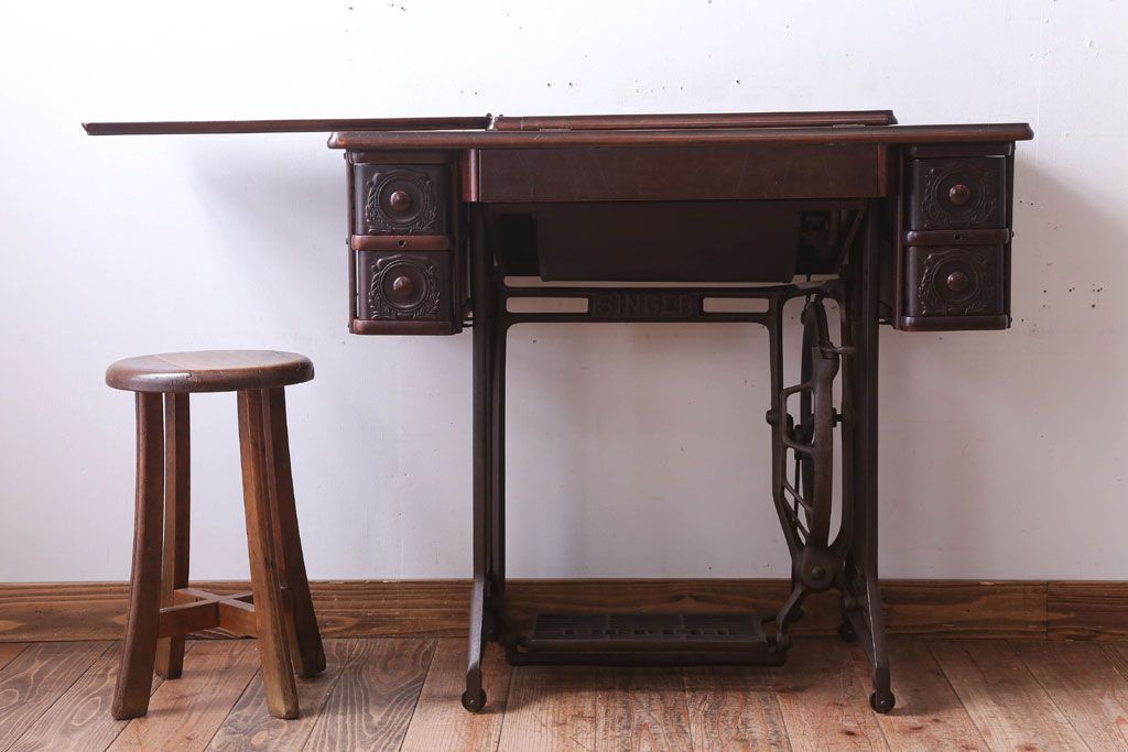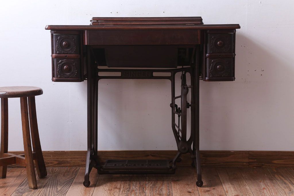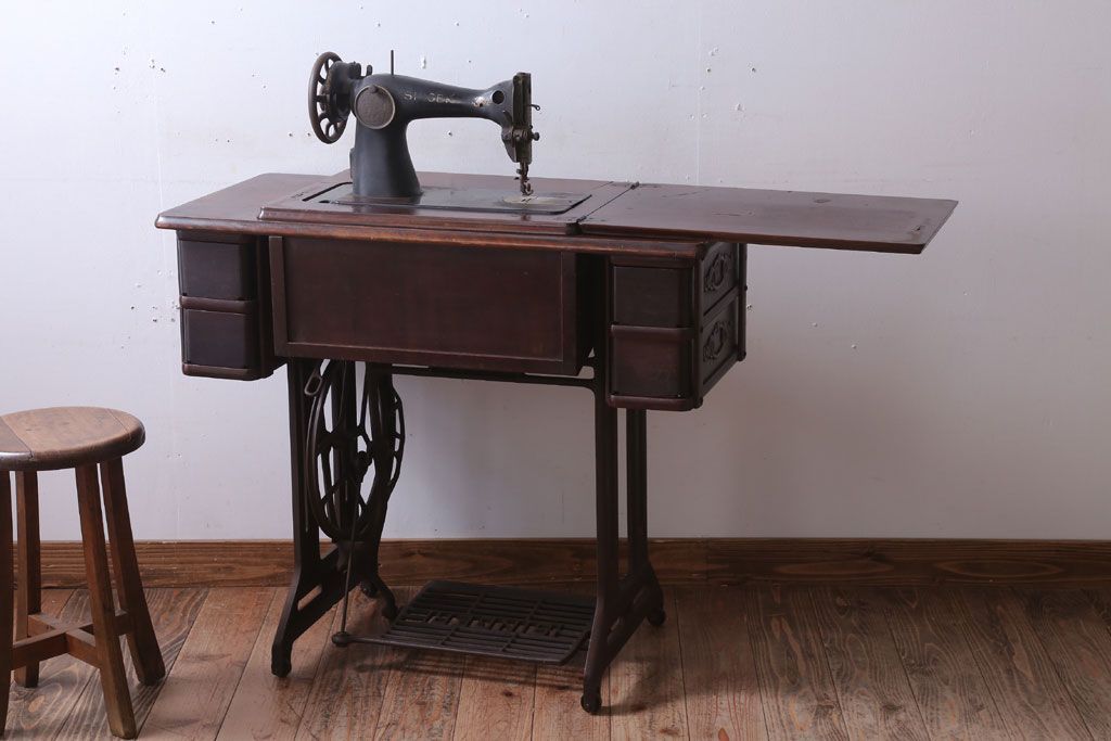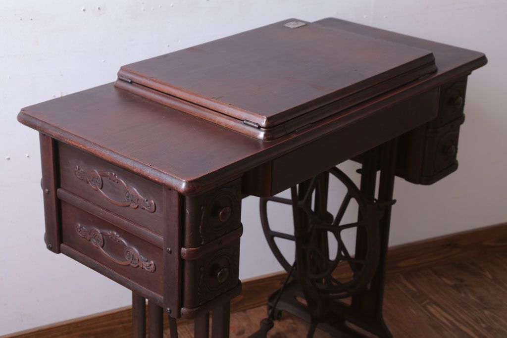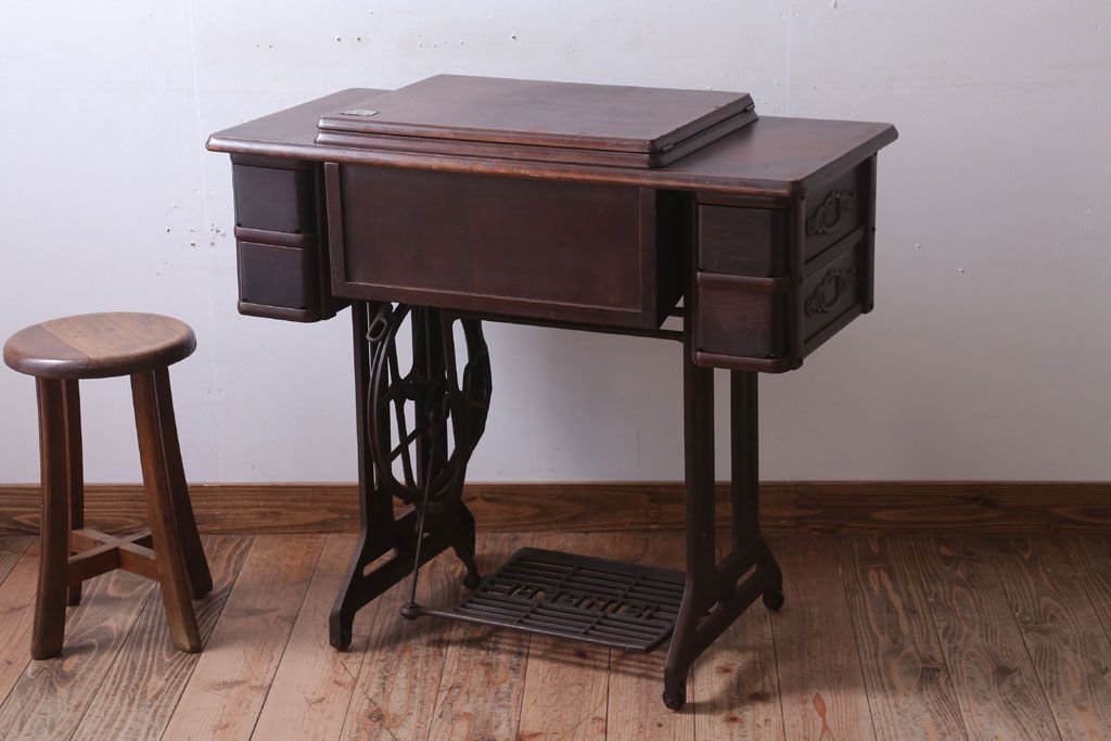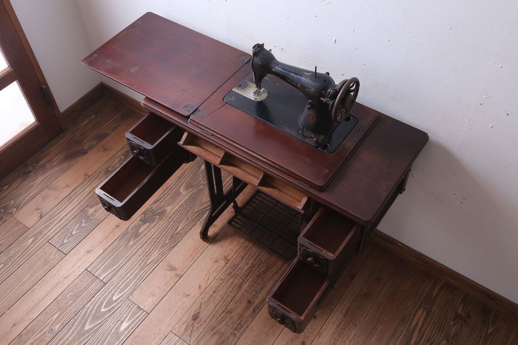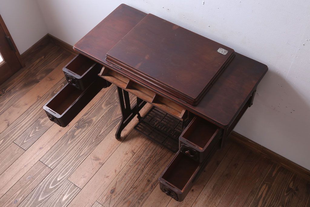 アンティーク家具 アンティーク ストレートレッグの2杯引き出しシンガーミシンテーブル