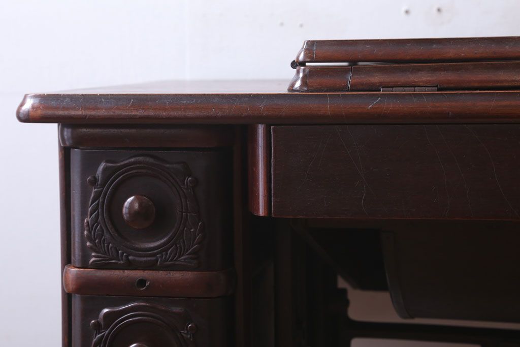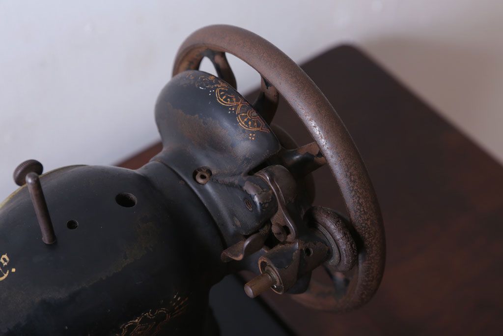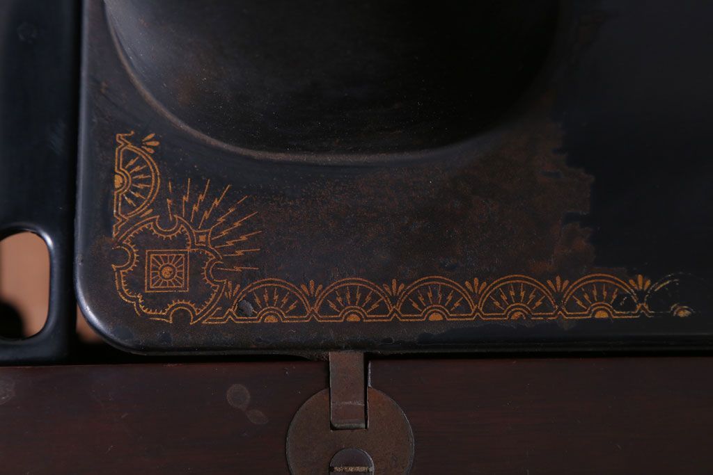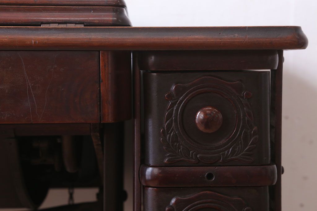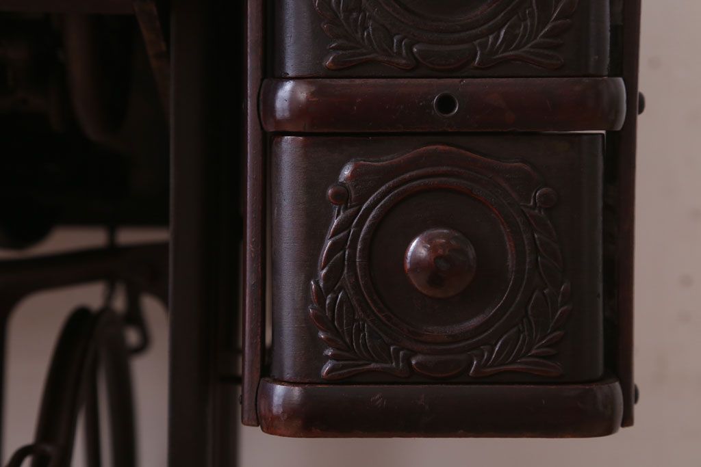 引き出しのデザインやミシン本体のデザインも凝っていて、優雅な一品です。