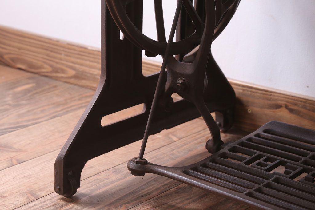 革ベルトが欠損しているため、足踏みとミシンは連動しません。