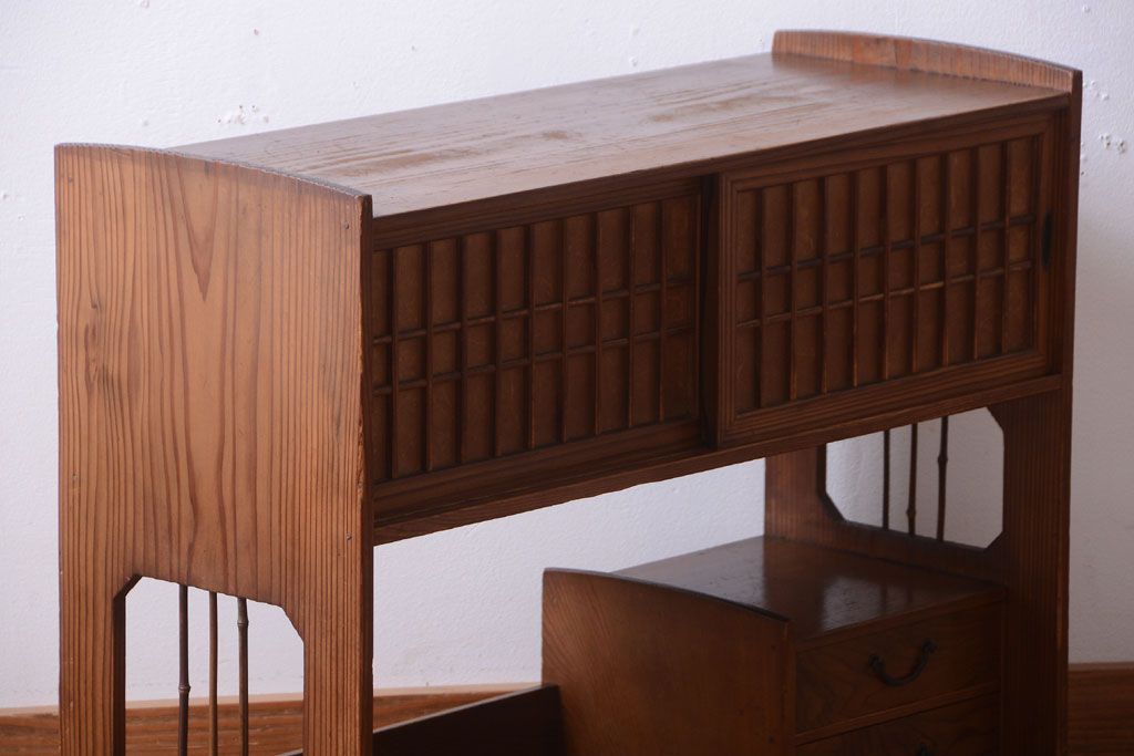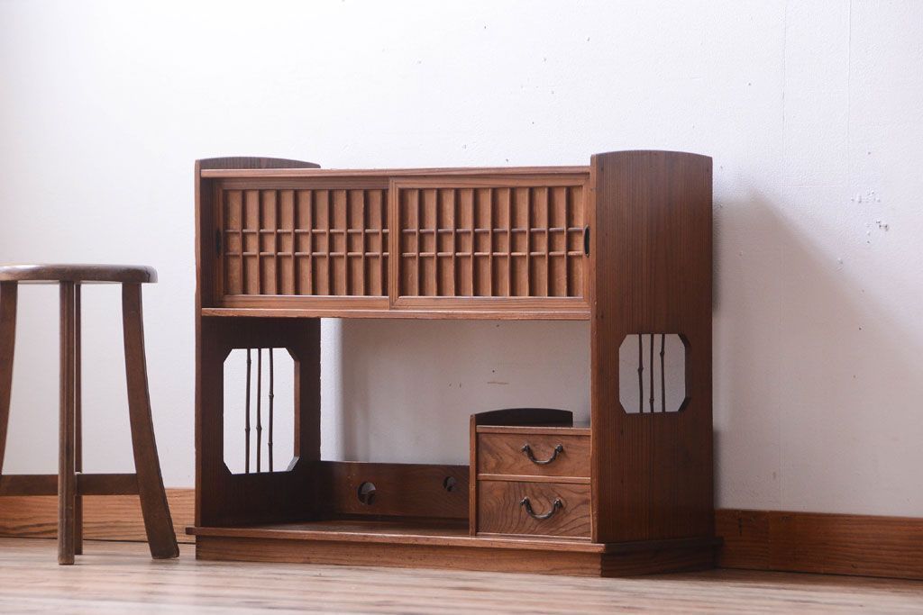 アンティーク家具 古民具・骨董 高級杉材の小ぶりな茶棚(茶箪笥)