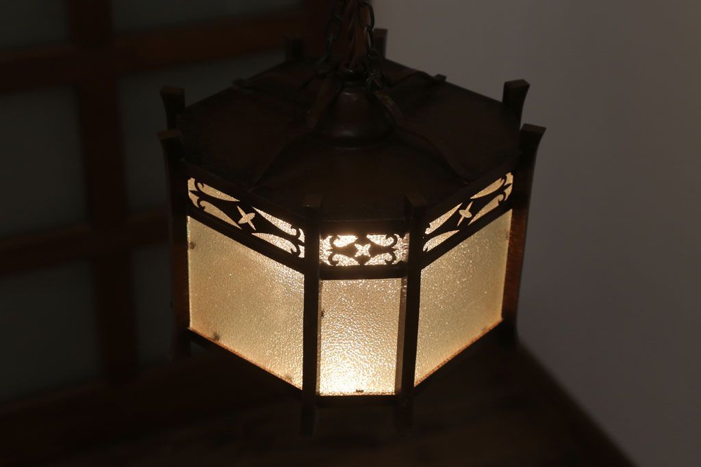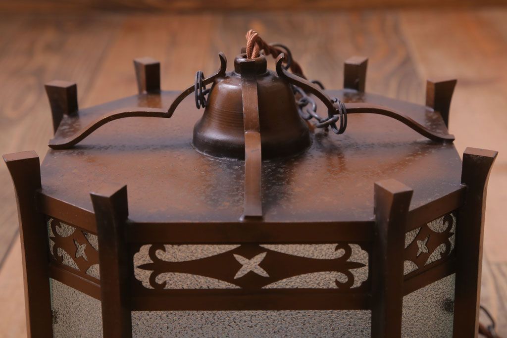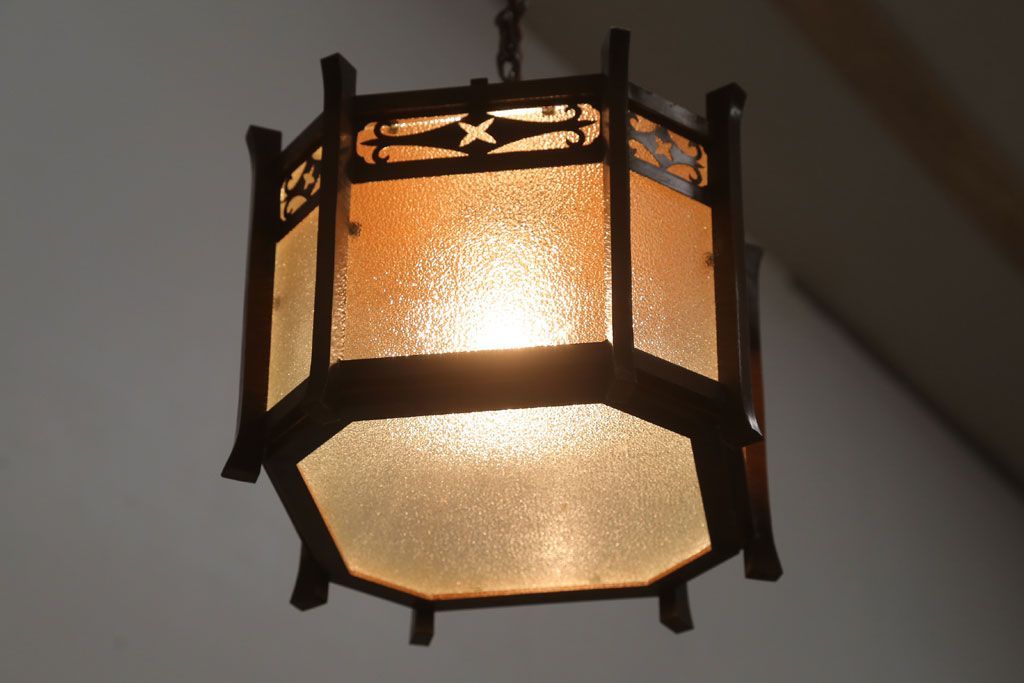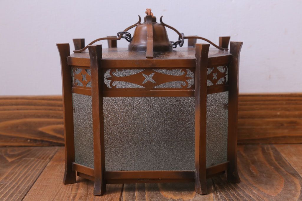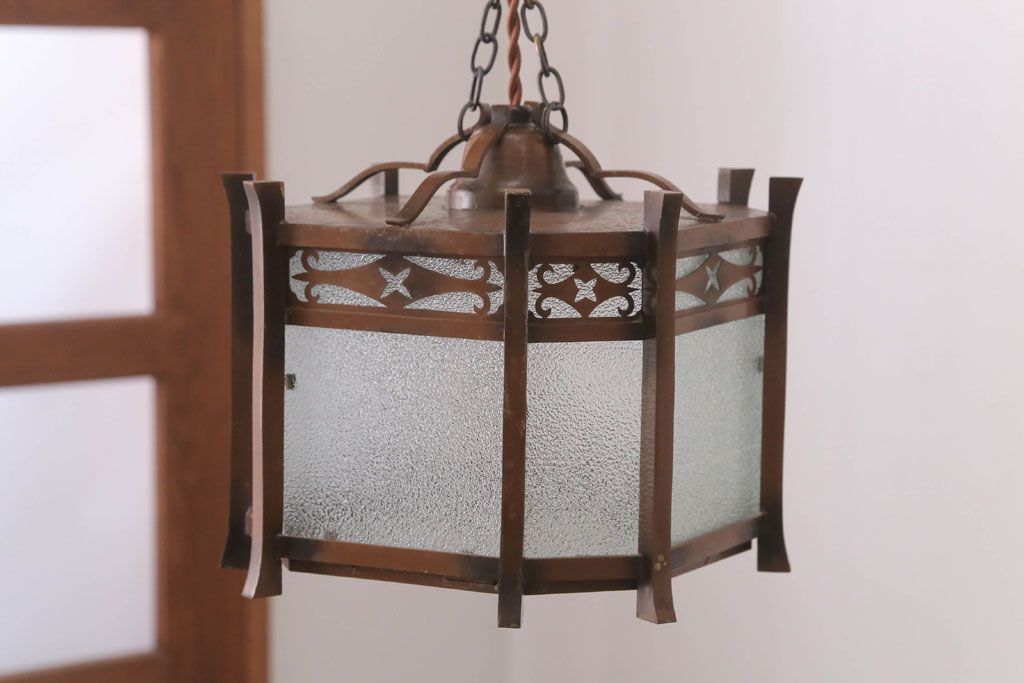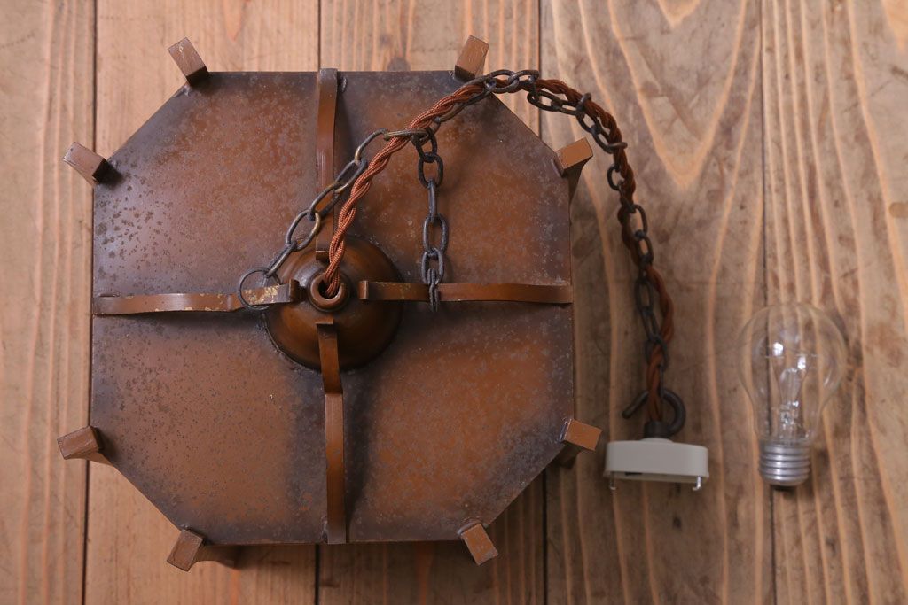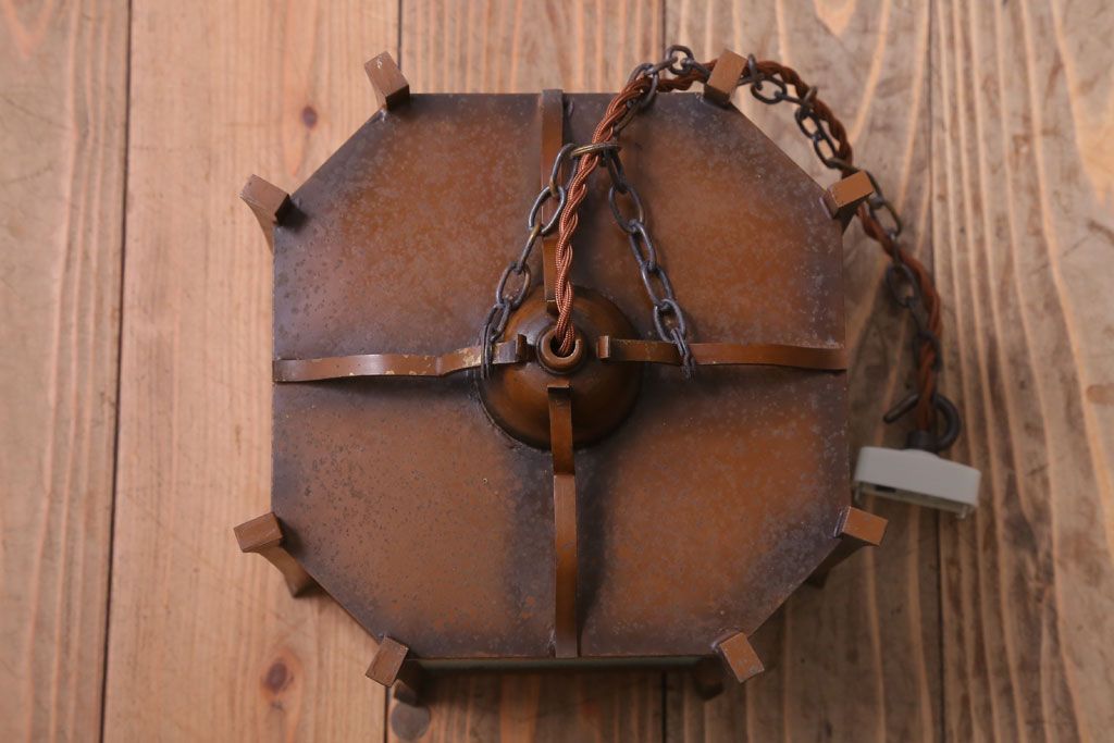 和製アンティーク 真鍮製 八角ガラスシェードの天井照明