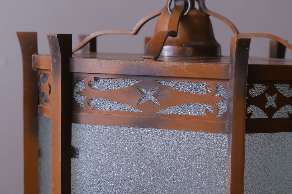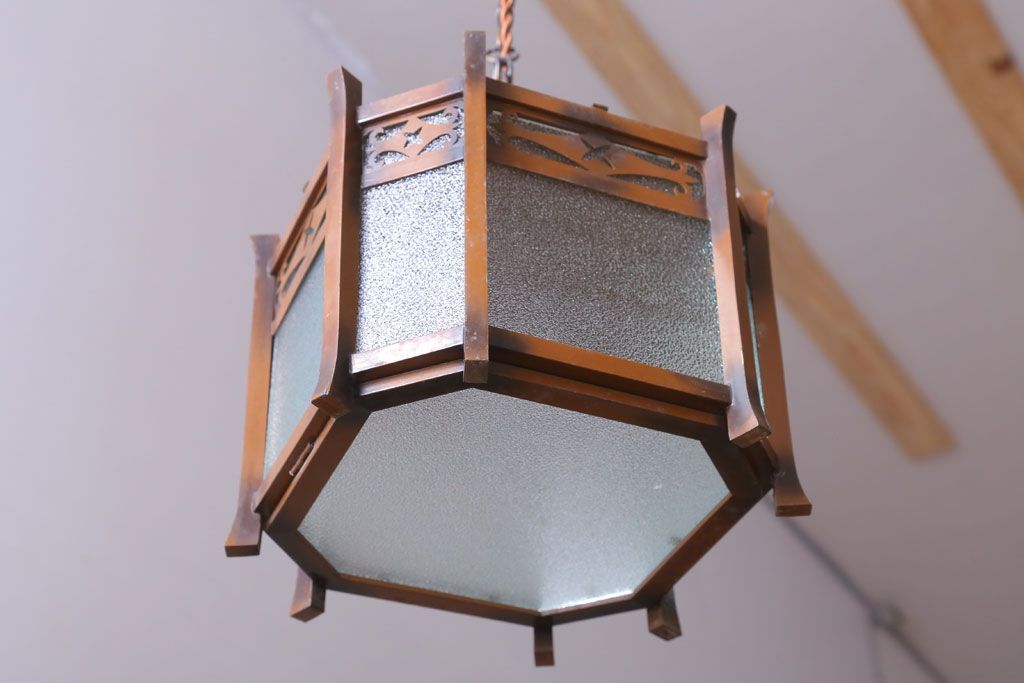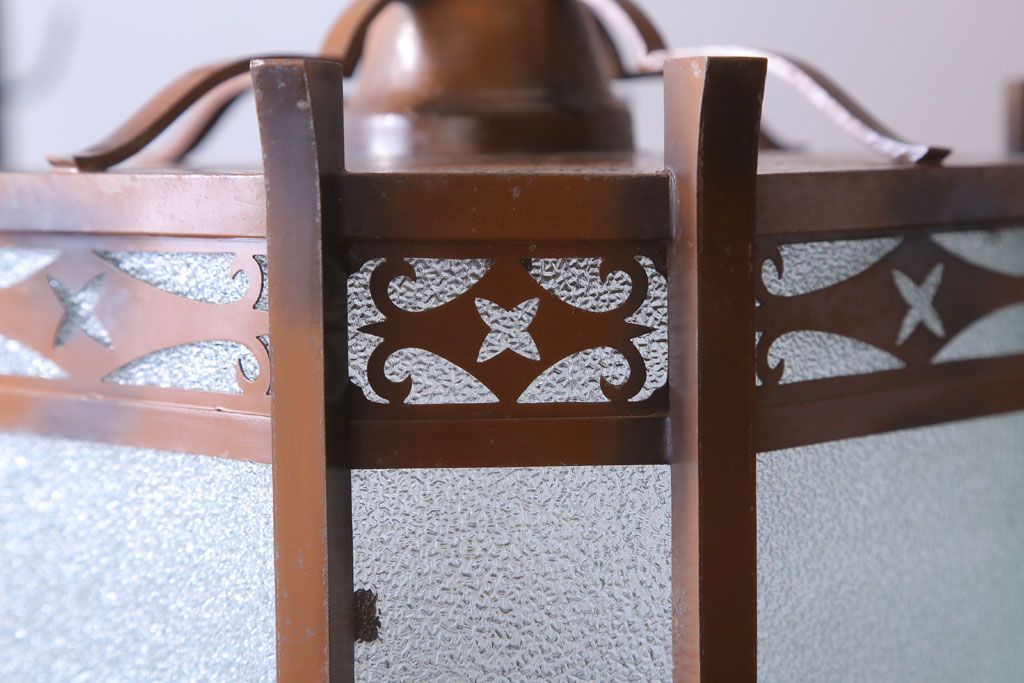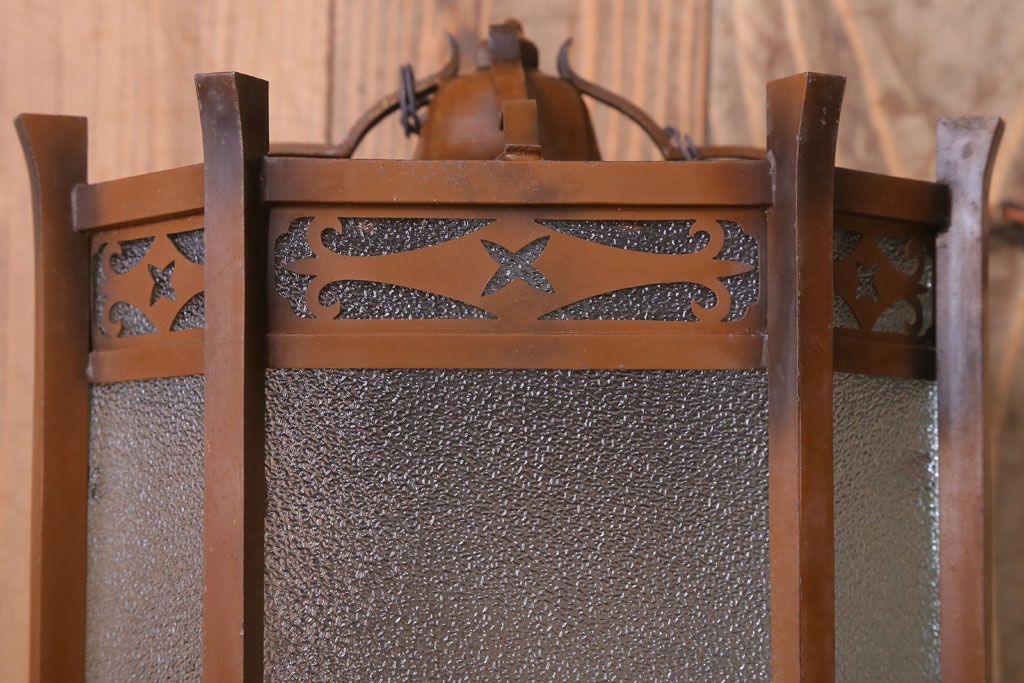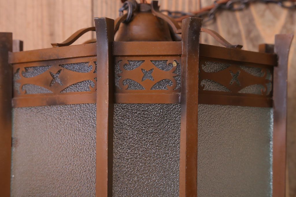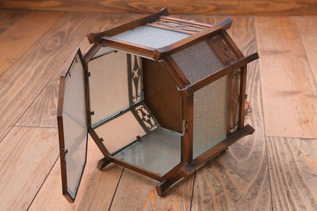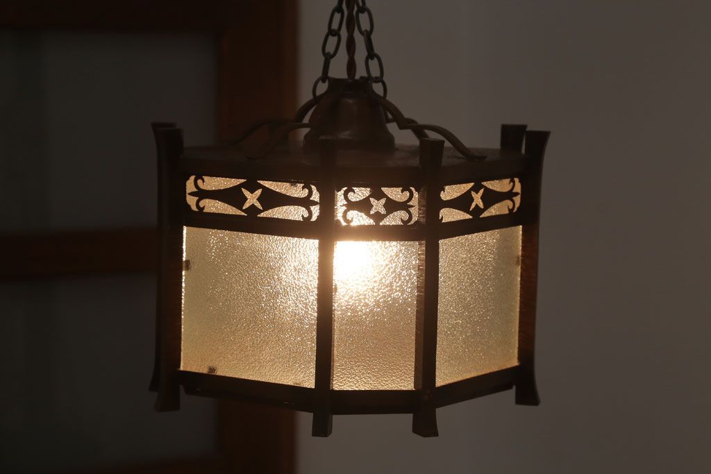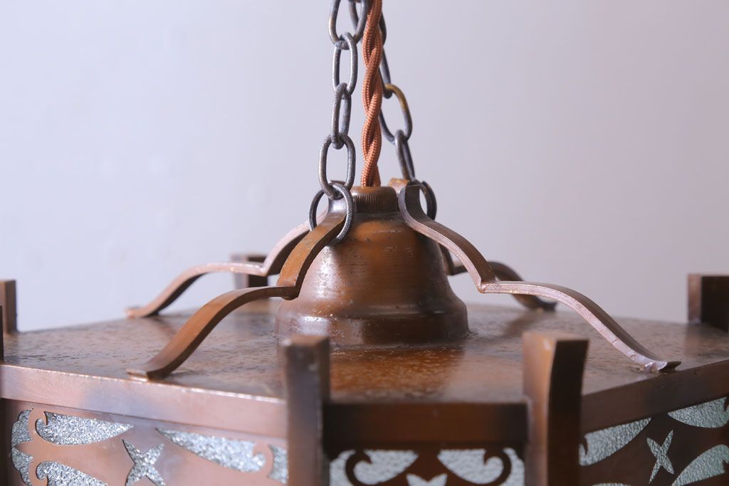 和製アンティーク 真鍮製 八角ガラスシェードの天井照明