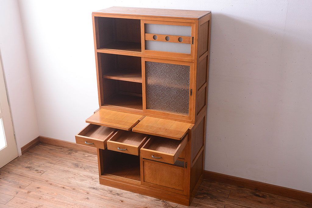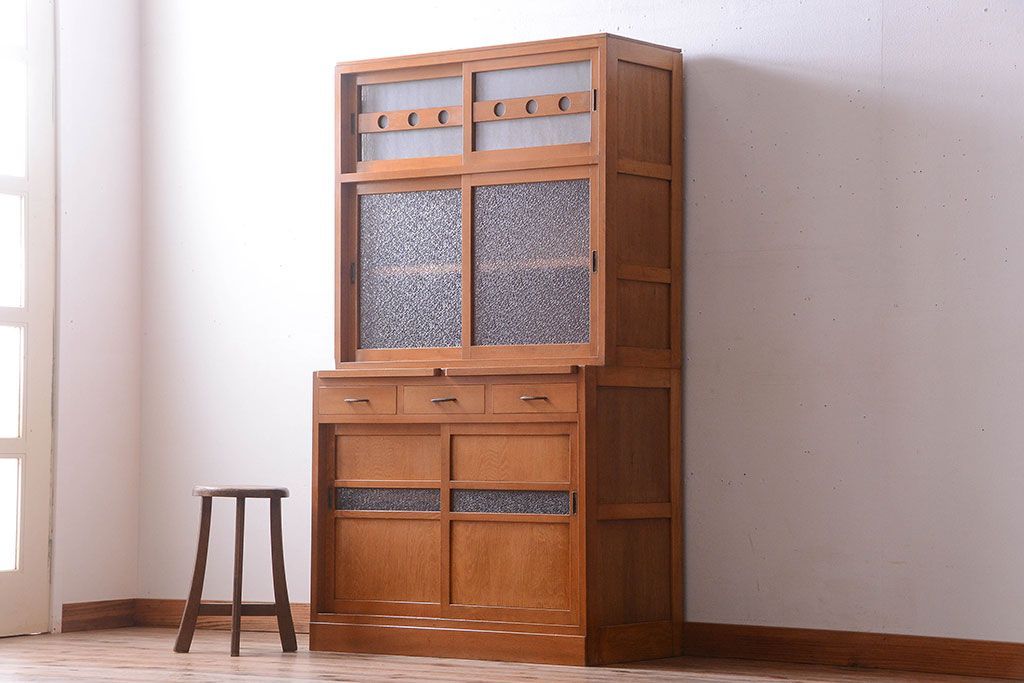 レトロ家具 昭和レトロ プレスガラス入り!上品なカップボード(食器棚)