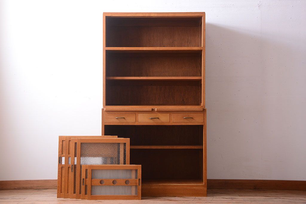 昭和レトロ プレスガラス入り!上品なカップボード(食器棚)です。