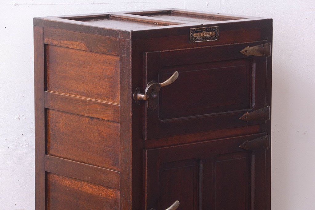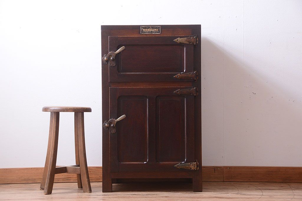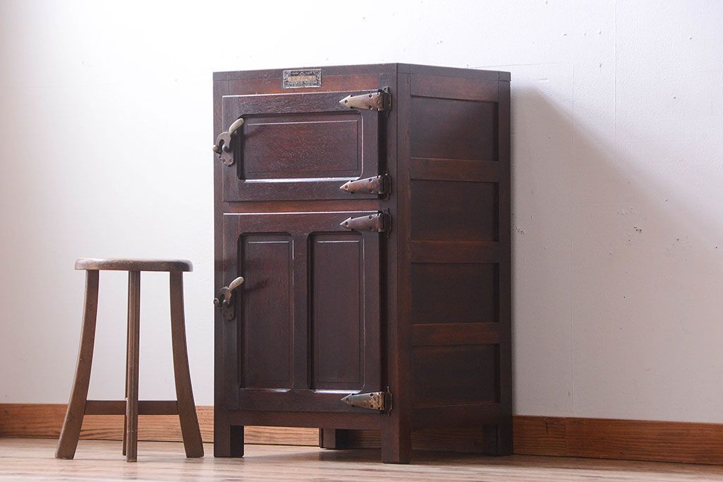 古家具 > レトロ家具 昭和レトロ ナラ材製のアンティーク冷蔵庫(冷蔵箱・氷冷蔵庫)(2)
