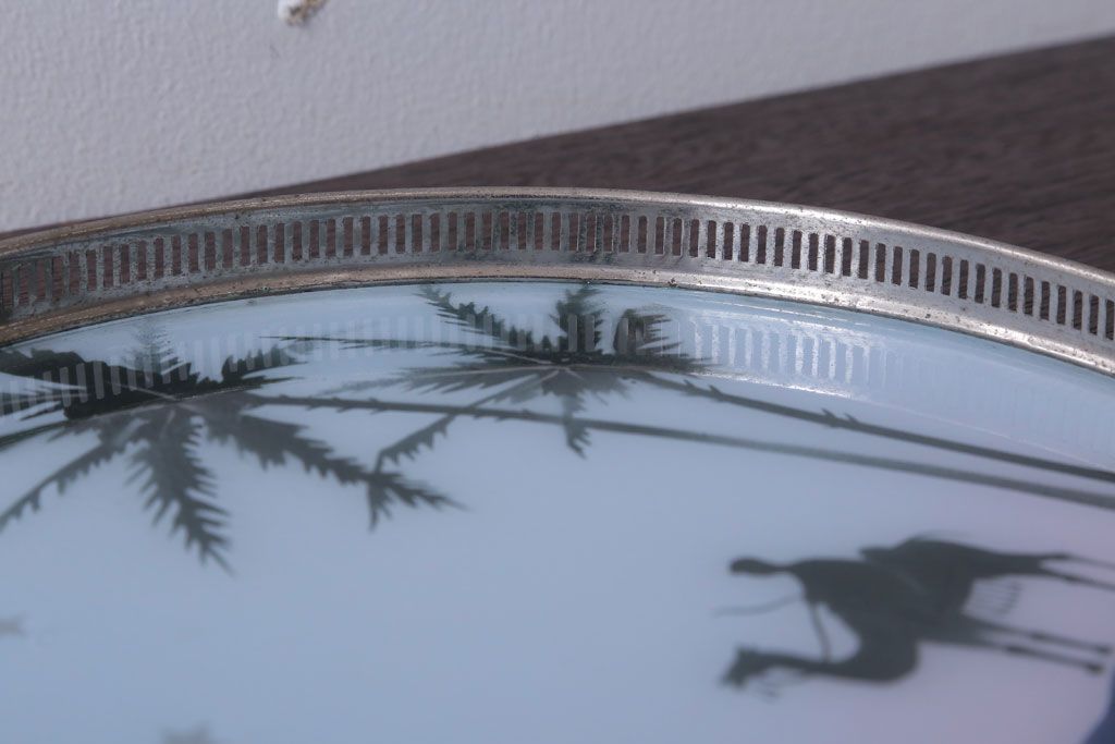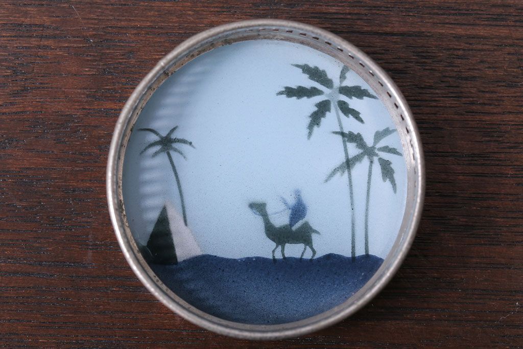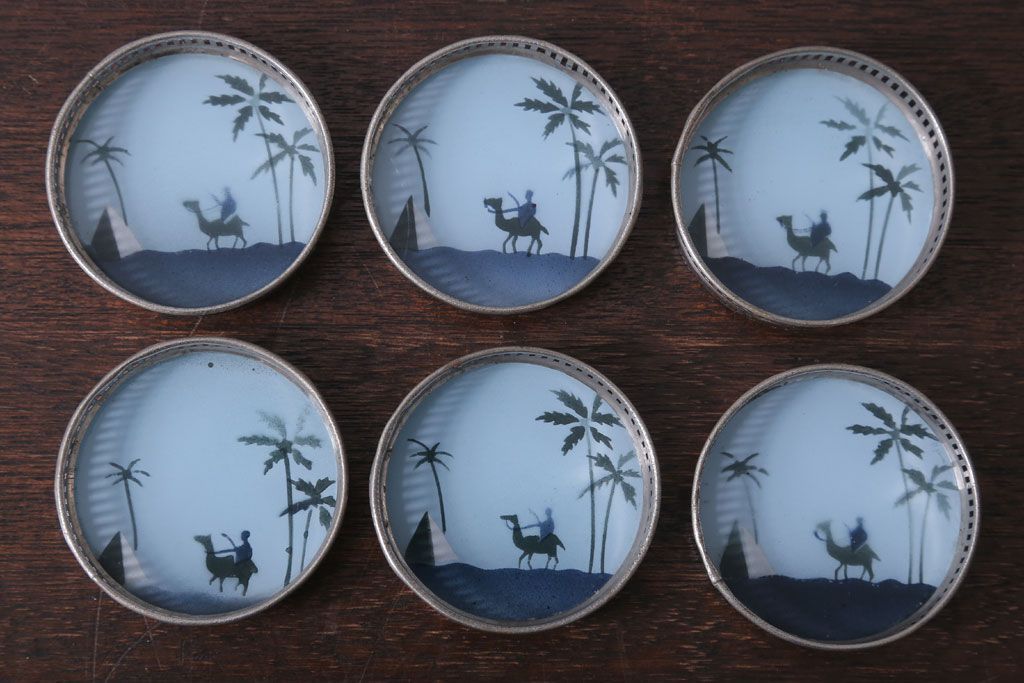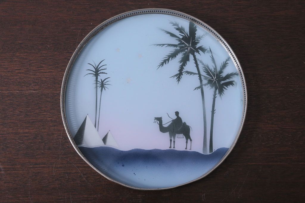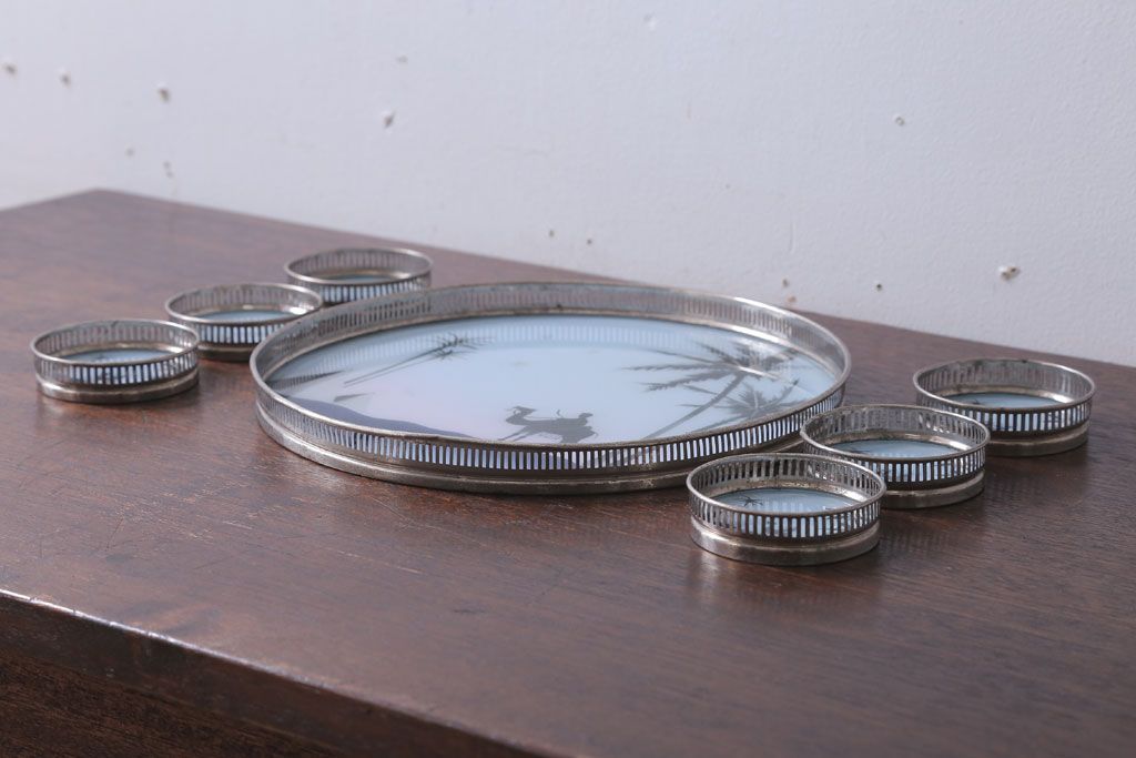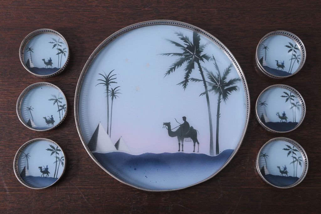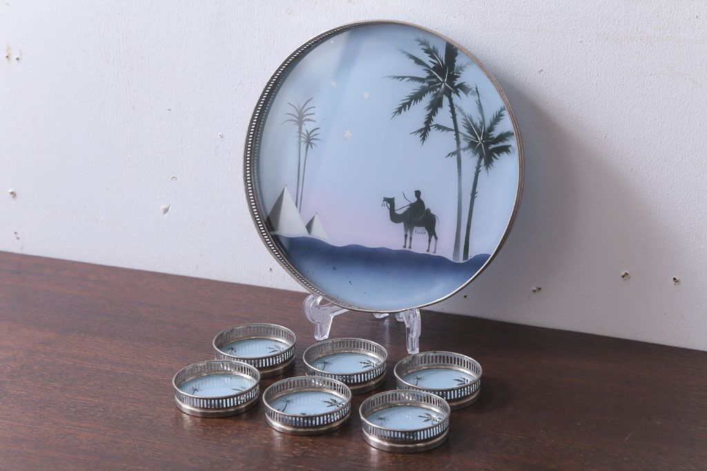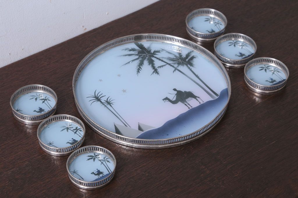 アンティーク雑貨 昭和レトロ 砂漠柄の古いガラストレー・コースターセット