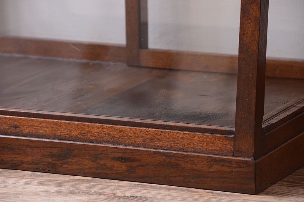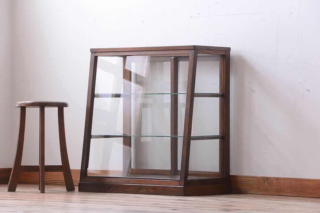 ラフジュ工房> 店舗什器 > レトロ家具 和製アンティーク 古いタモ材のレトロな台形型ガラスケース