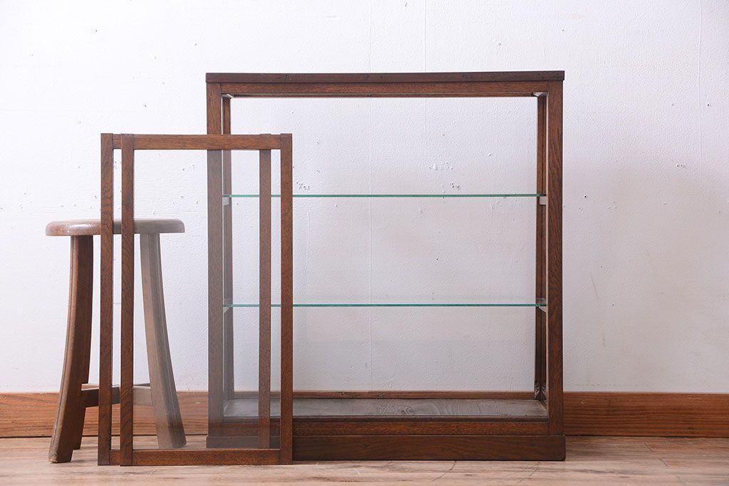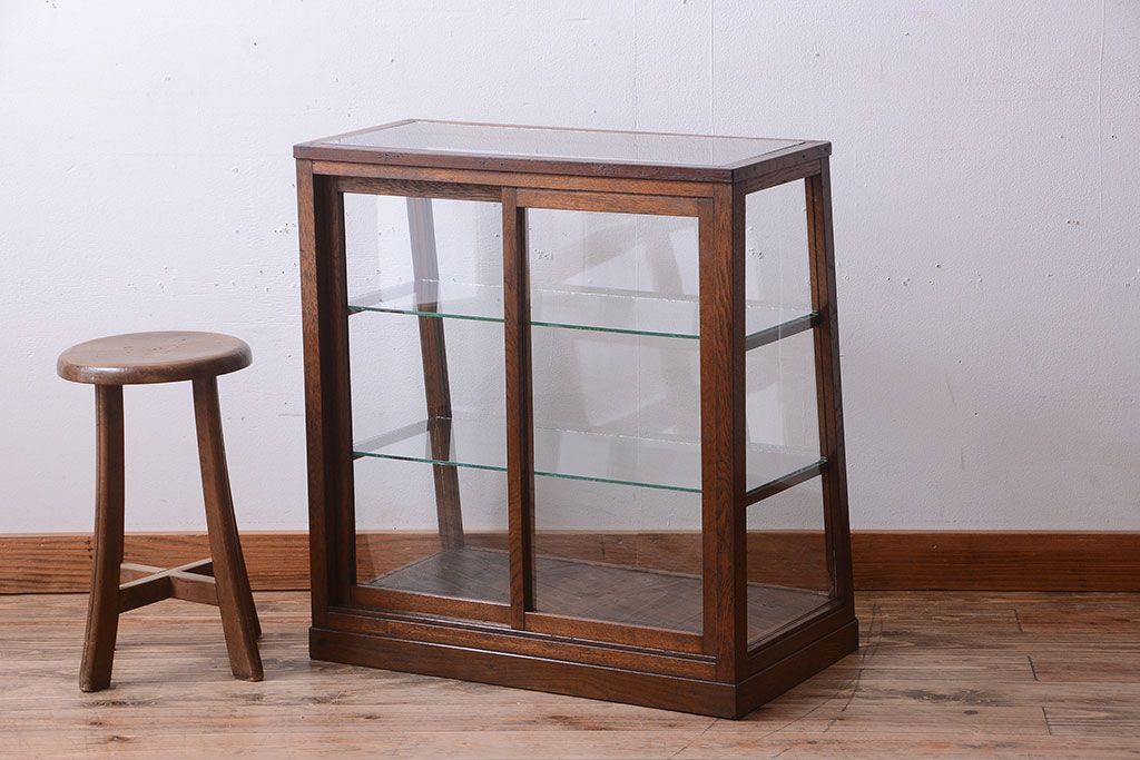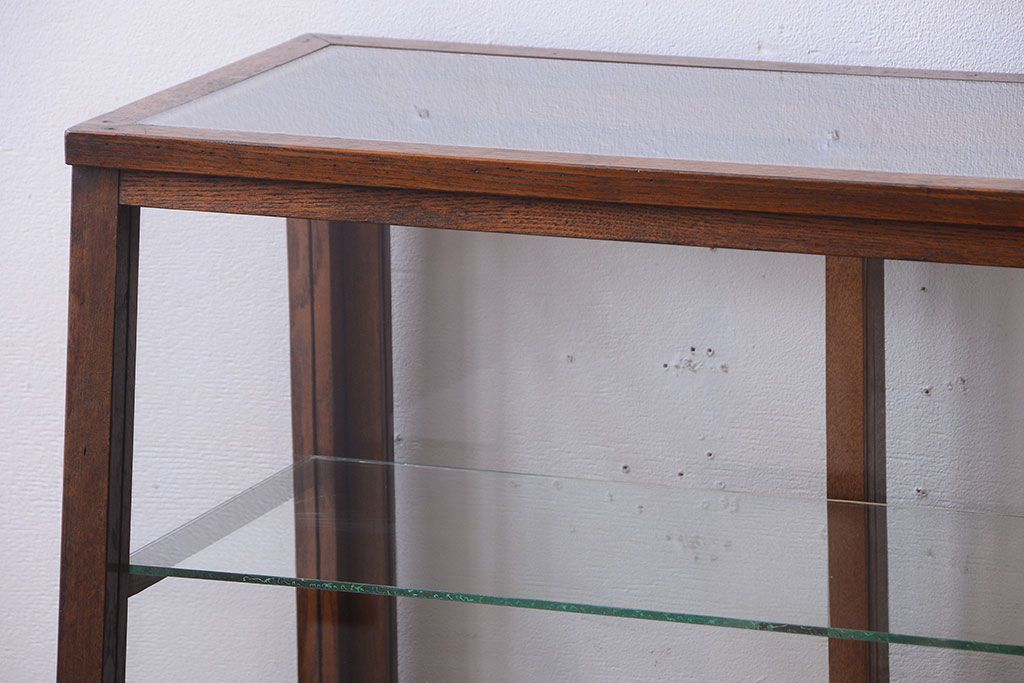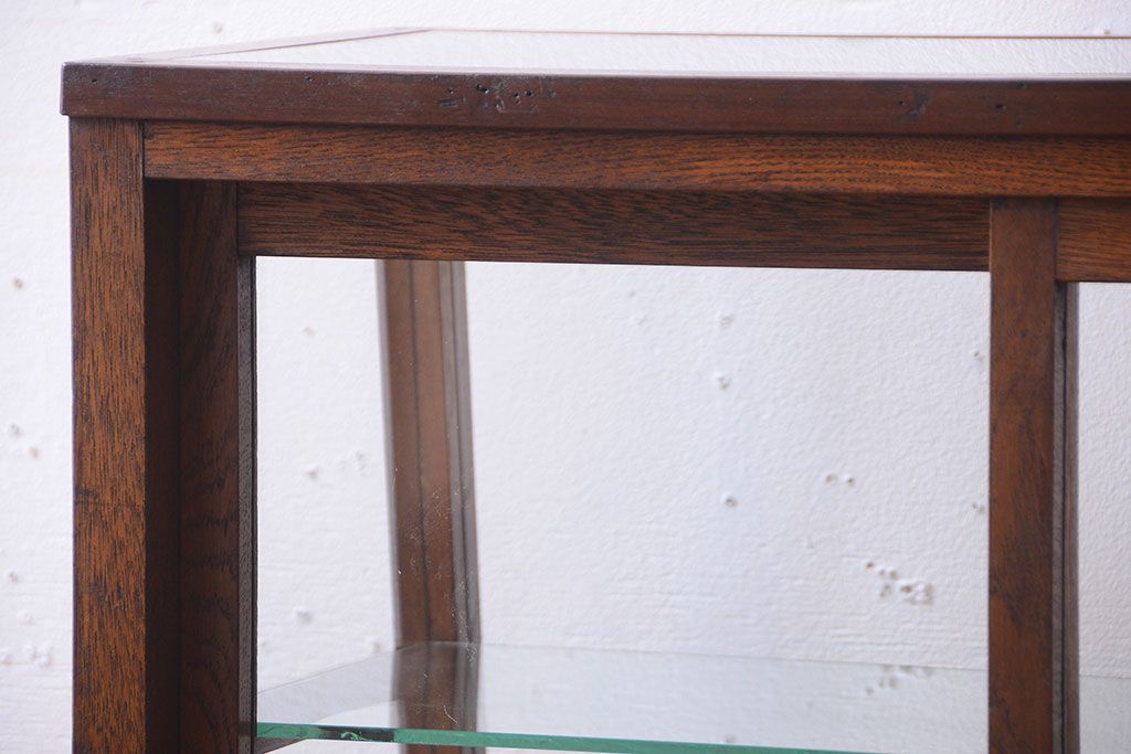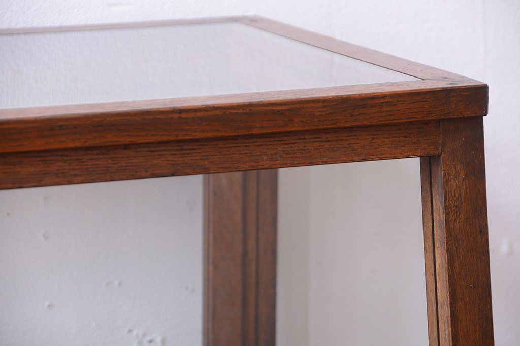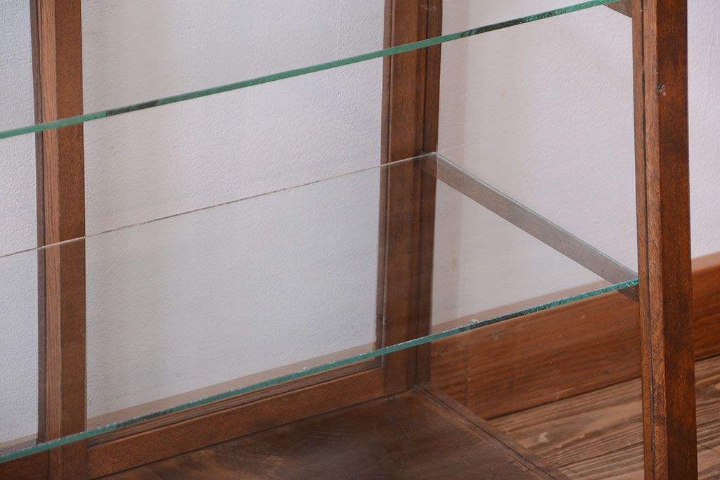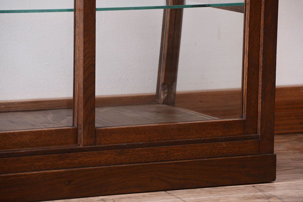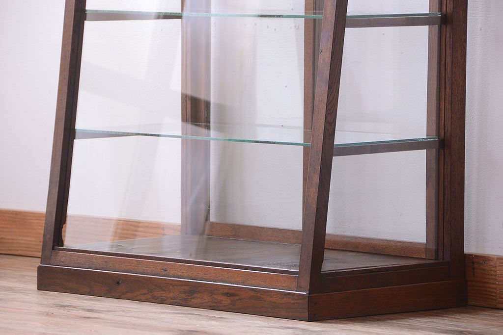 ラフジュ工房> ガラスケース・ショーケース> 台形ショーケース > レトロ家具 和製アンティーク 古いタモ材のレトロな台形型ガラスケース