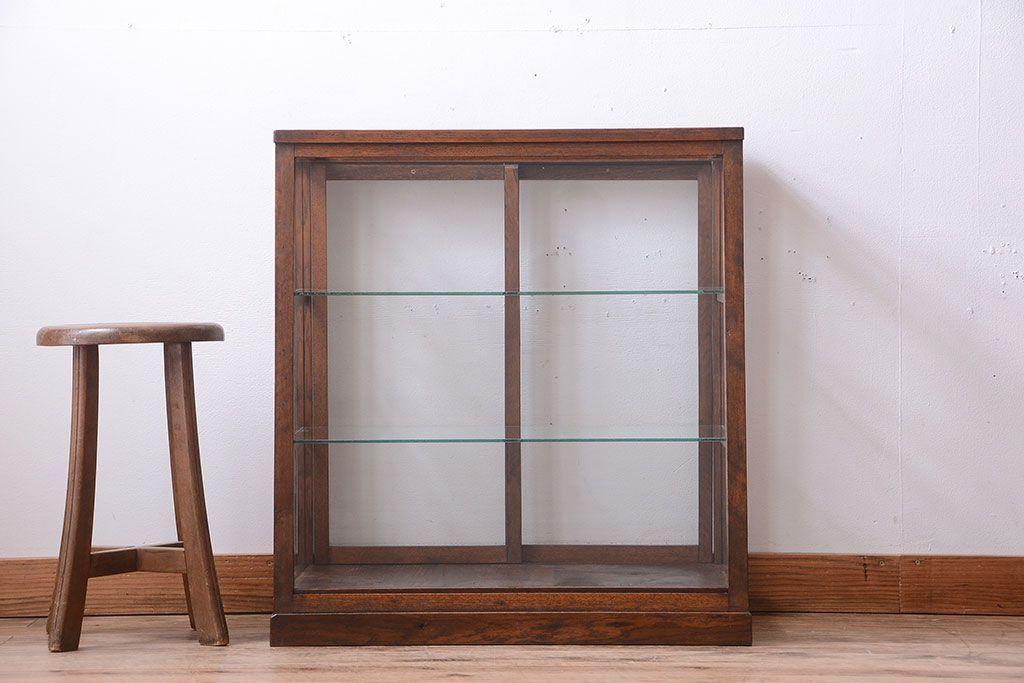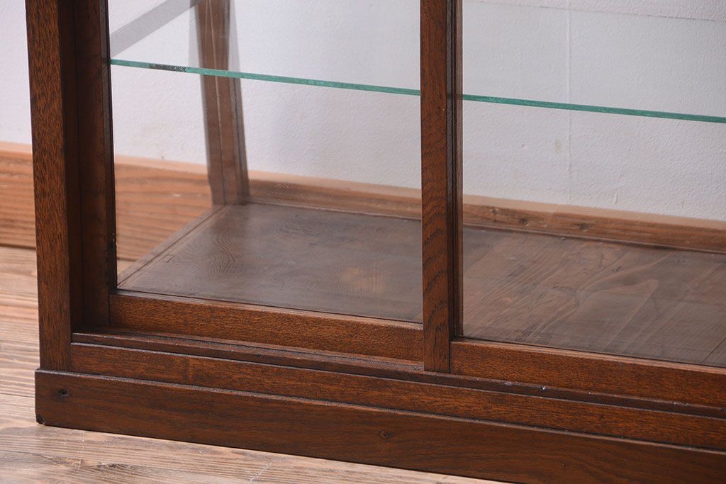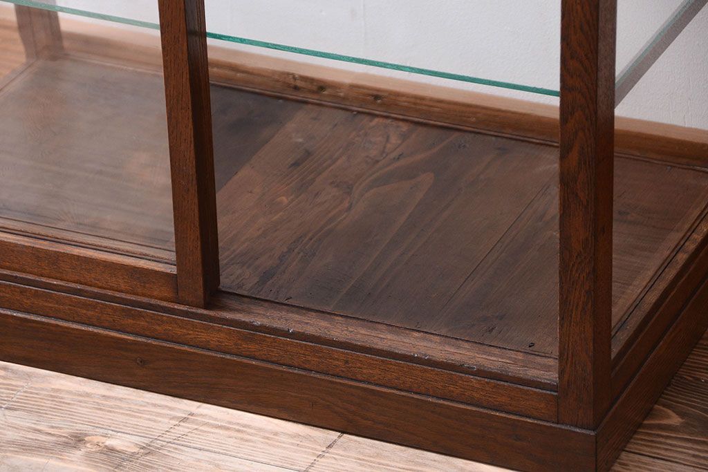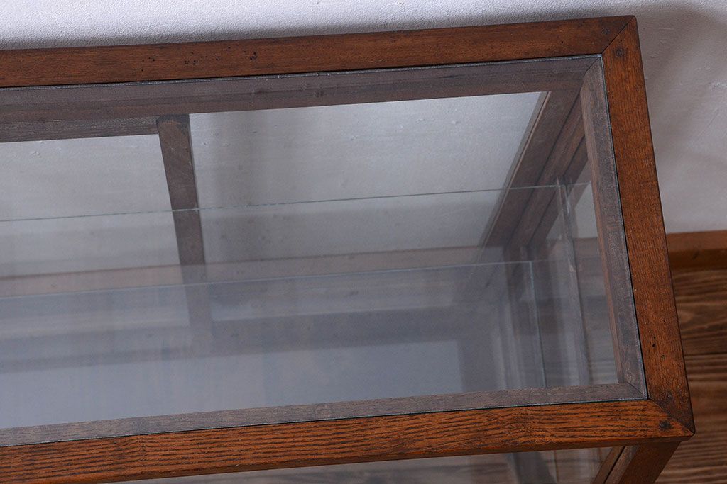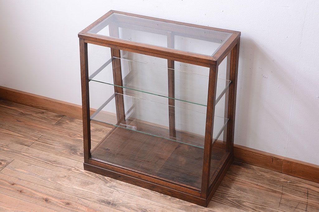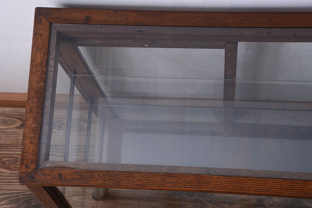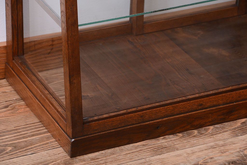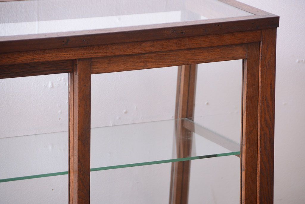 ラフジュ工房> ガラスケース・ショーケース> 台形ショーケース > レトロ家具 和製アンティーク 古いタモ材のレトロな台形型ガラスケース