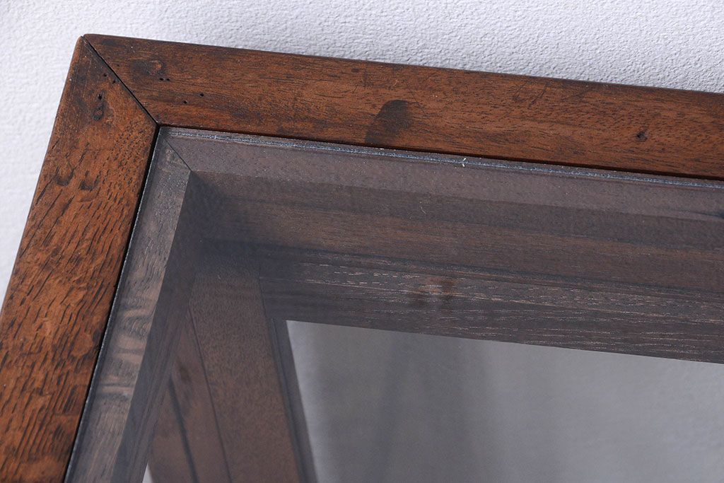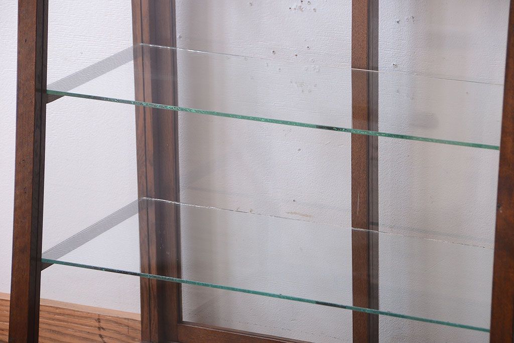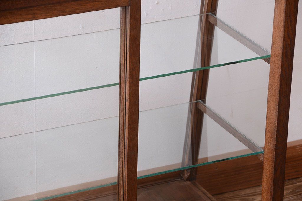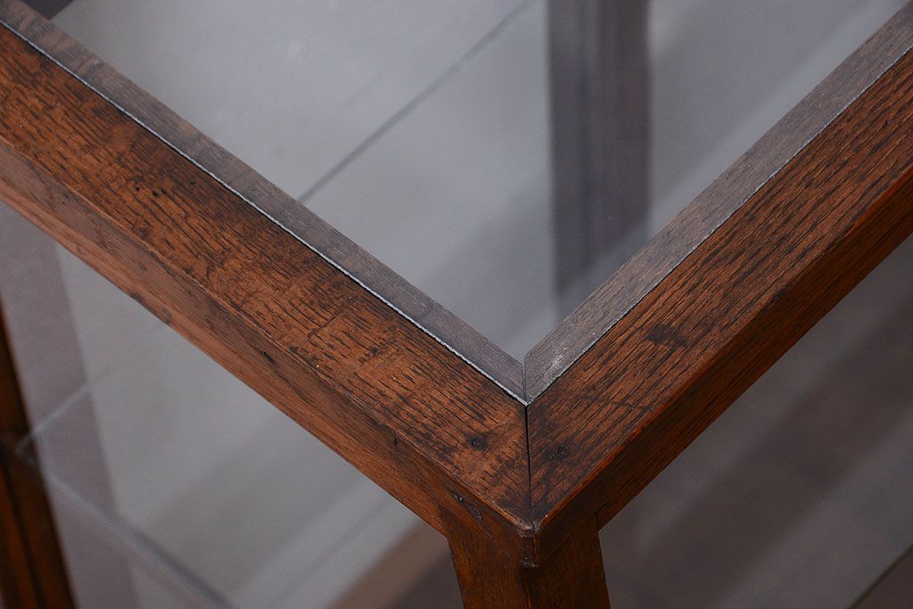 ラフジュ工房> ガラスケース・ショーケース > レトロ家具 和製アンティーク 古いタモ材のレトロな台形型ガラスケース