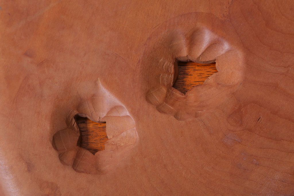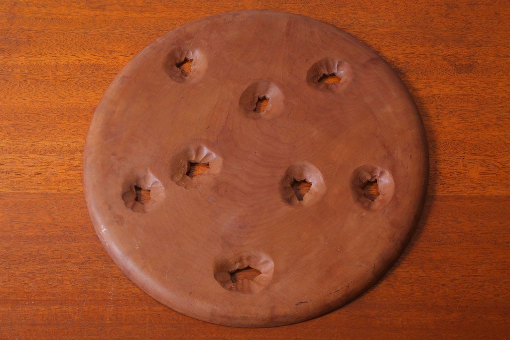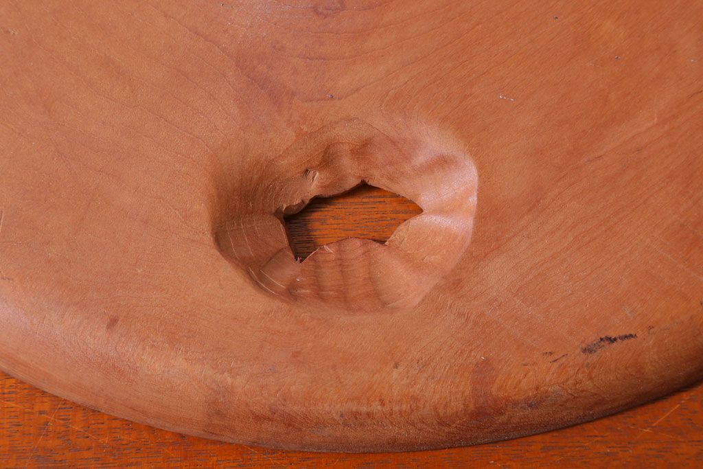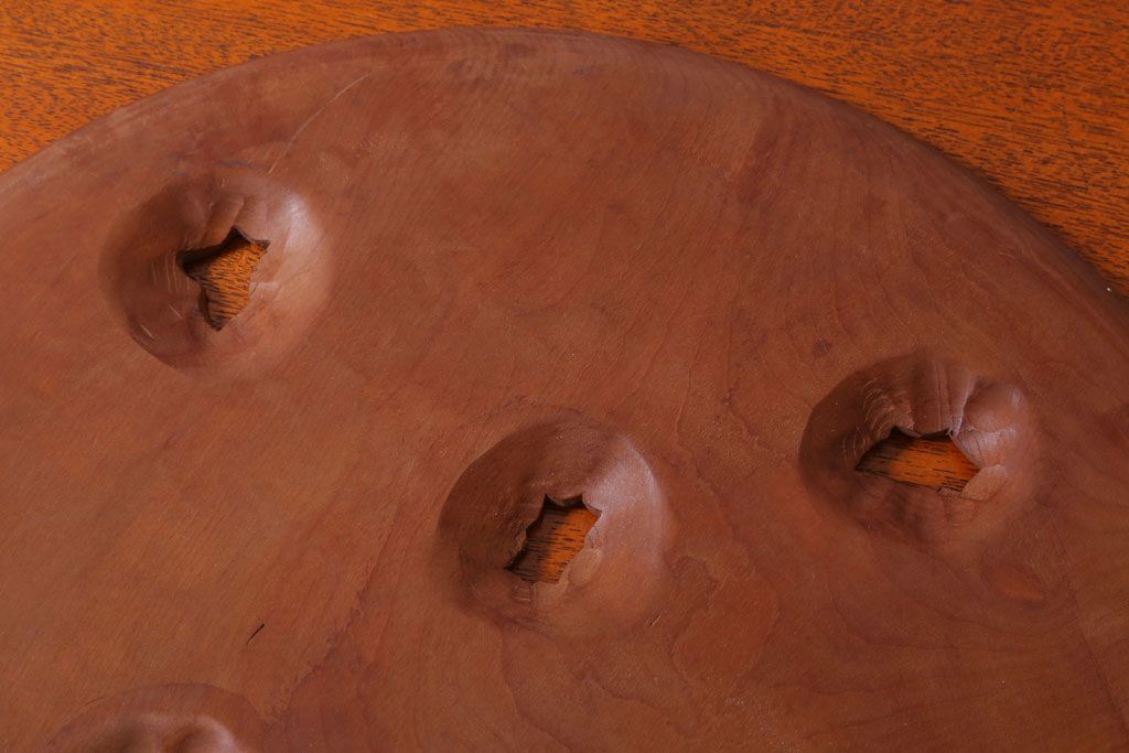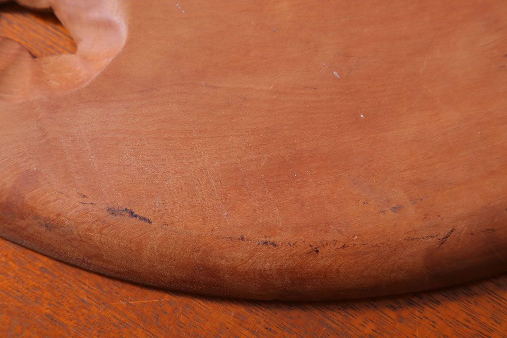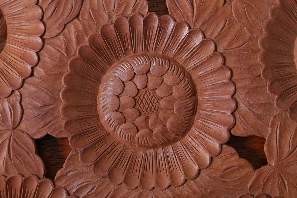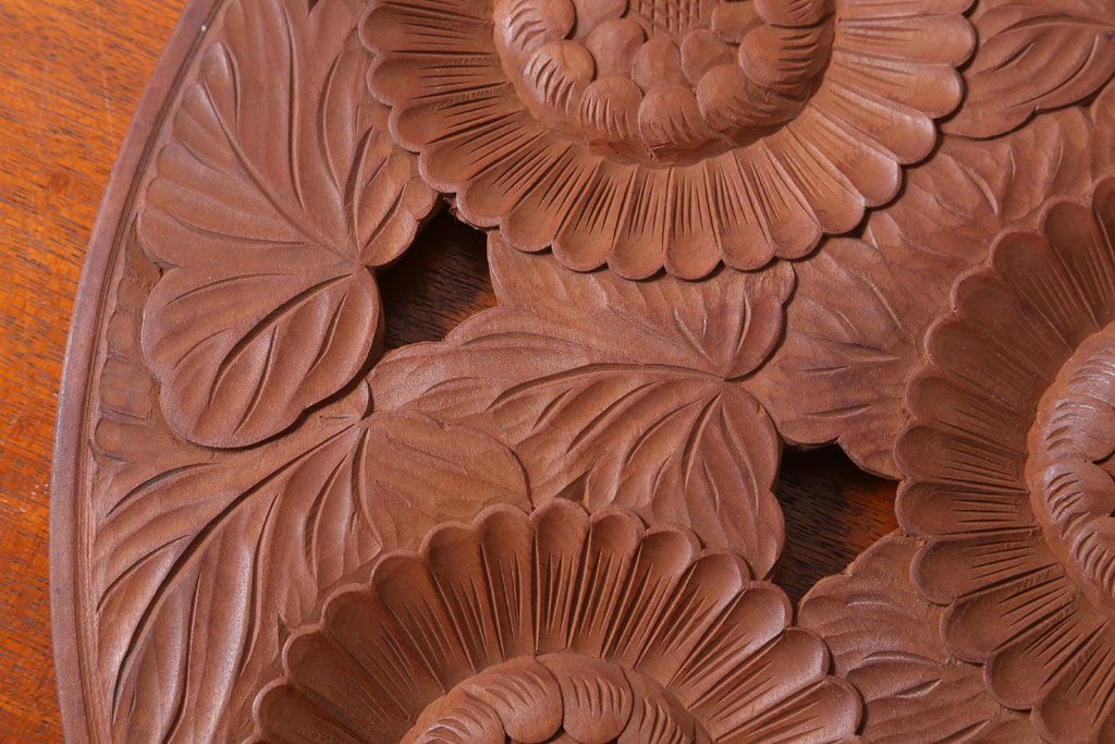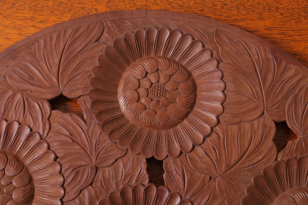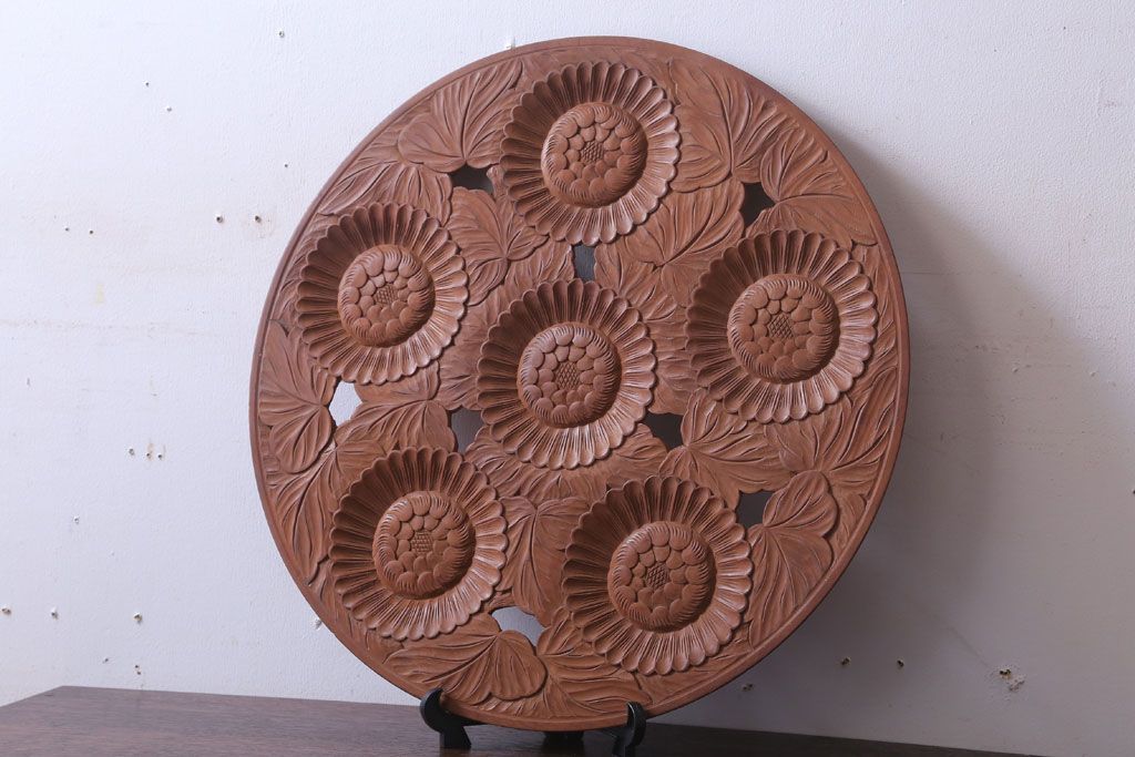 ラフジュ工房> 民芸家具 > アンティーク雑貨 和製アンティーク ひまわり柄の古い木彫りプレート(盆)(軽井沢彫・日光彫)