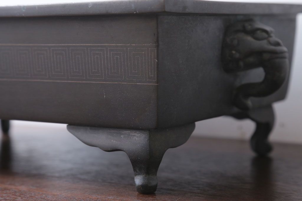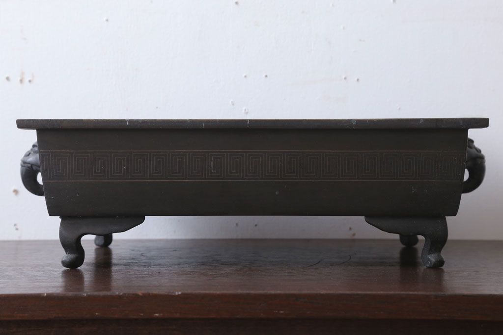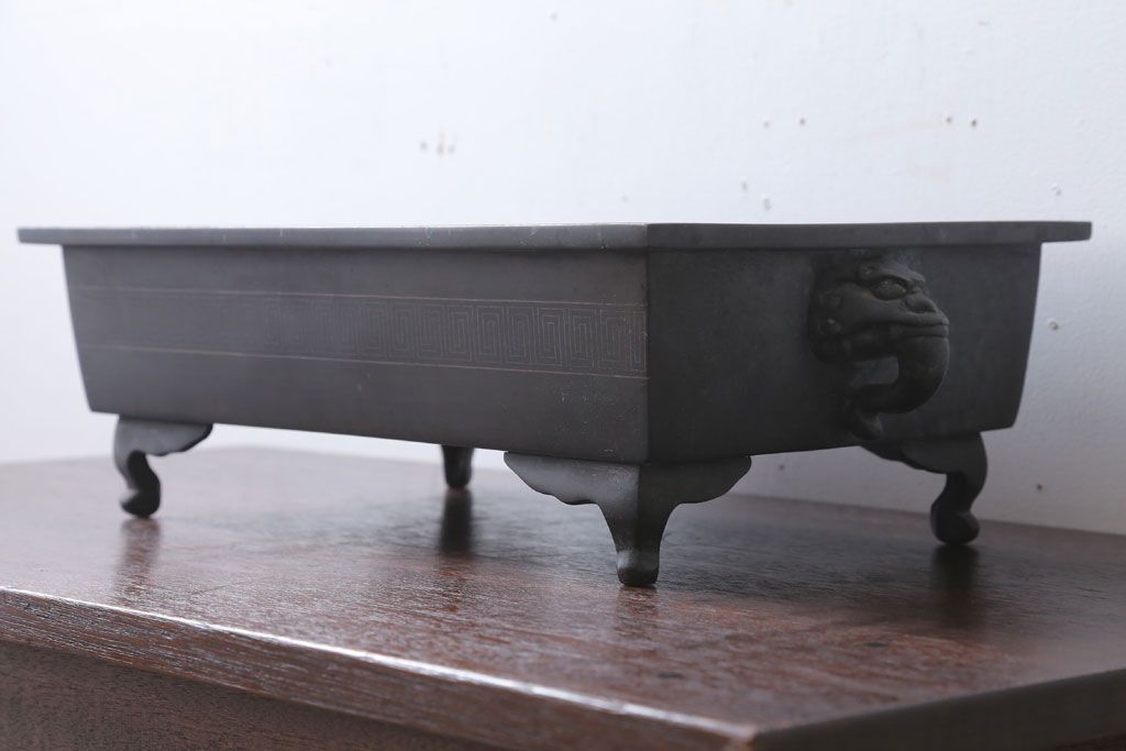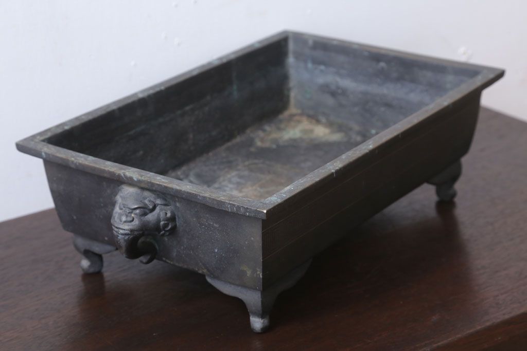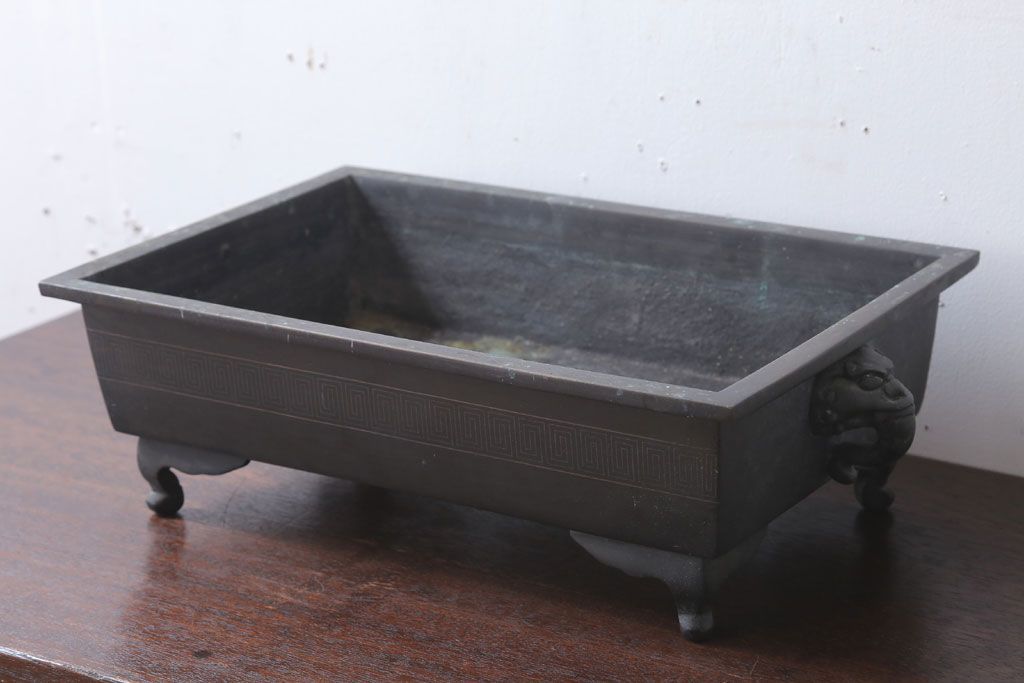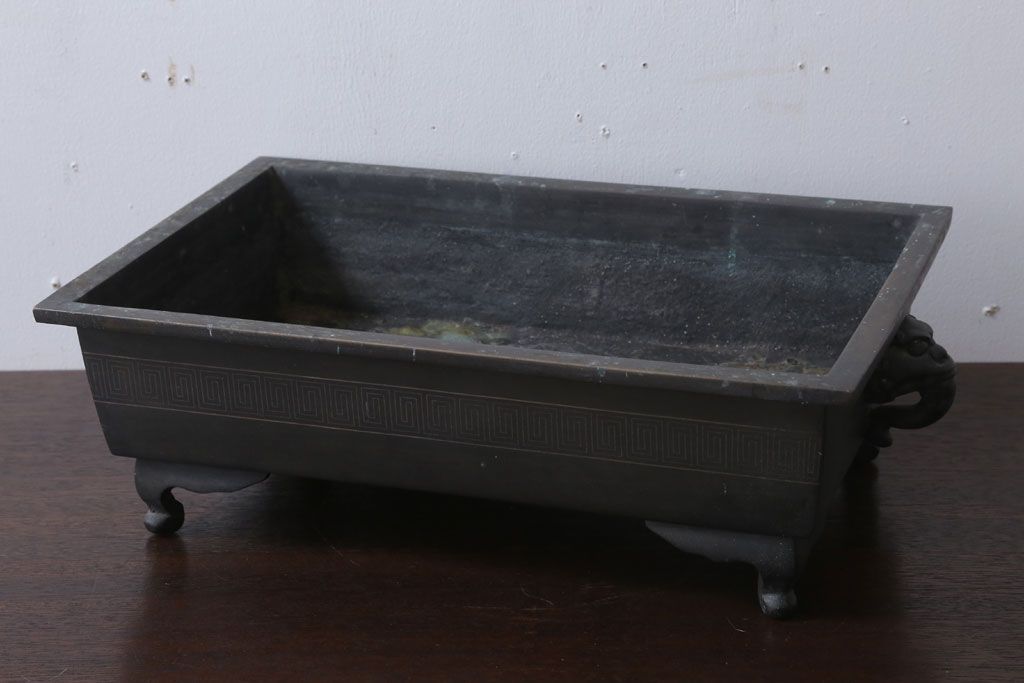 アンティーク雑貨 古民具・骨董 銅(真鍮)製の古い象耳水盤(水盆)