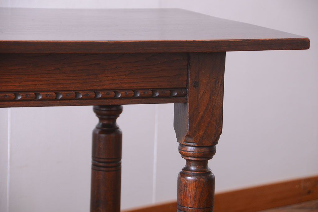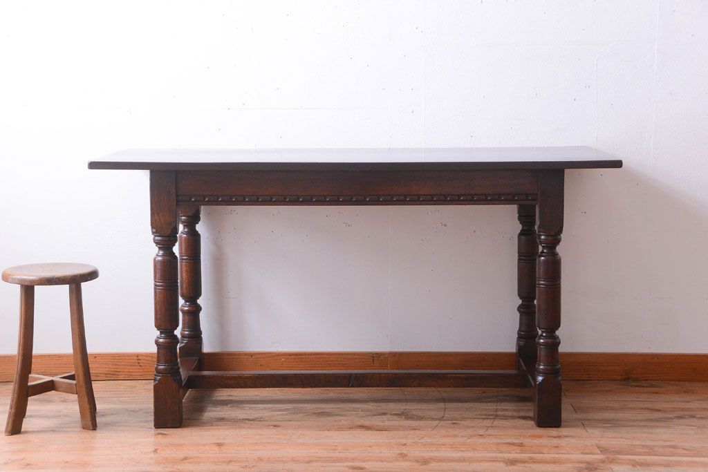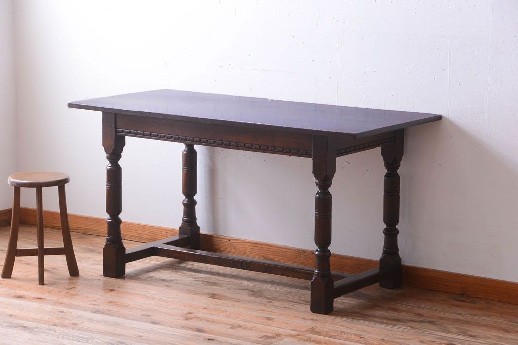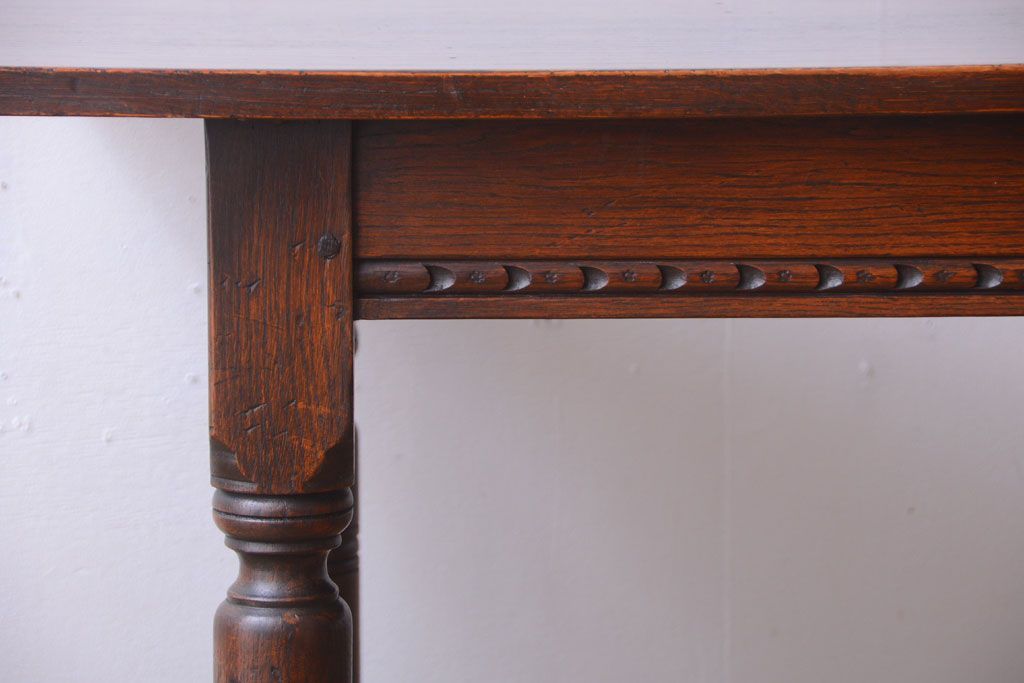 ラフジュ工房> テーブル> カウンターテーブル > ヴィンテージ家具 イギリスビンテージ オーク材製!重厚なダイニングテーブル
