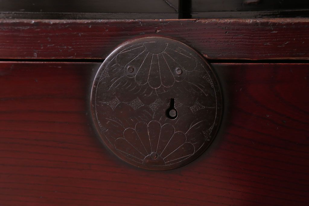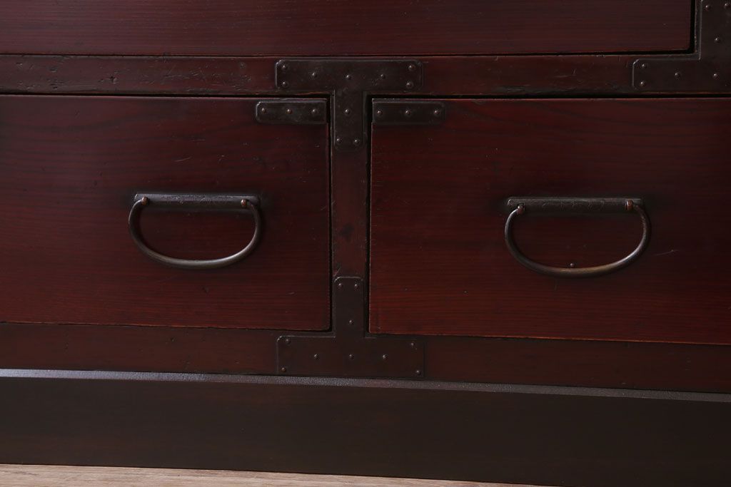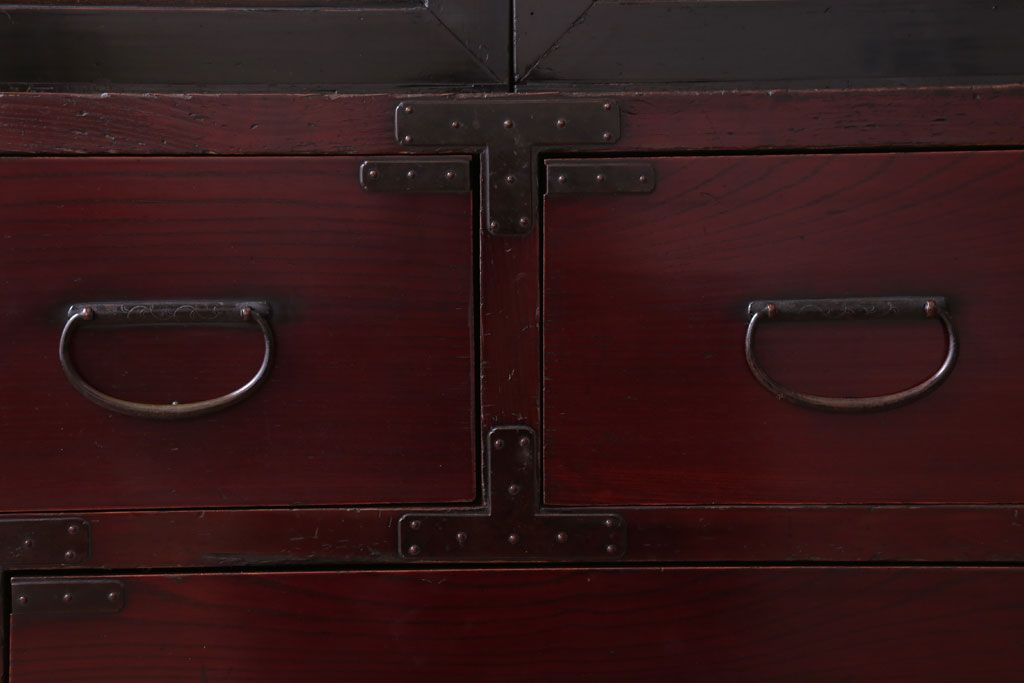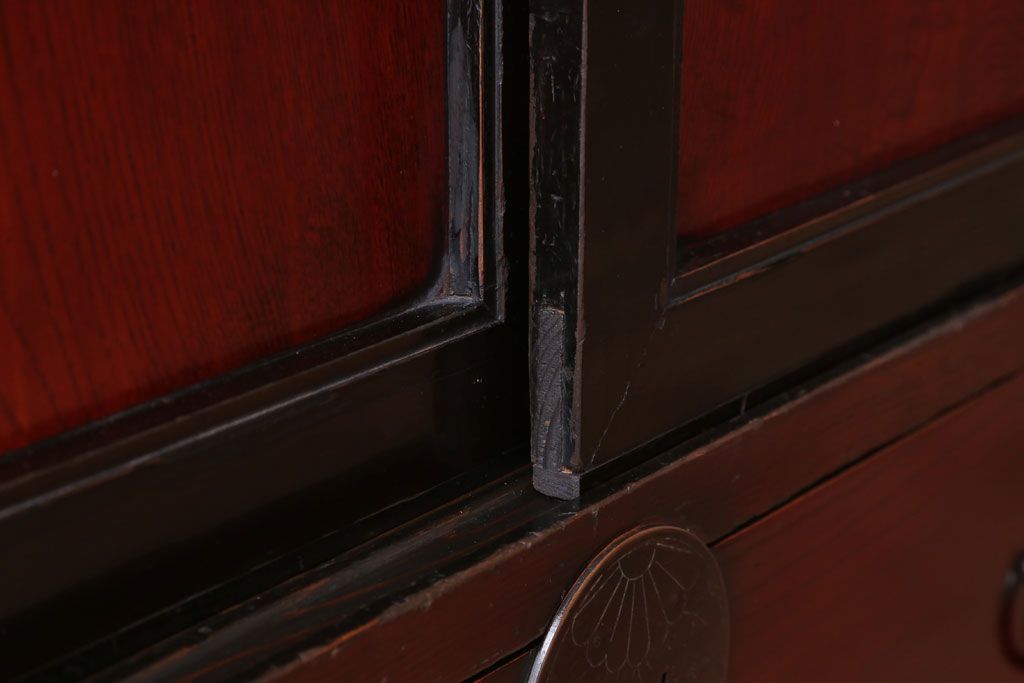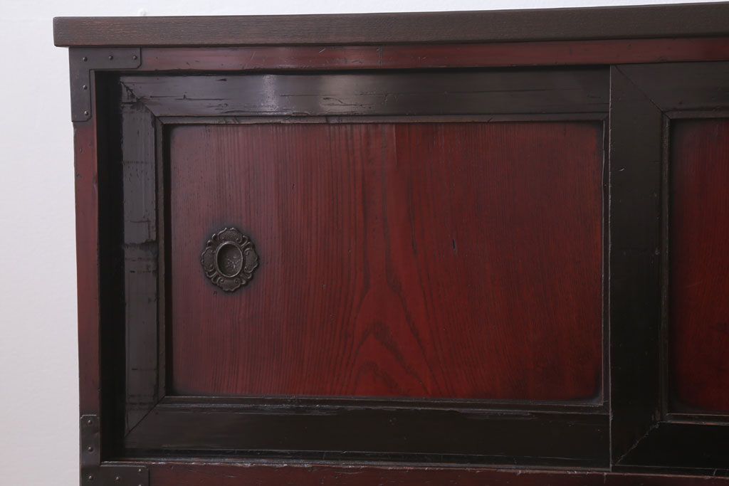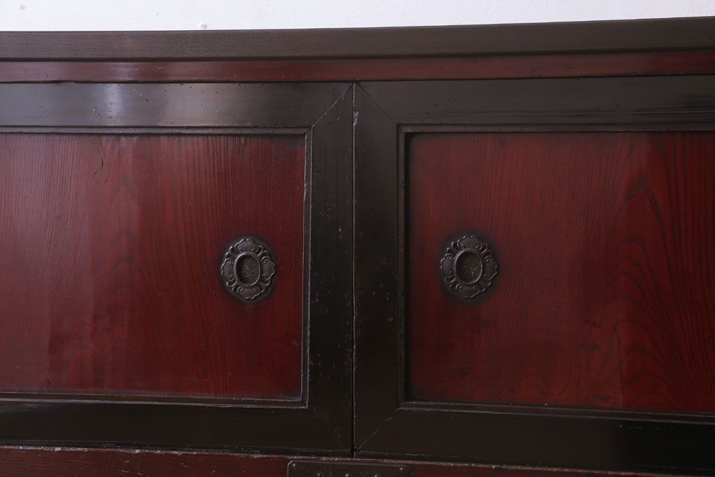 アンティーク家具 古民具・骨董 明治〜大正 前面欅材の漆塗り大川箪笥(水屋箪笥)