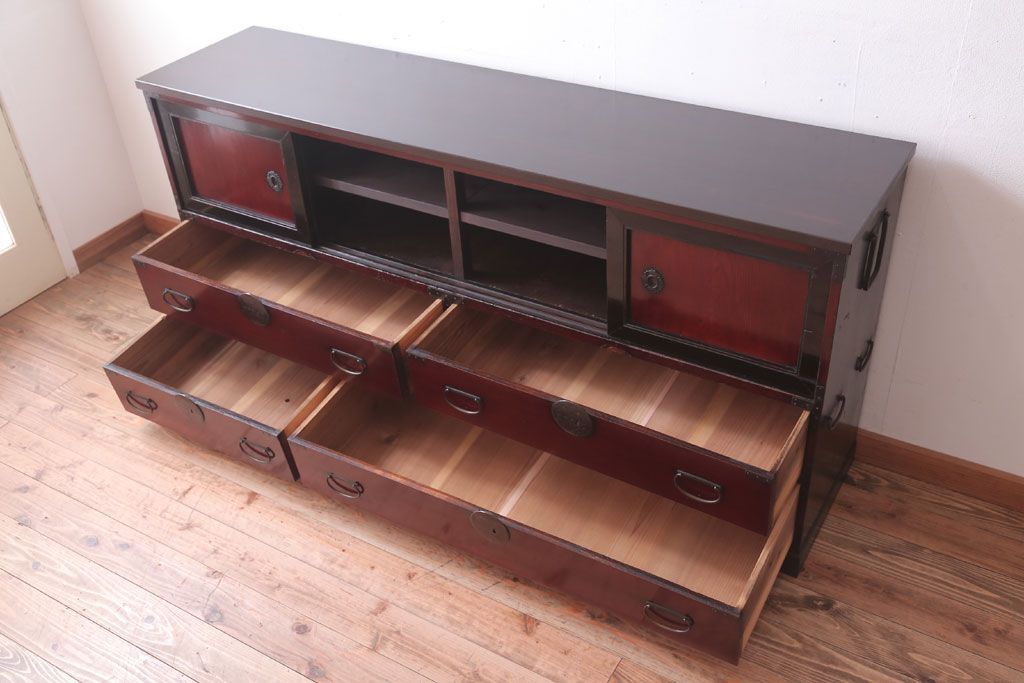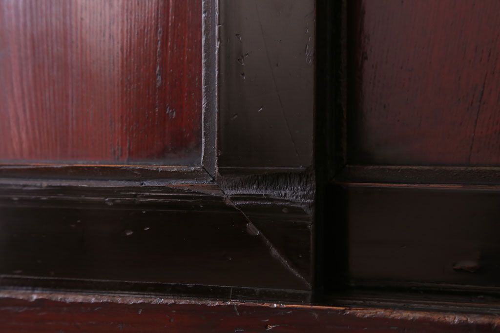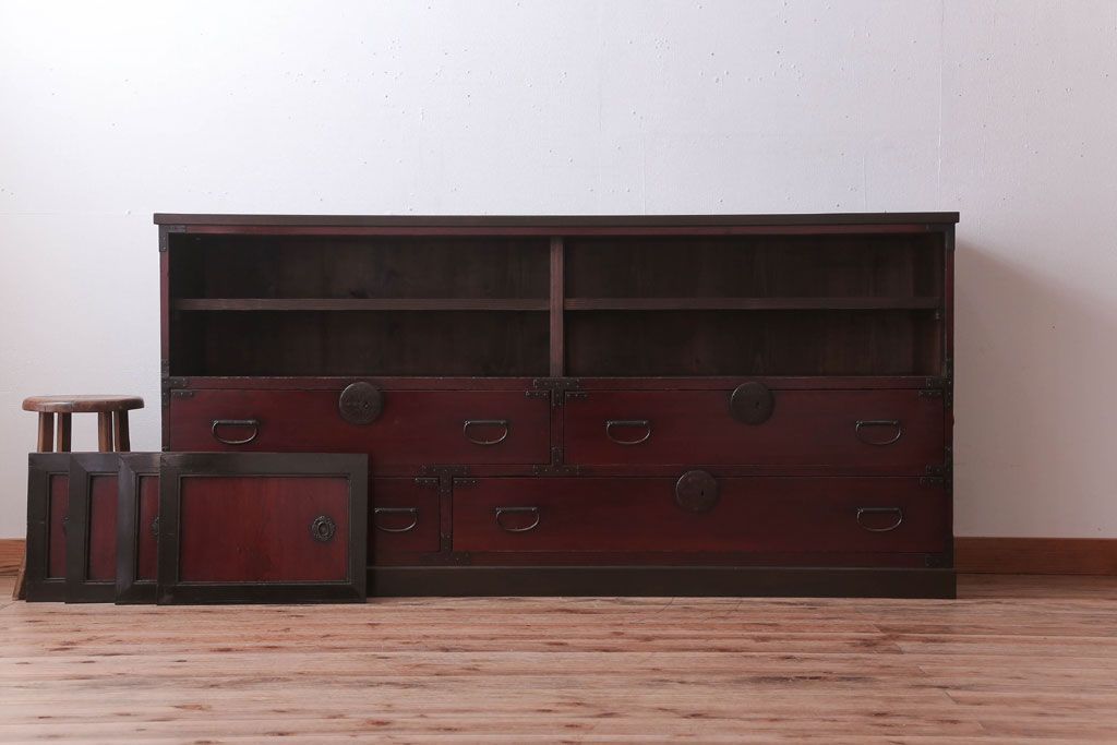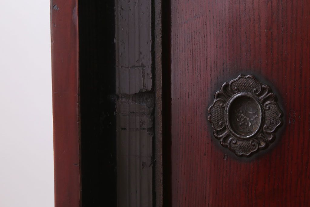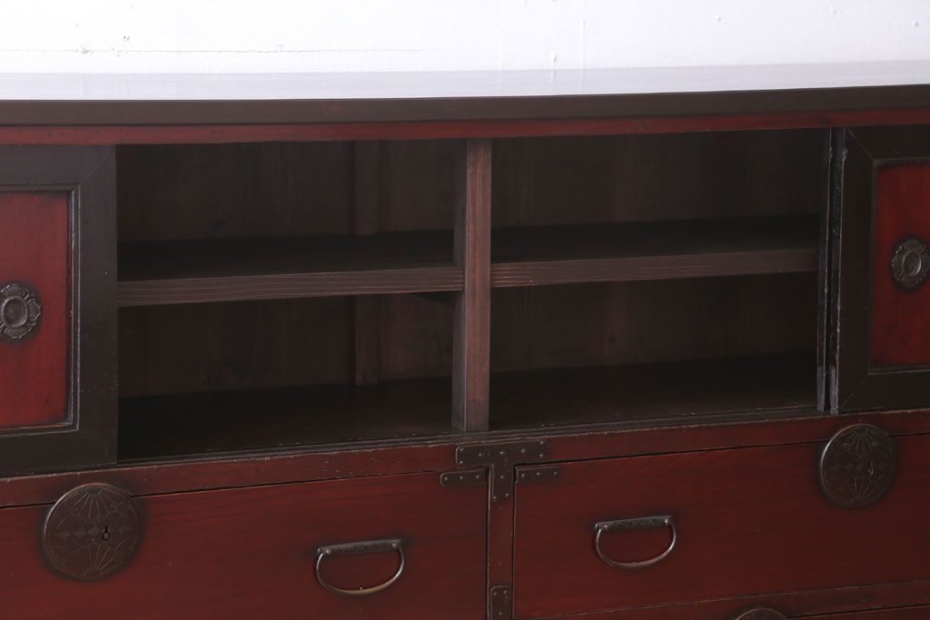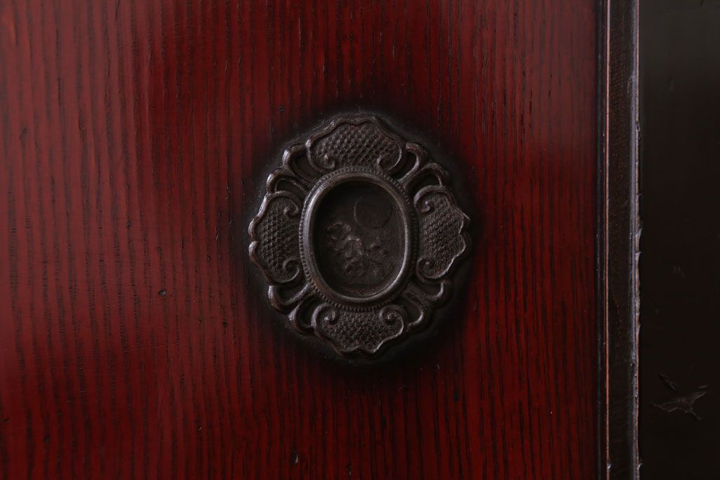 アンティーク家具 古民具・骨董 明治〜大正 前面欅材の漆塗り大川箪笥(水屋箪笥)