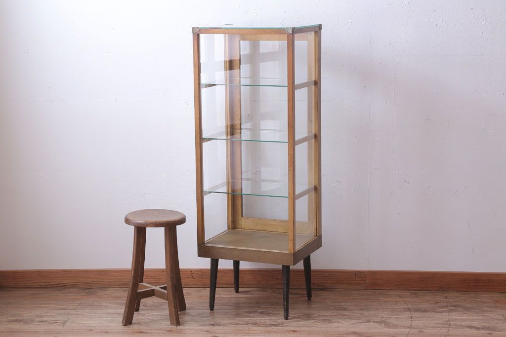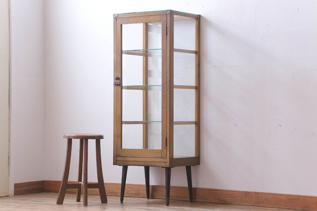 レトロ家具 昭和レトロ 脚付き!小ぶりな縦型ガラスケース(2)