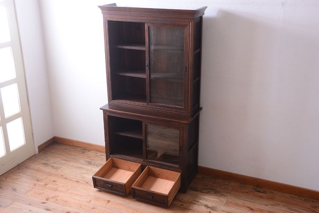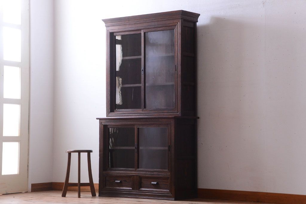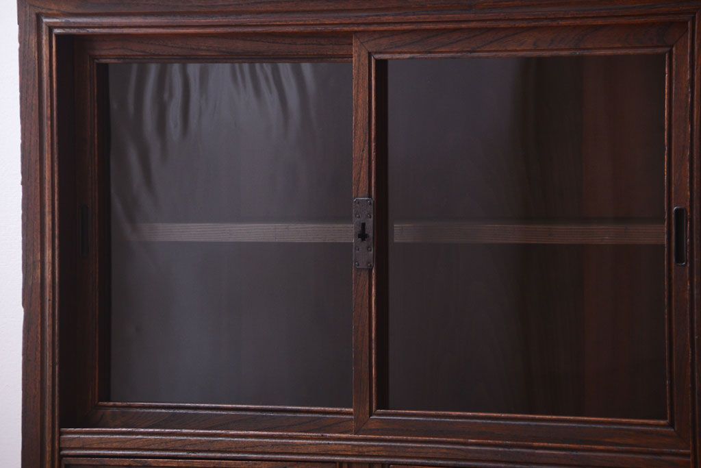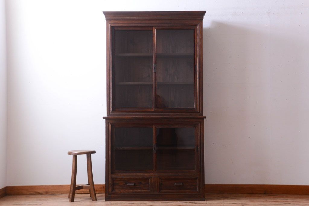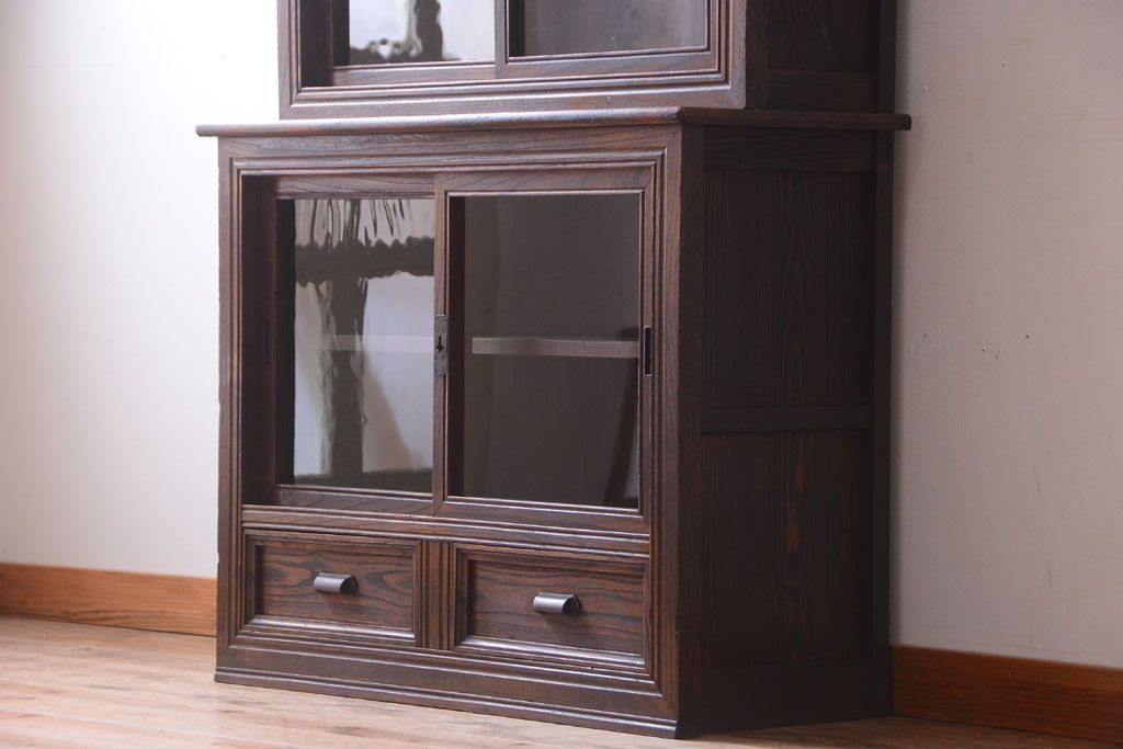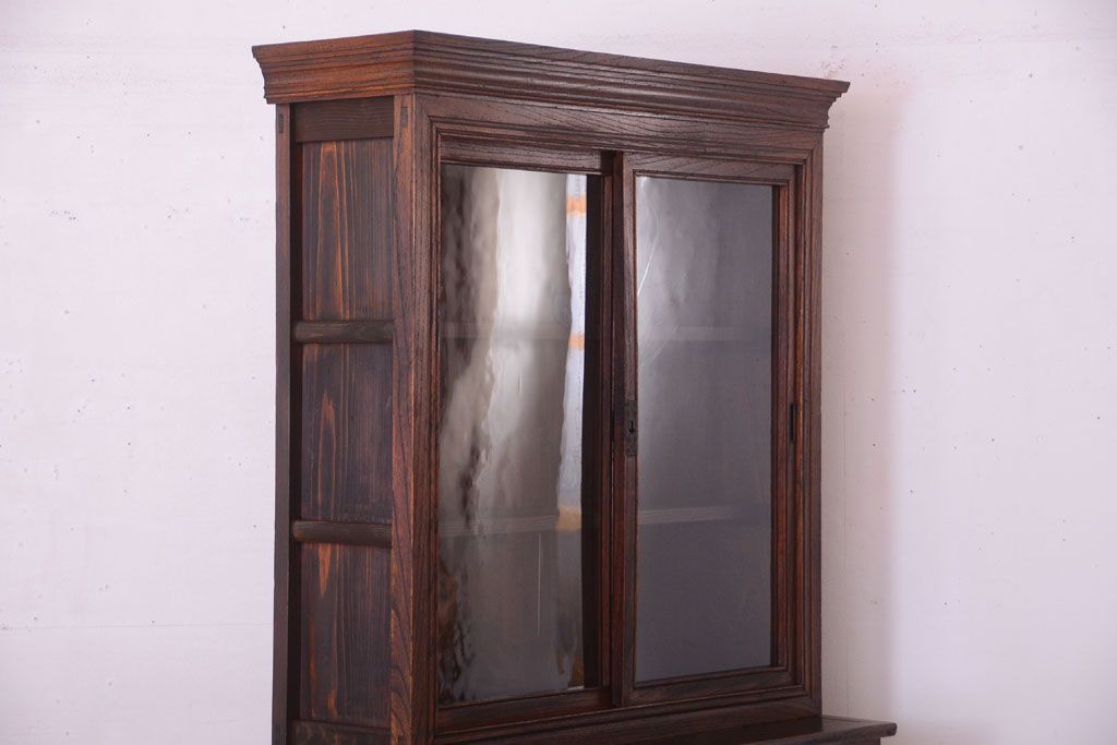アンティーク家具 和製アンティーク 前面欅材!上質な大正期の古い重ね食器棚(カップボード)