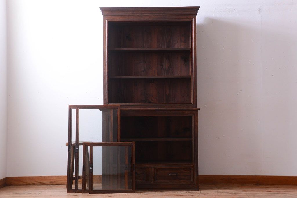 和製アンティーク 前面欅材!上質な大正期の古い重ね食器棚(カップボード)です。