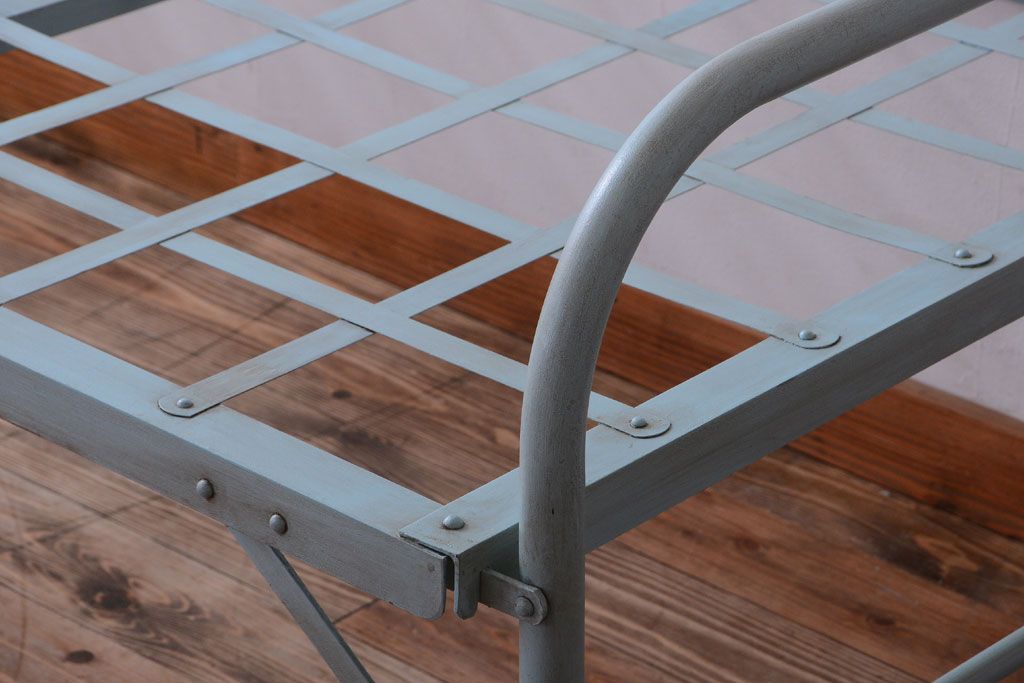 アンティークペイント 折り畳み式アイアンフレームベッド(2)