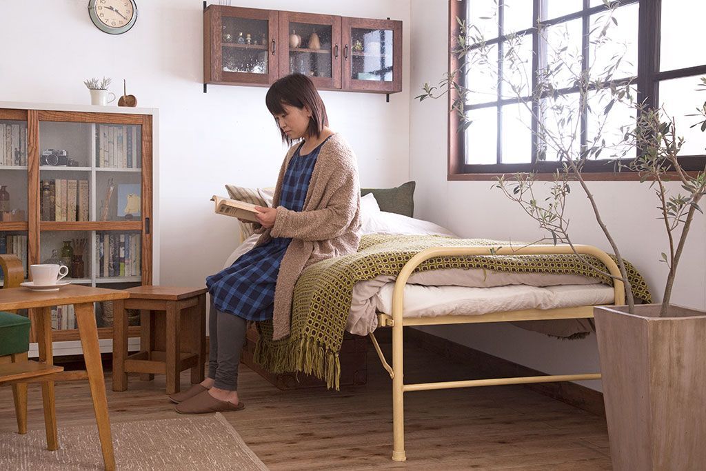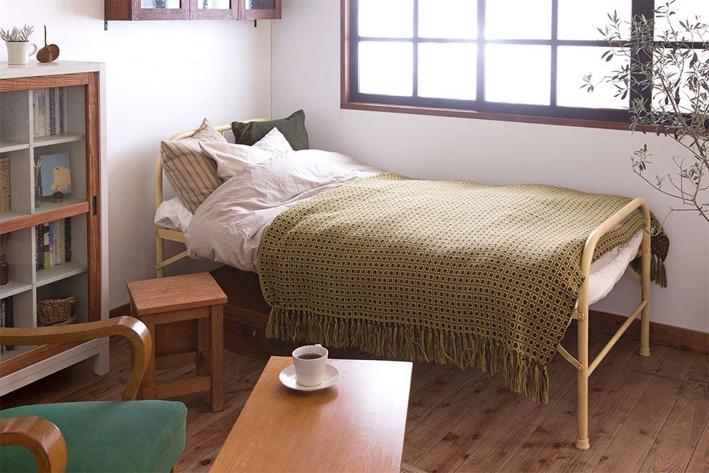 ベッド > アンティーク家具 アンティークペイント アイアンフレームの折り畳み式ベッド