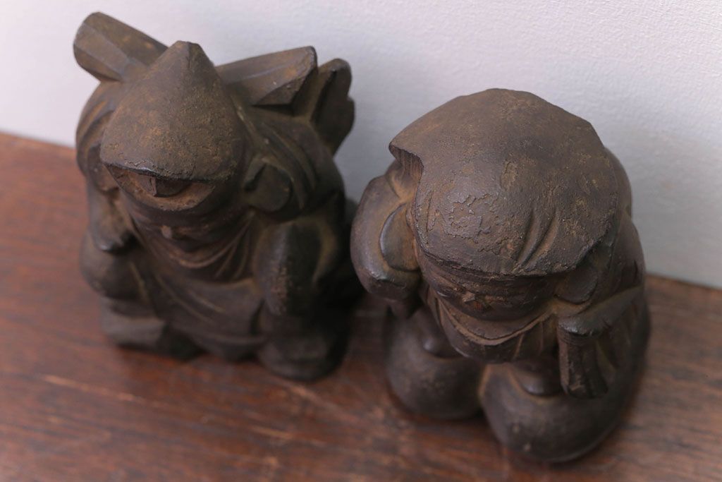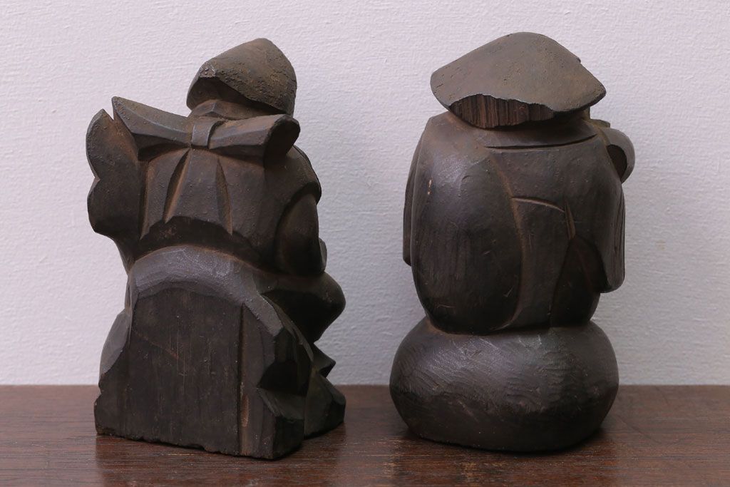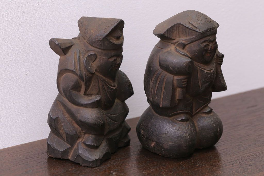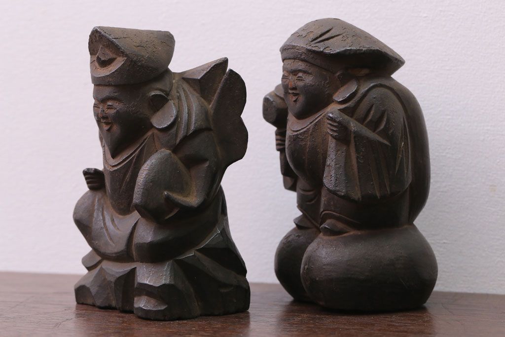 ラフジュ工房> 骨董・美術品 > アンティーク雑貨 古民具・骨董 明治〜大正 木彫りの大黒様と恵比寿様の置き物(2)