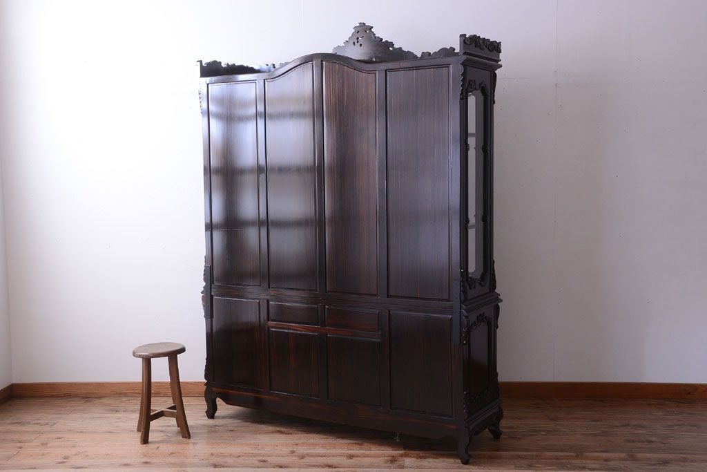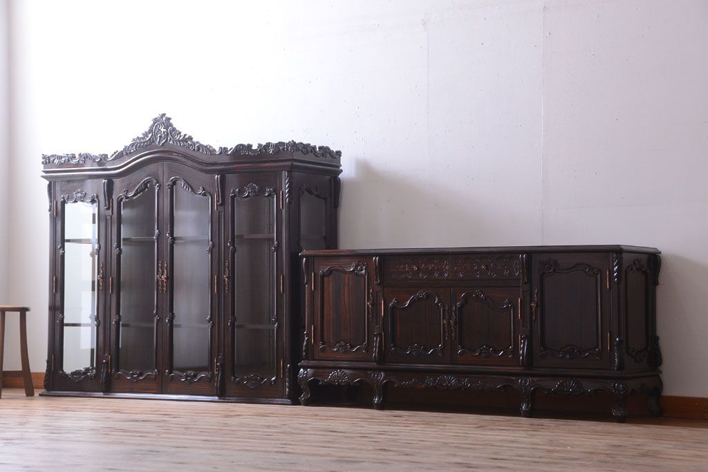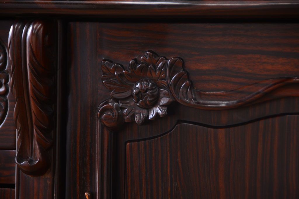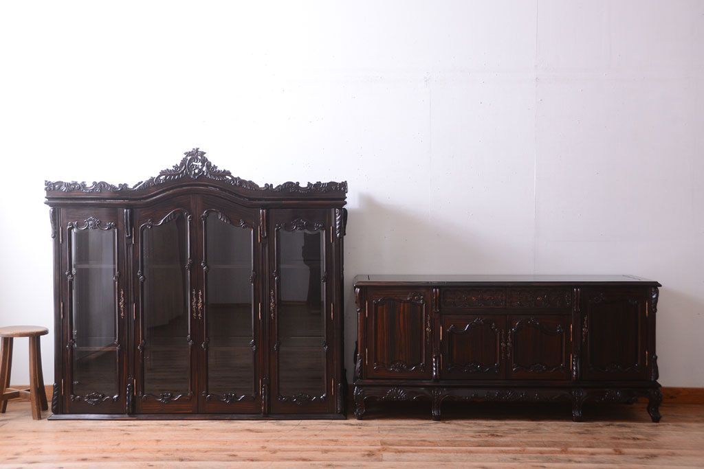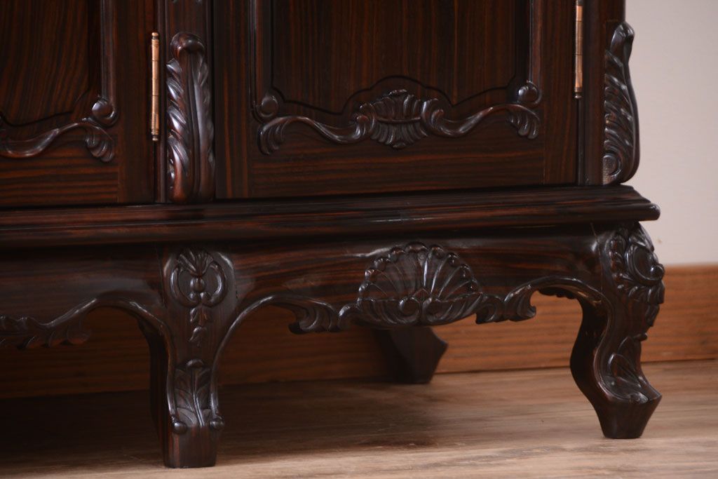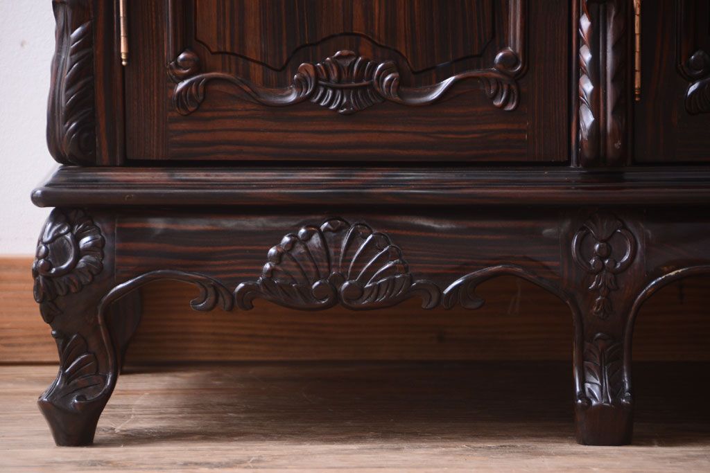 中古 黒檀製!優雅な高級キャビネット(食器棚・収納棚)(定価250万円)