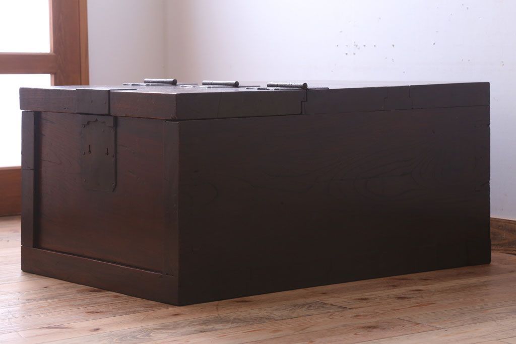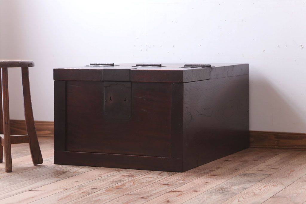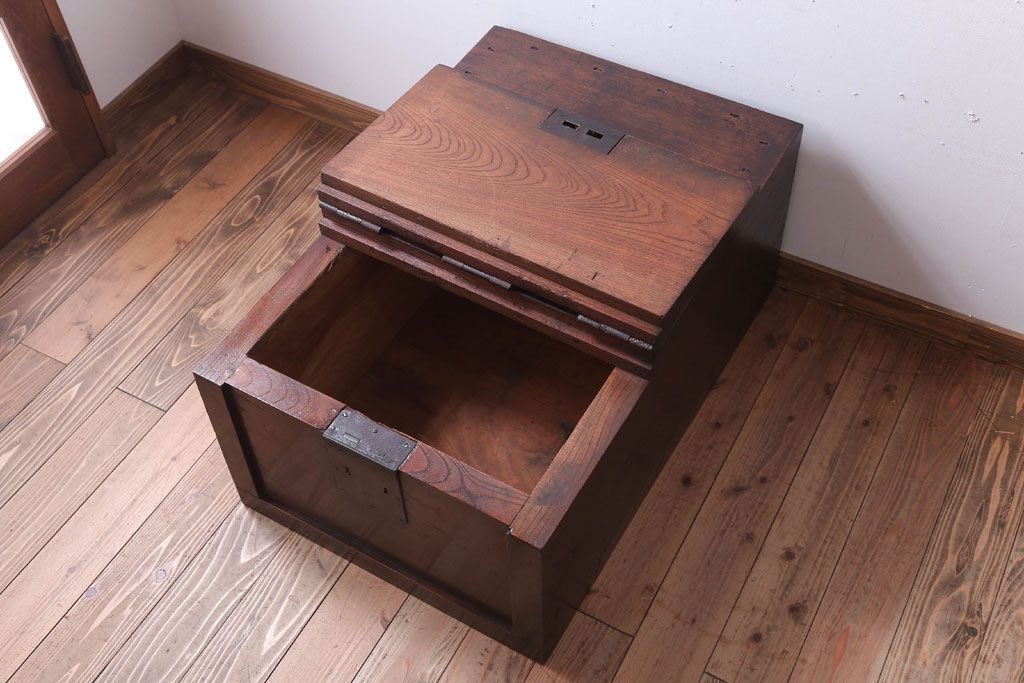 アンティーク雑貨 古民具・骨董 超希少品 特大サイズ!総欅製の特注銭箱(金庫)