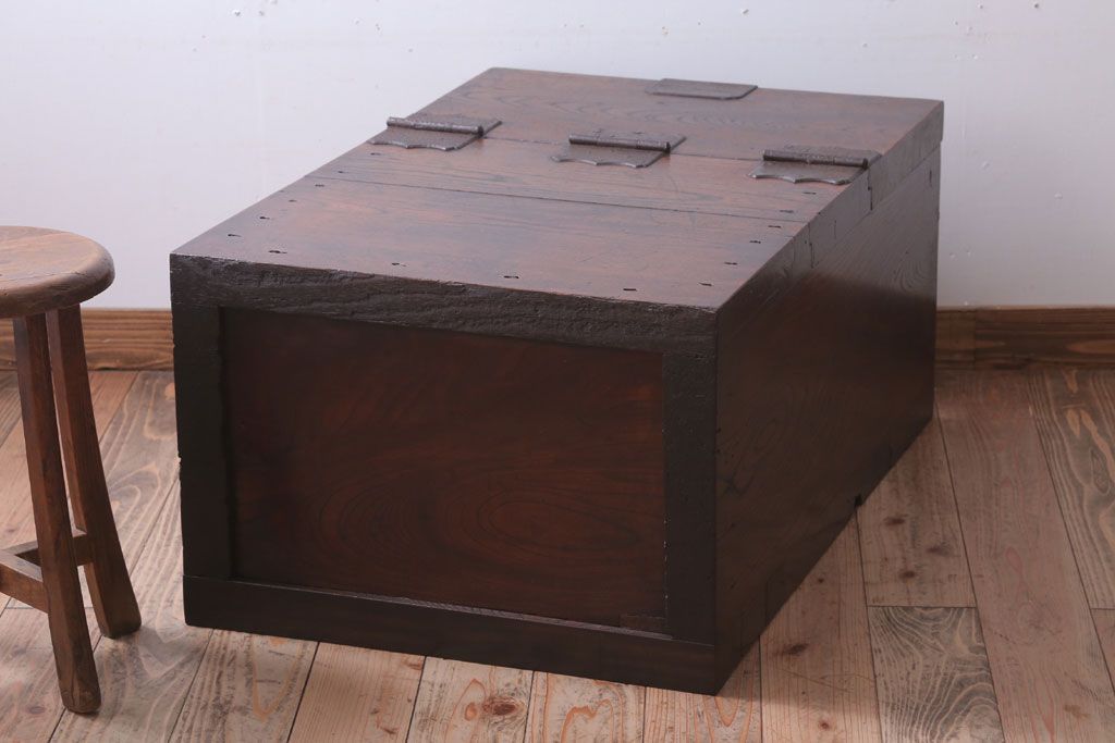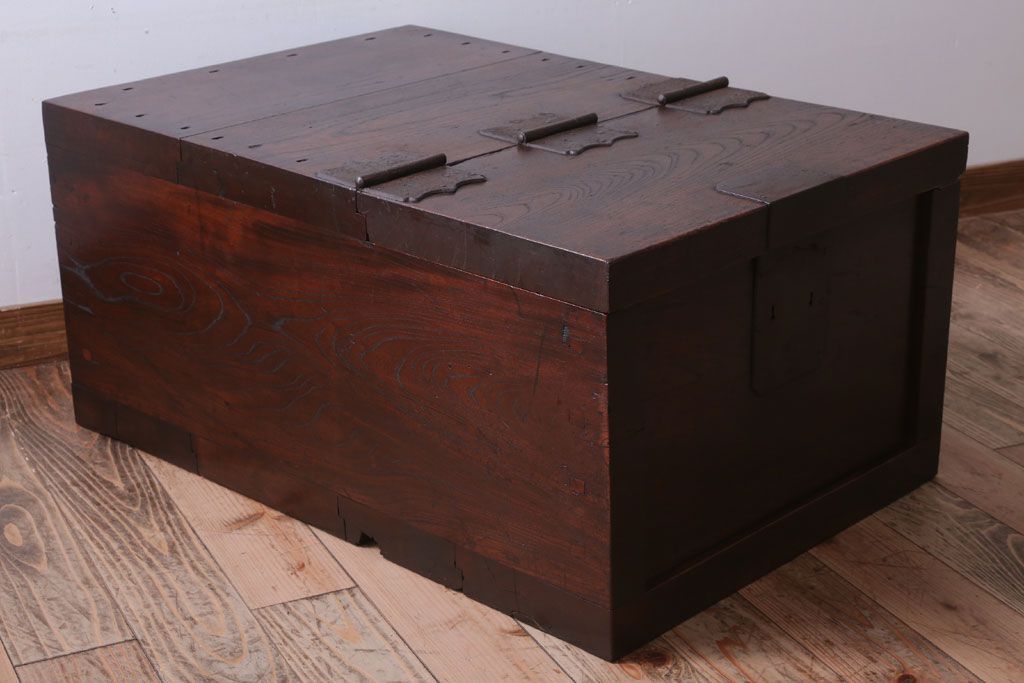 古民具・骨董 超希少品 特大サイズ!総欅製の特注銭箱(金庫)です。