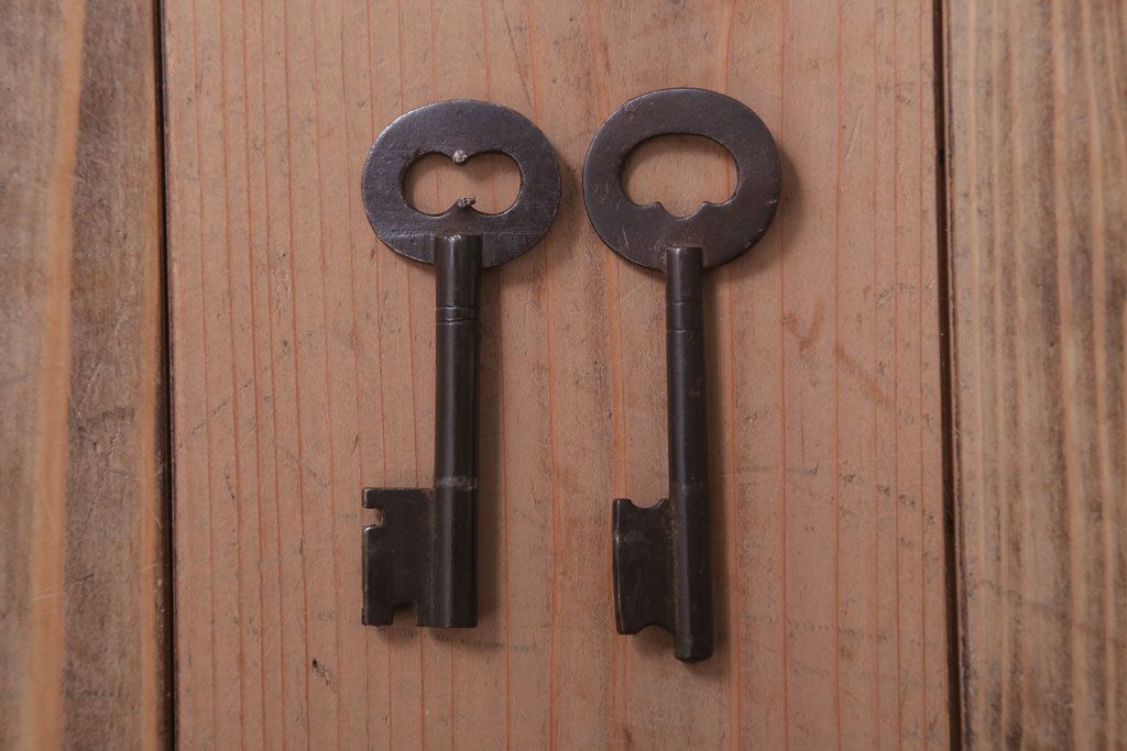 鍵は付属します。画像にありますように、袋に入れお付けします。スムーズに動くように調整していますが、あくまでも古いものや中古品ですので、長期の使用保証は出来かねます。ご購入後不具合が発生した場合は、当店でサポートさせていただきますので、お気軽にご相談くださいませ。